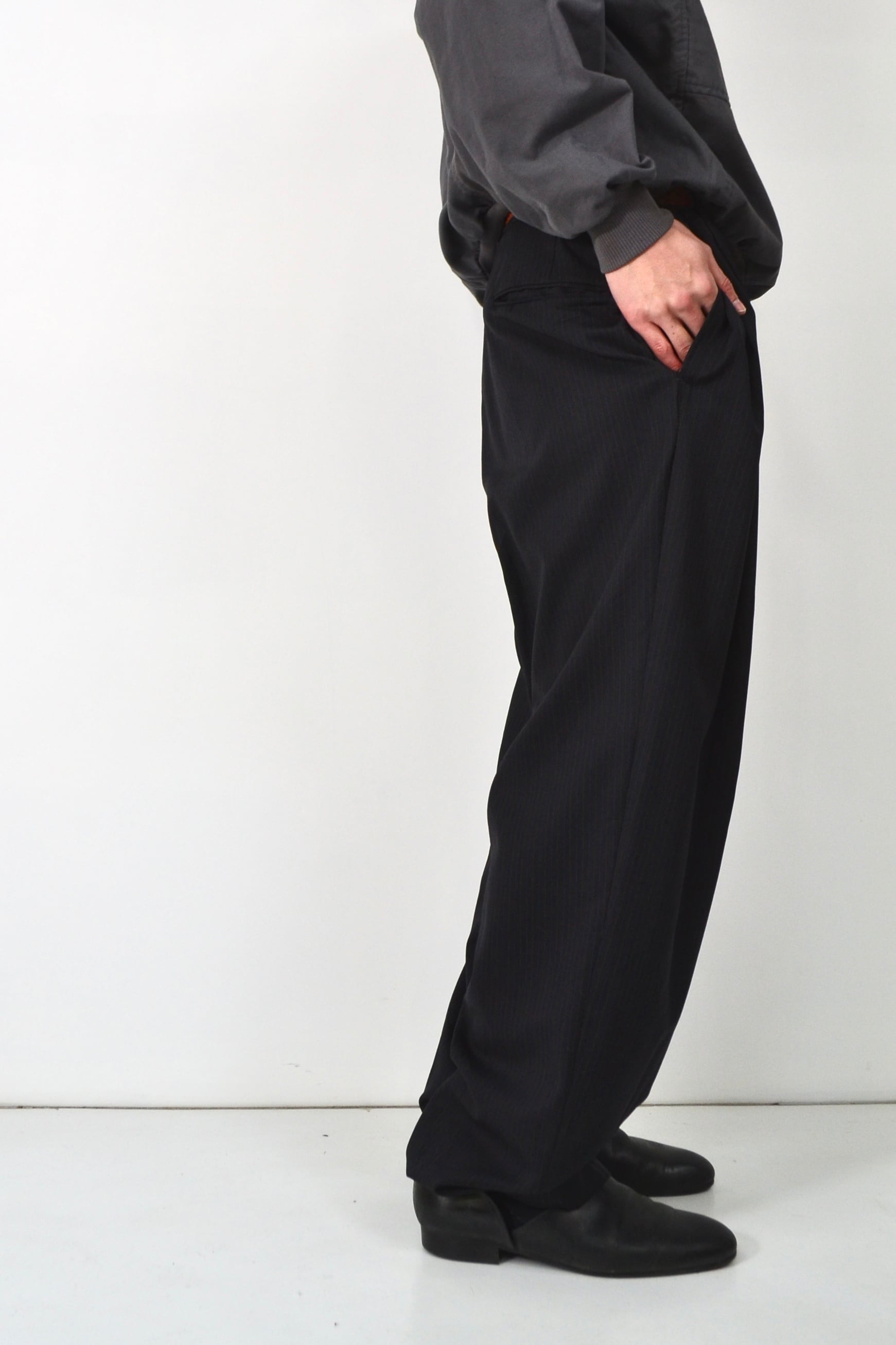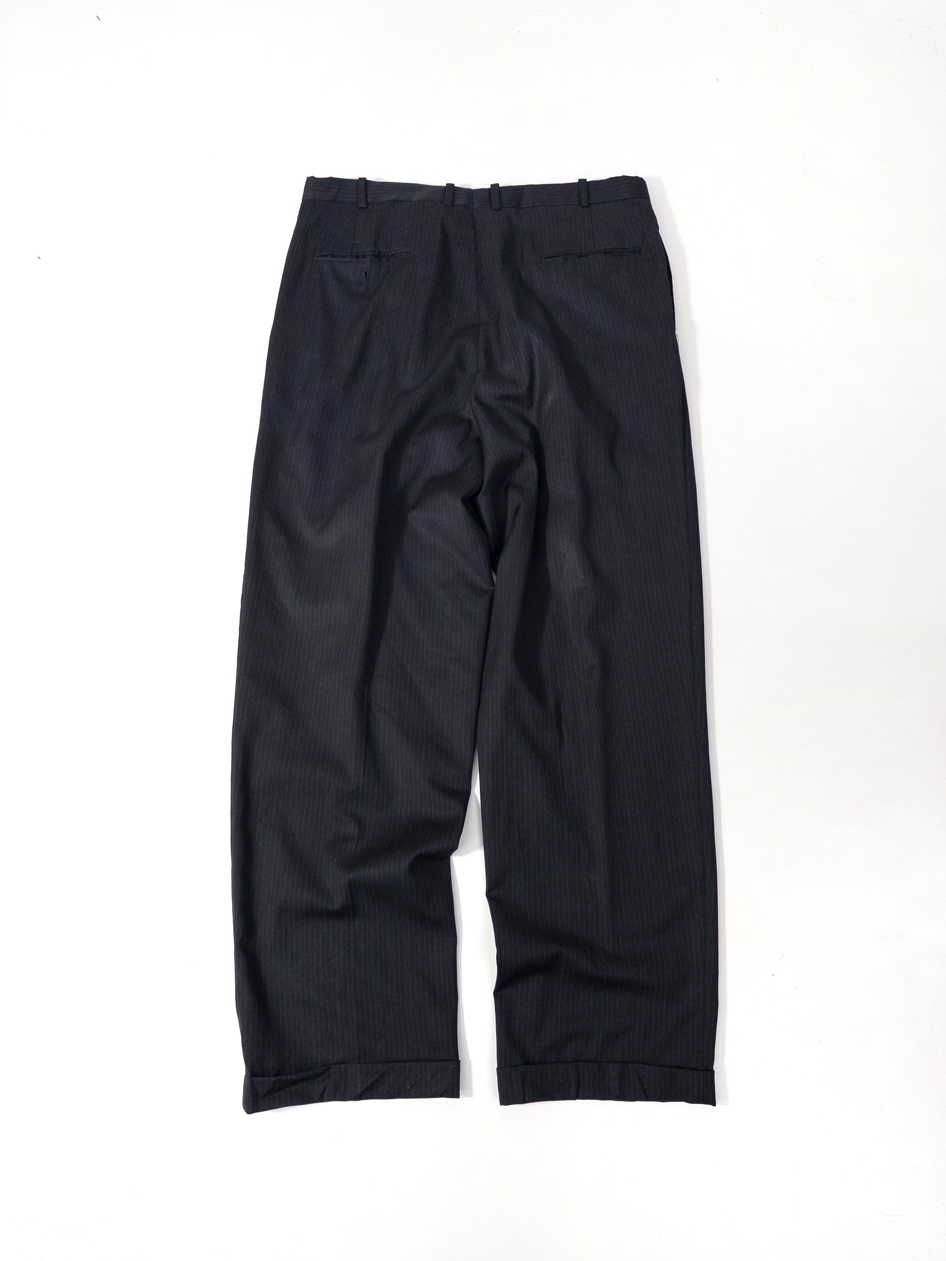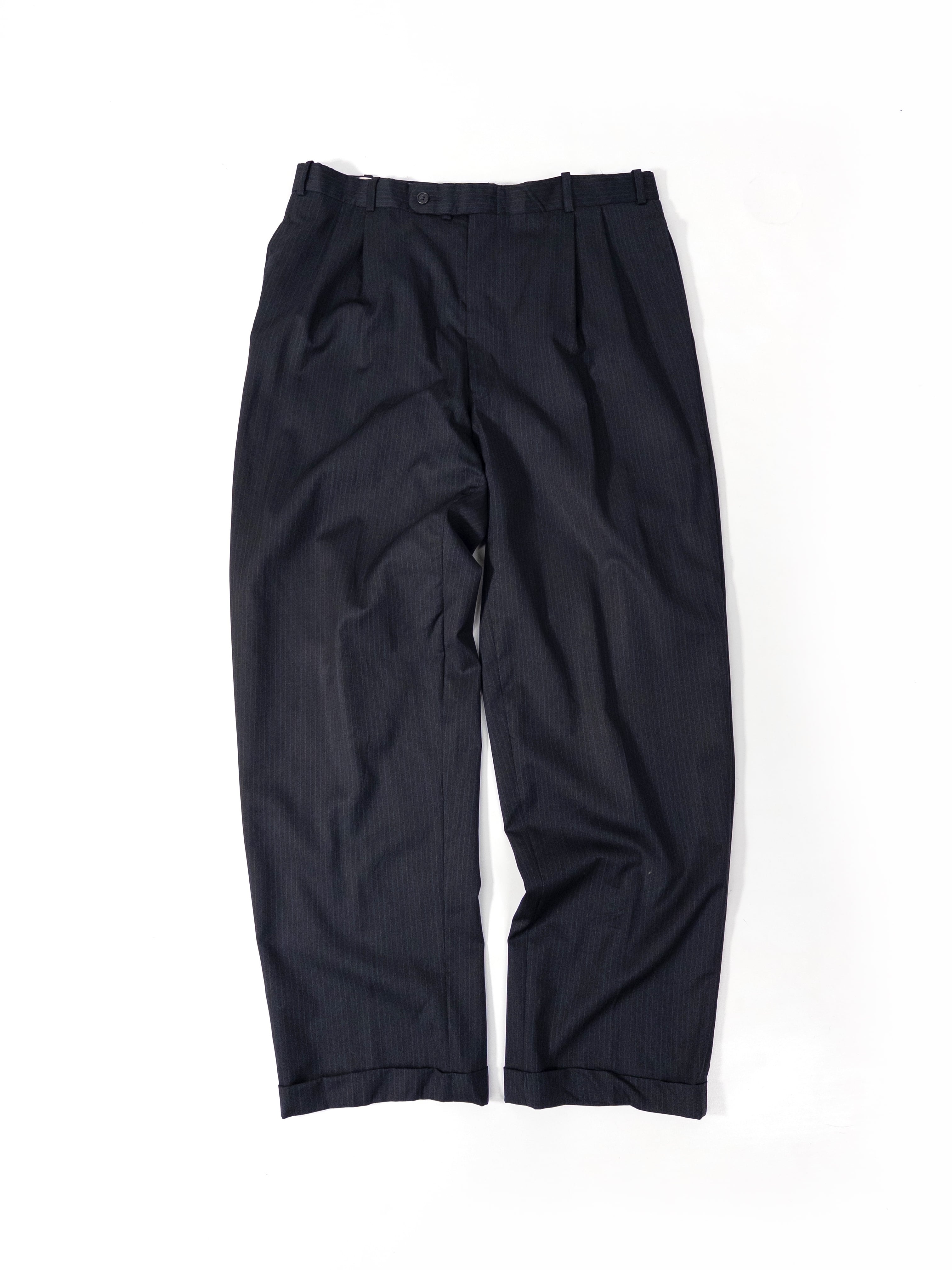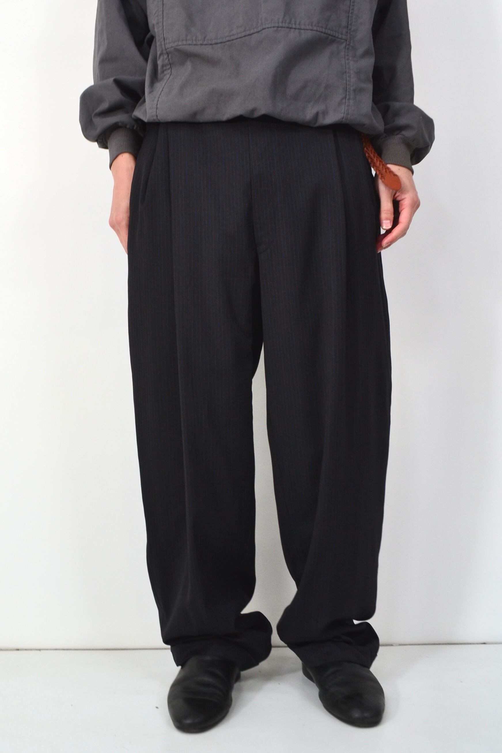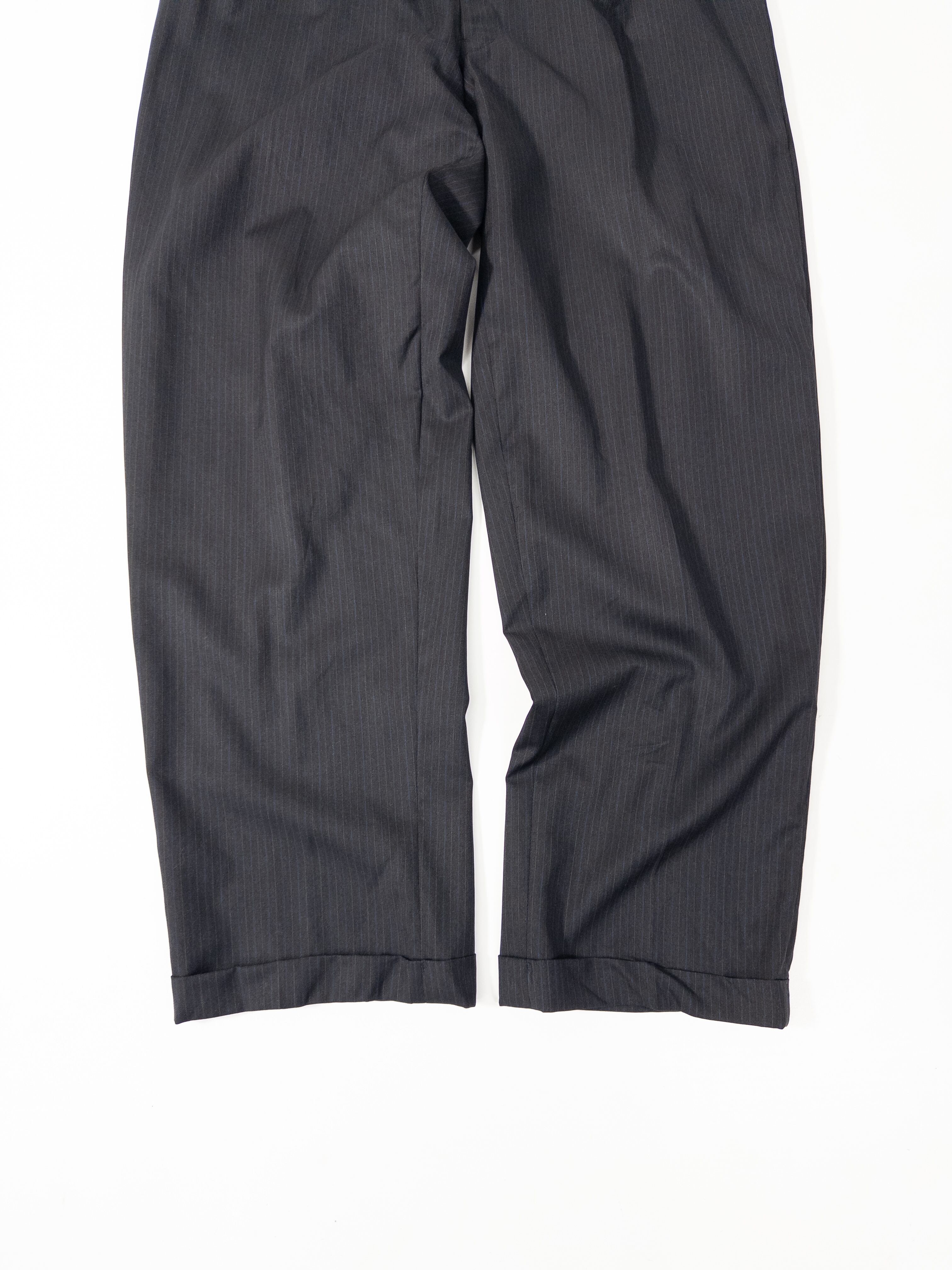 2タック入りで腰に余白を持たせつつ、裾までストンと落ちる素直なワイドストレート。