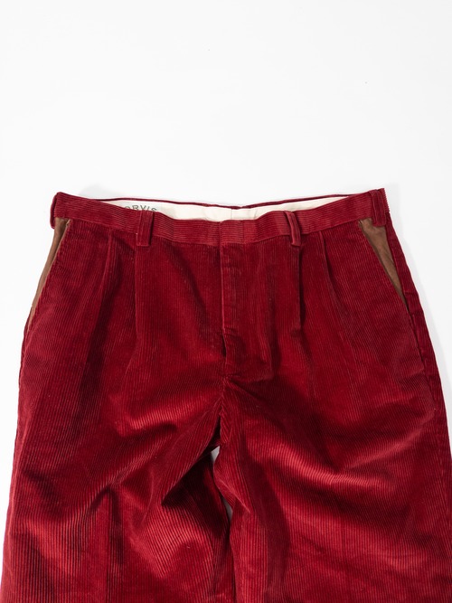 赤系だけど光を吸うコーデュロイの畝で、派手さは出ない。