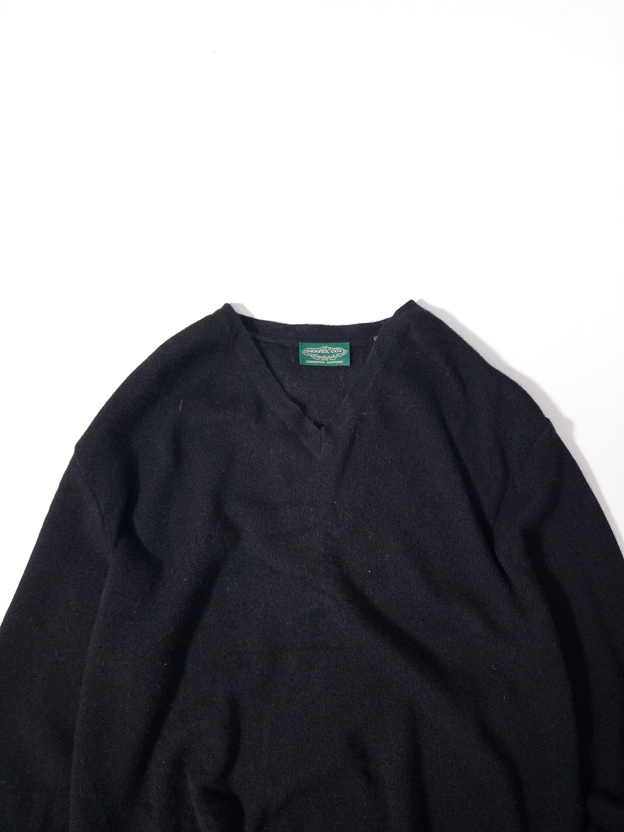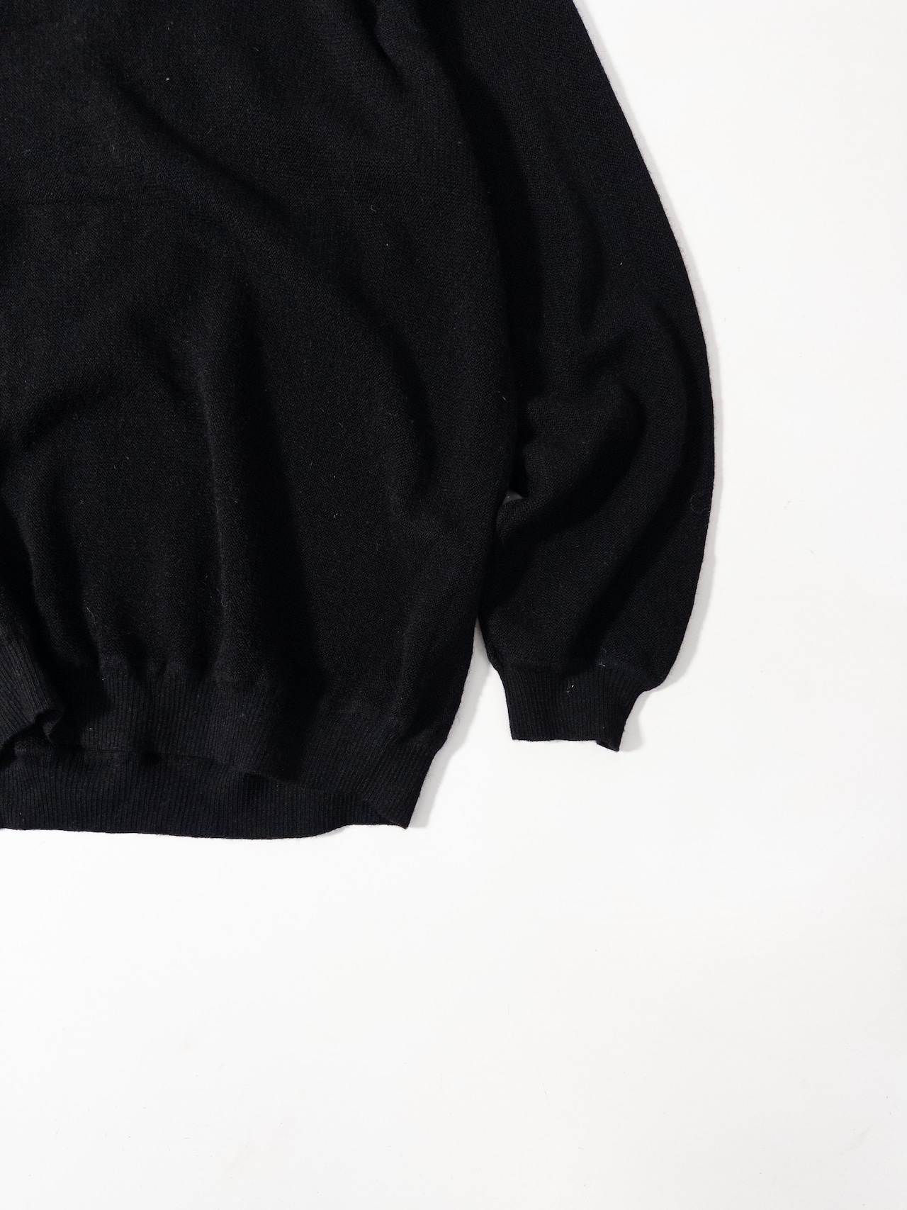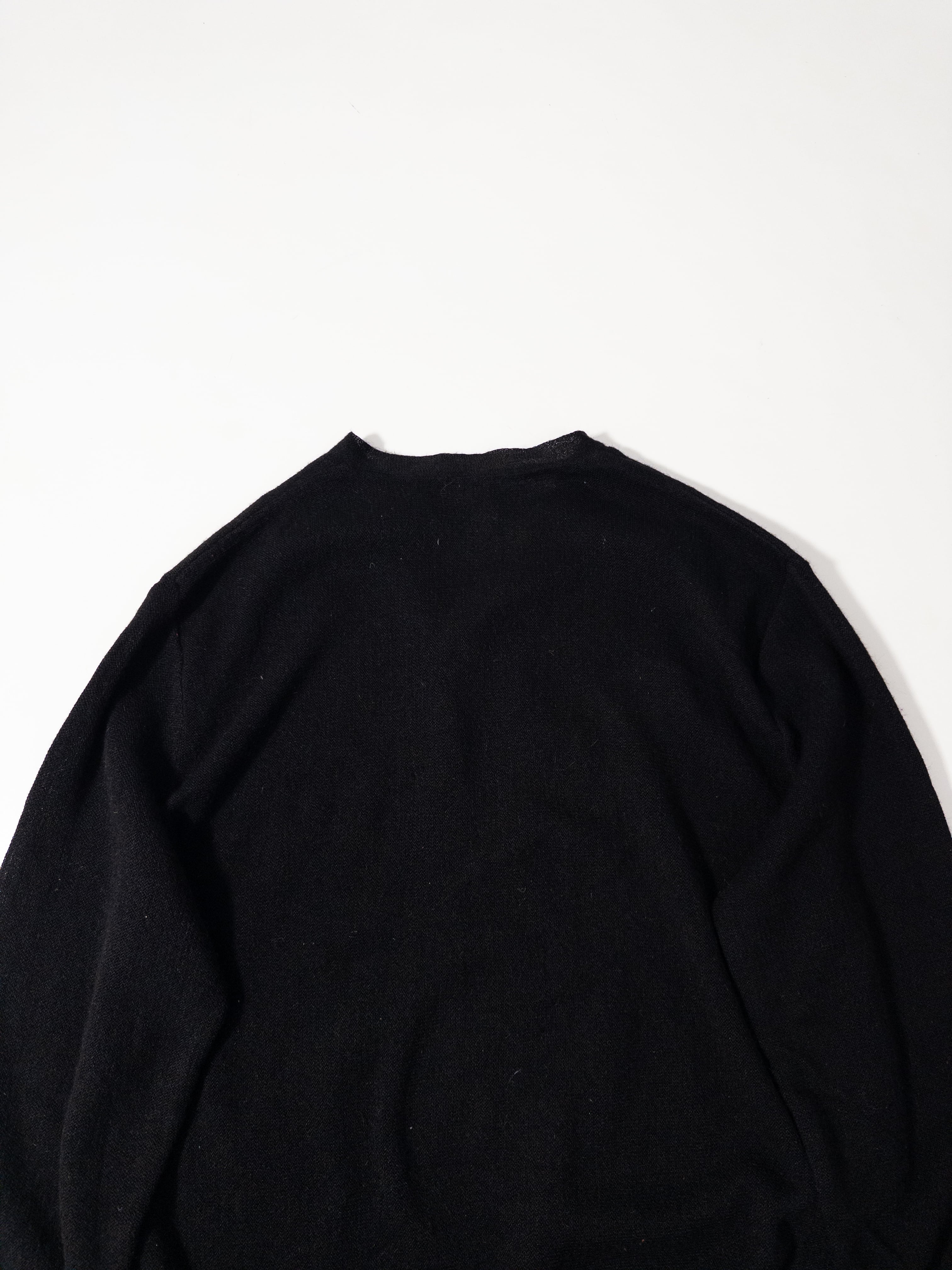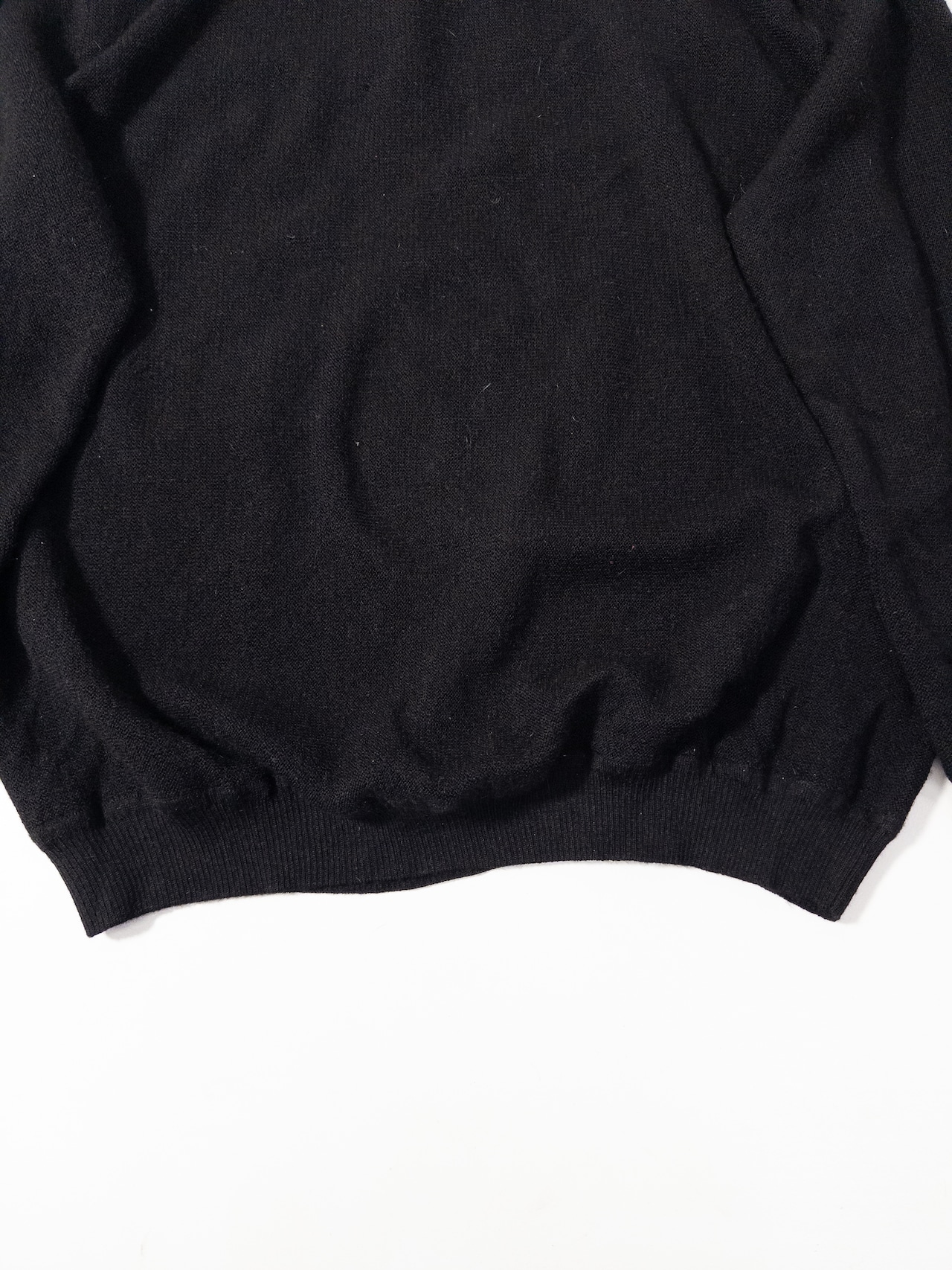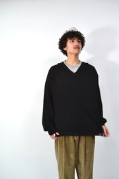 一見するとシンプルな黒のVネックニットだけど、baby alpacaを使っているところがこの一枚の核。