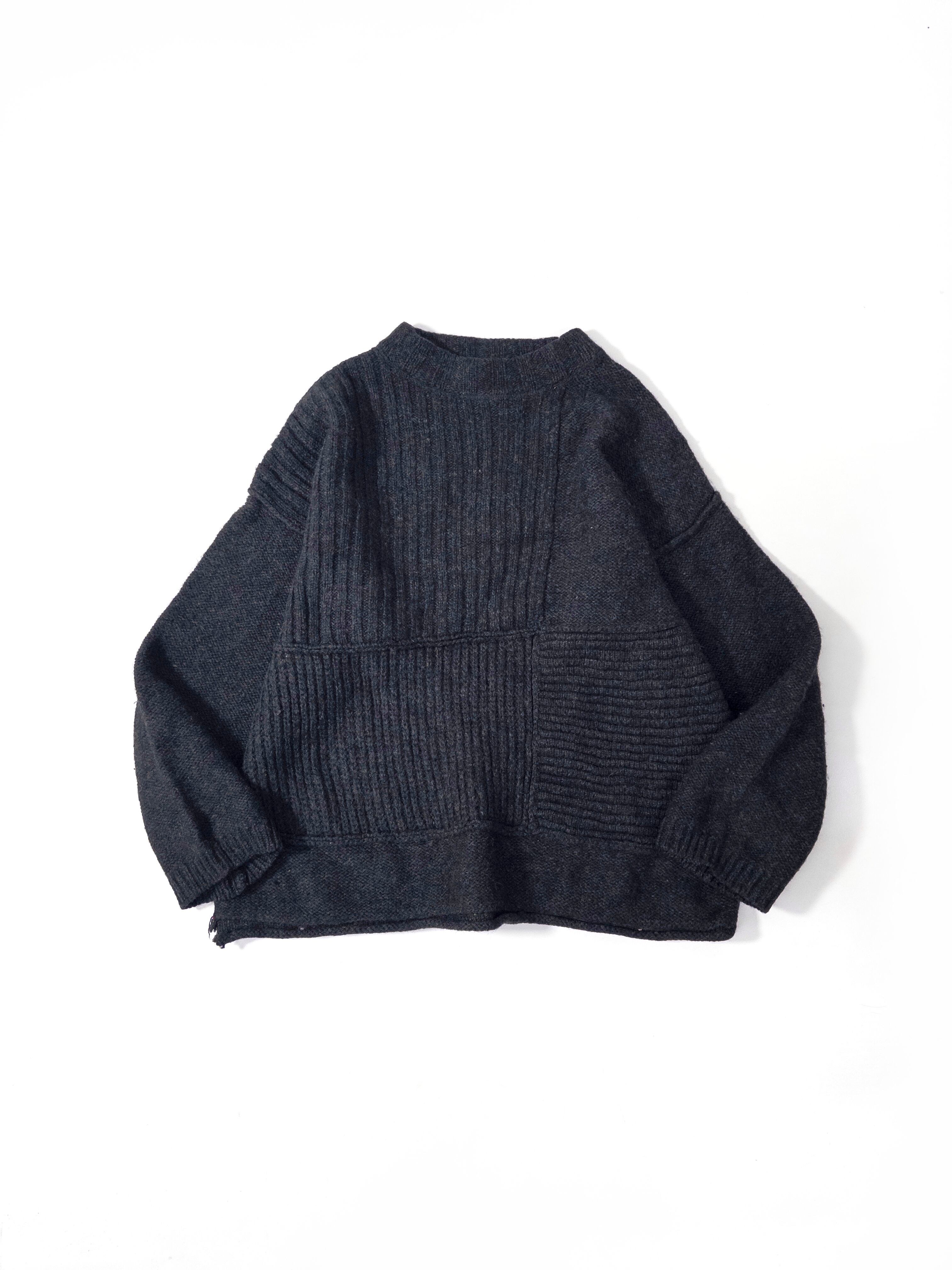 同系色で切り替えられたパネルデザインが印象的なウールニット。
