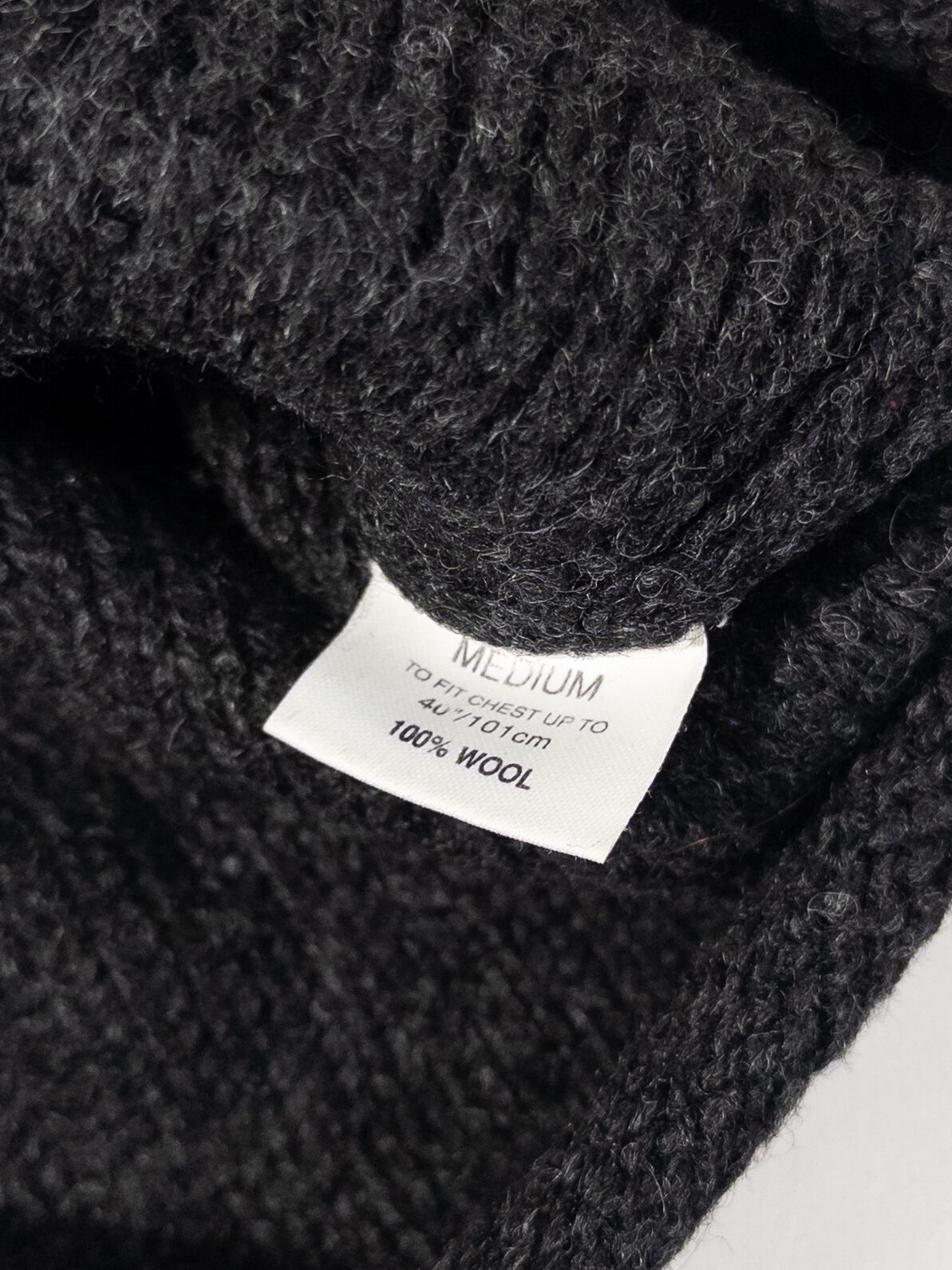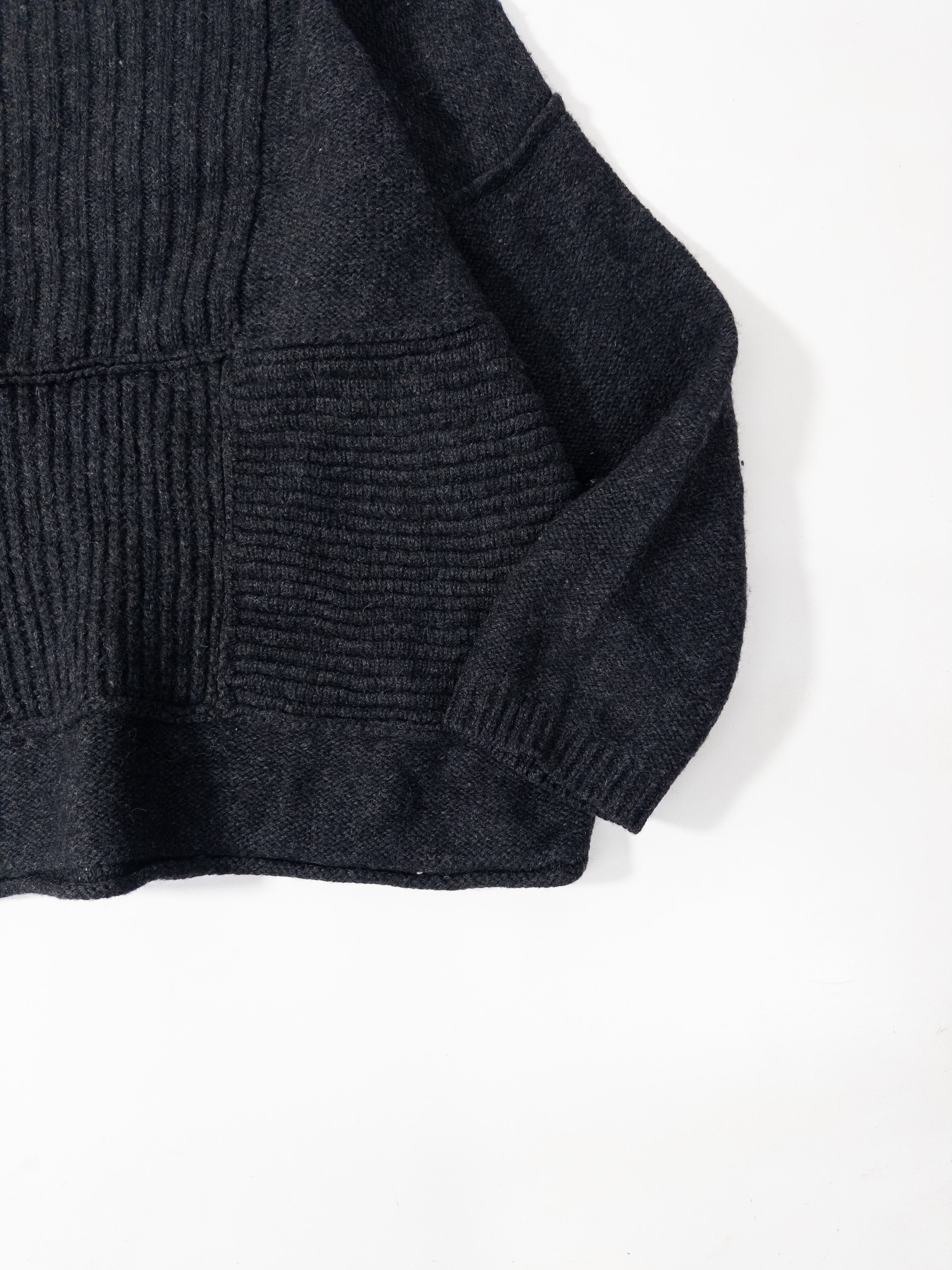 表情のある編み地で、黒ベースでも重くなりすぎず、光の当たり方でほんのり陰影が出るタイプ。