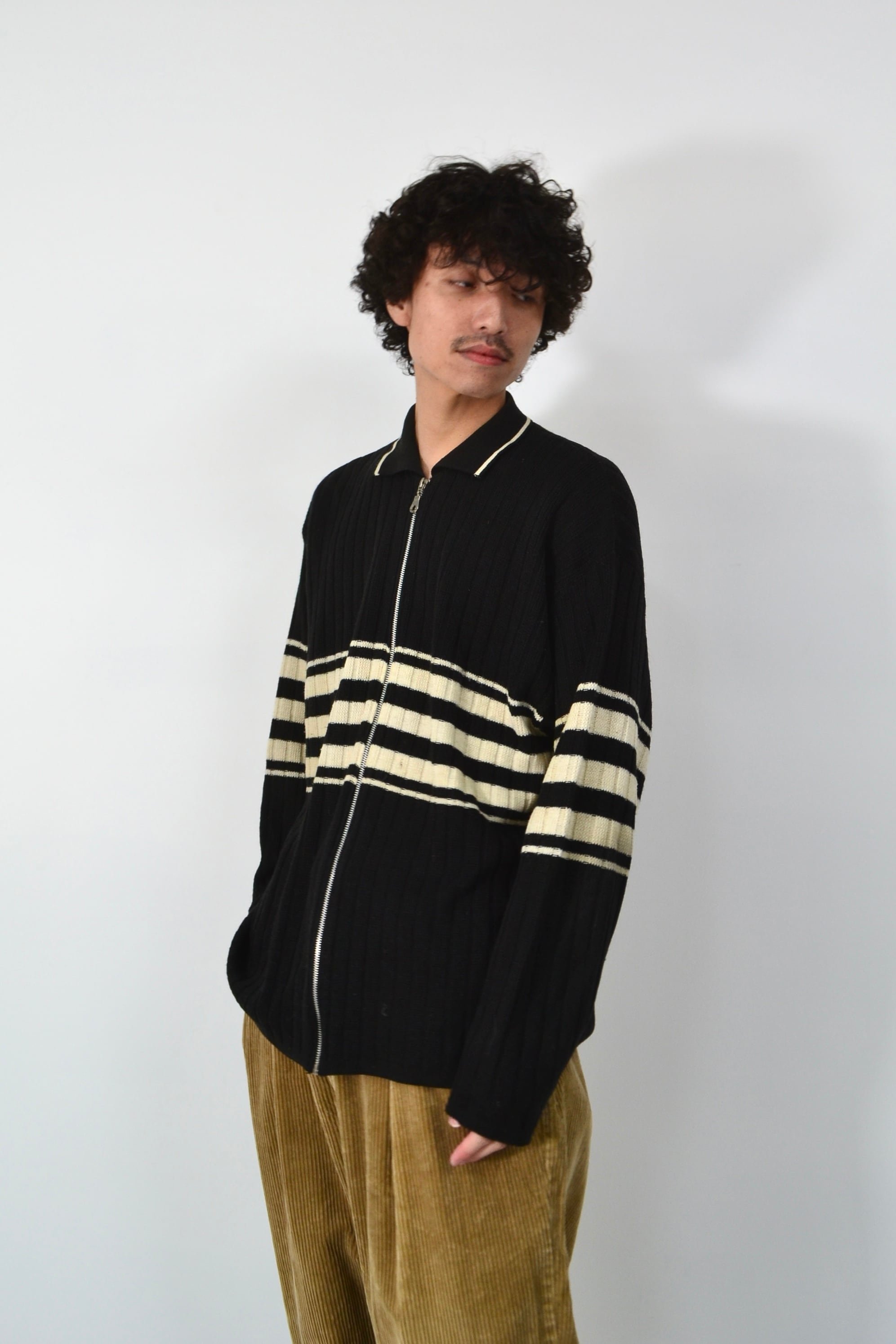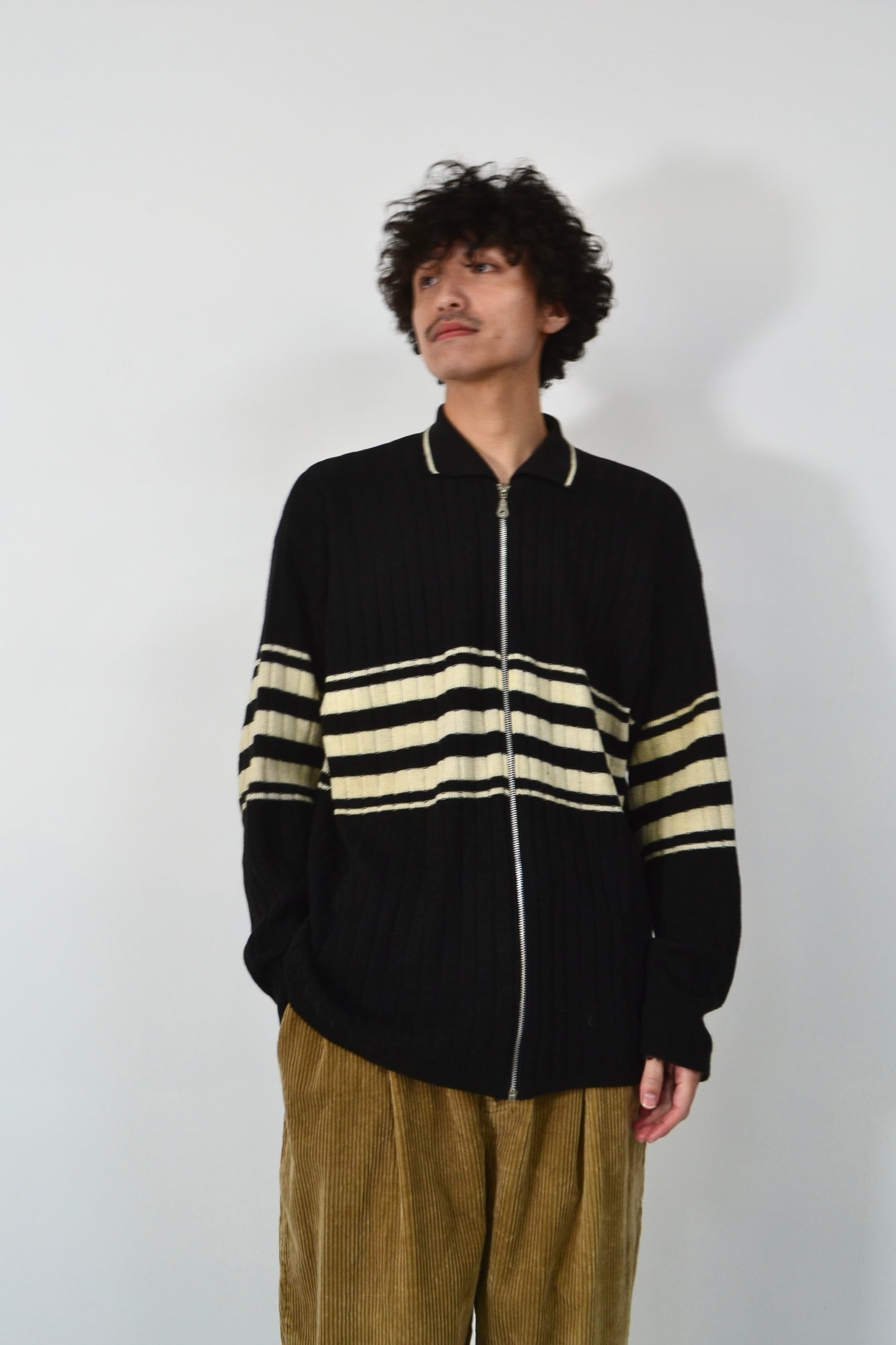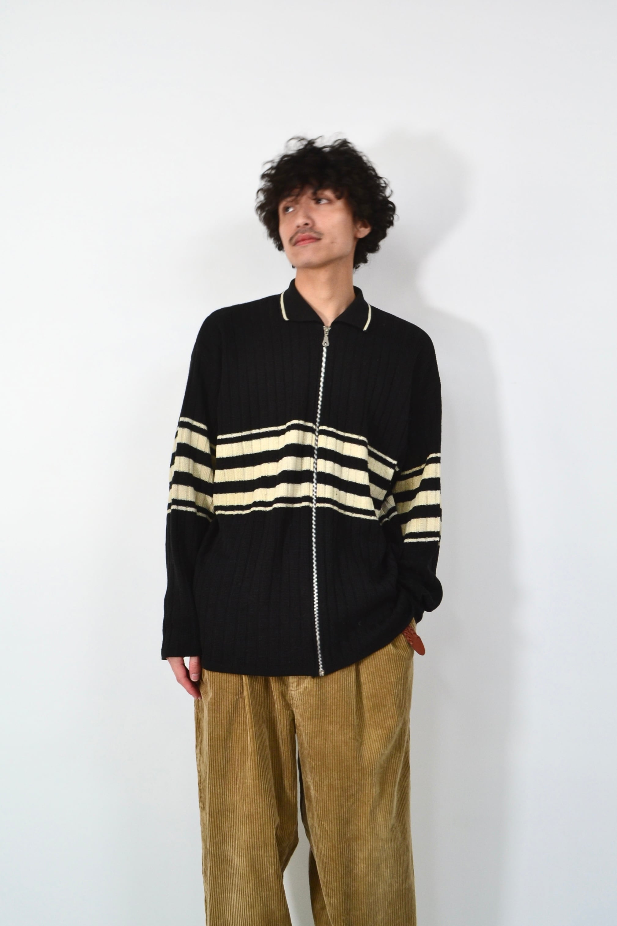 90s Line design knit zip jacket