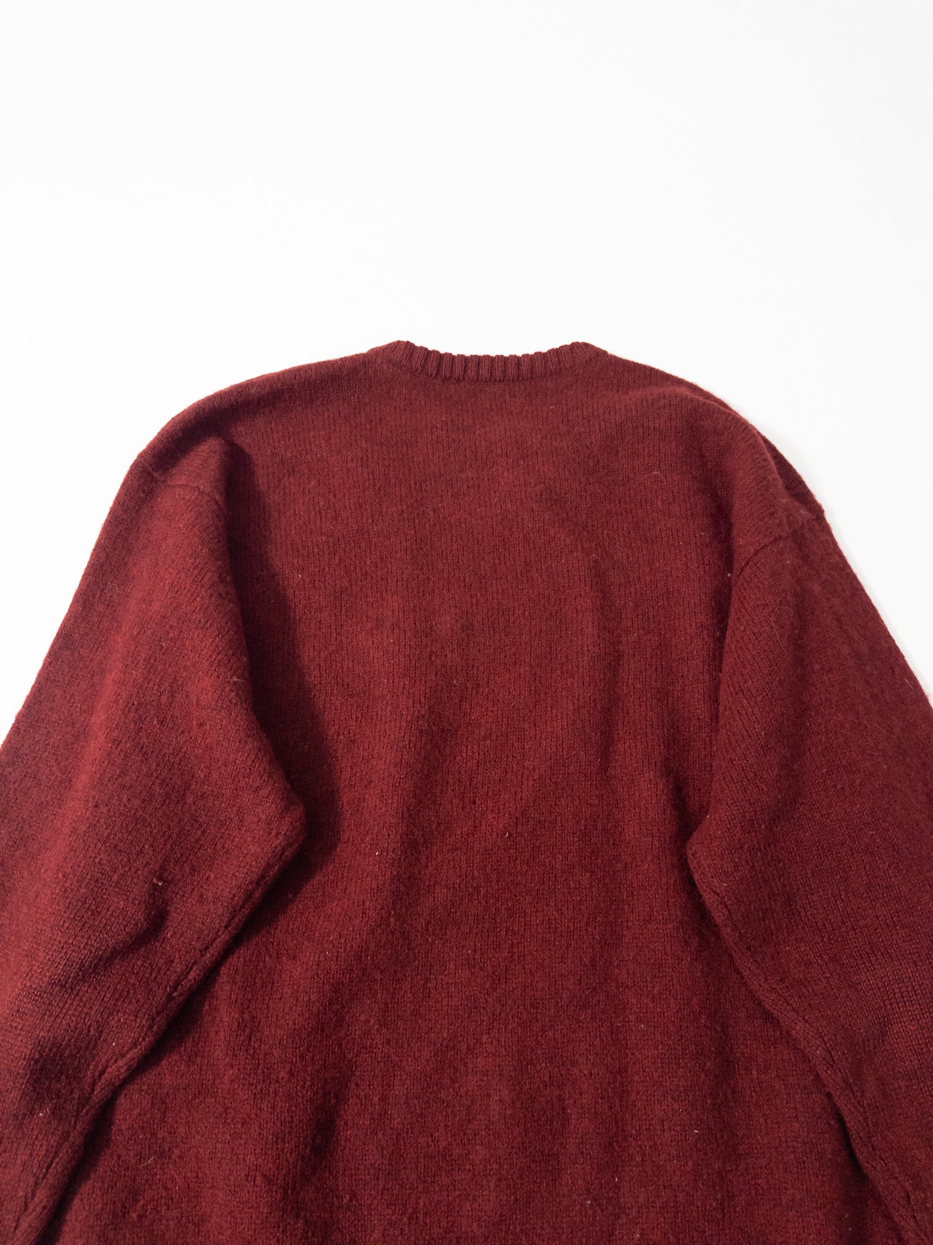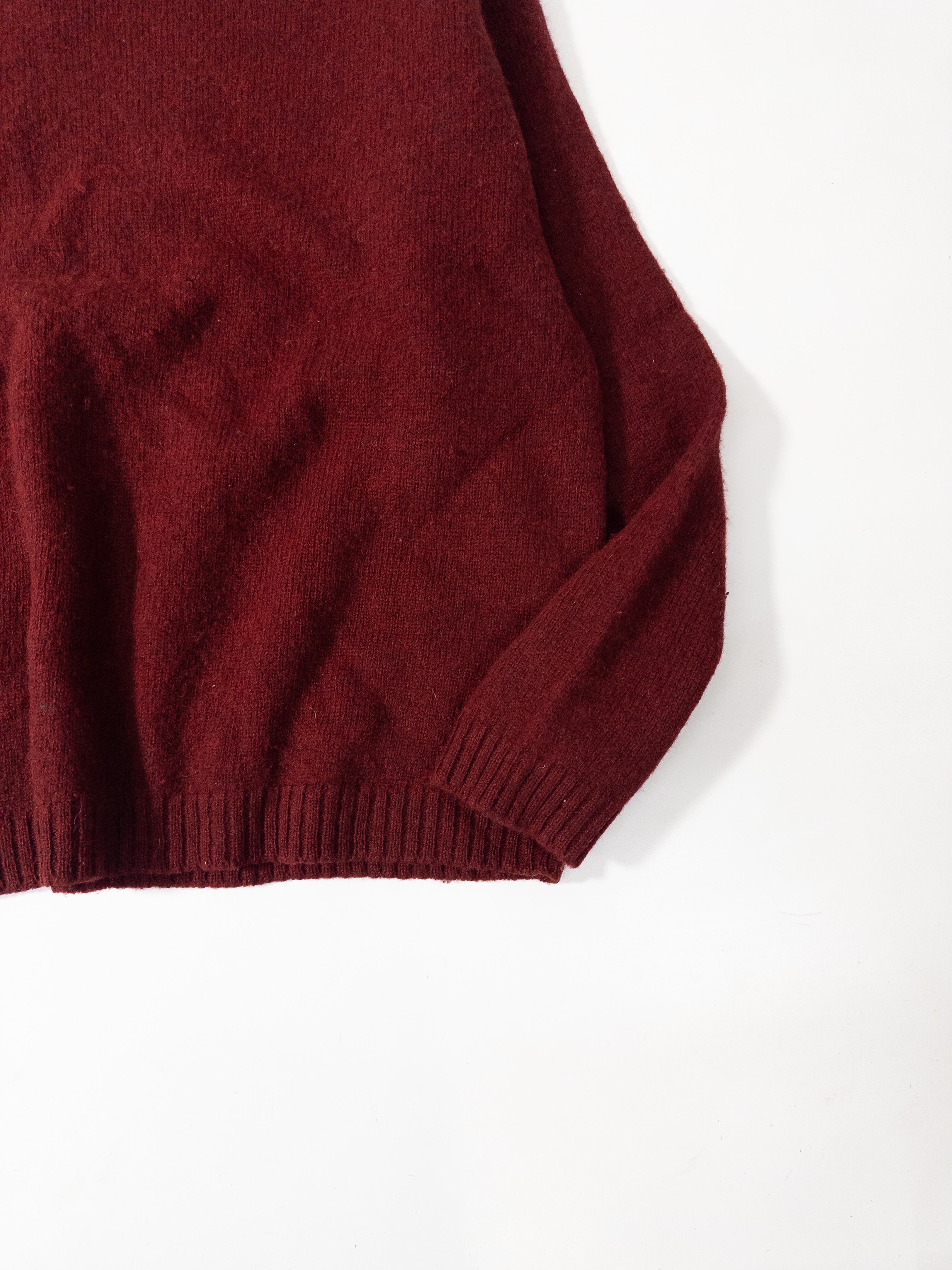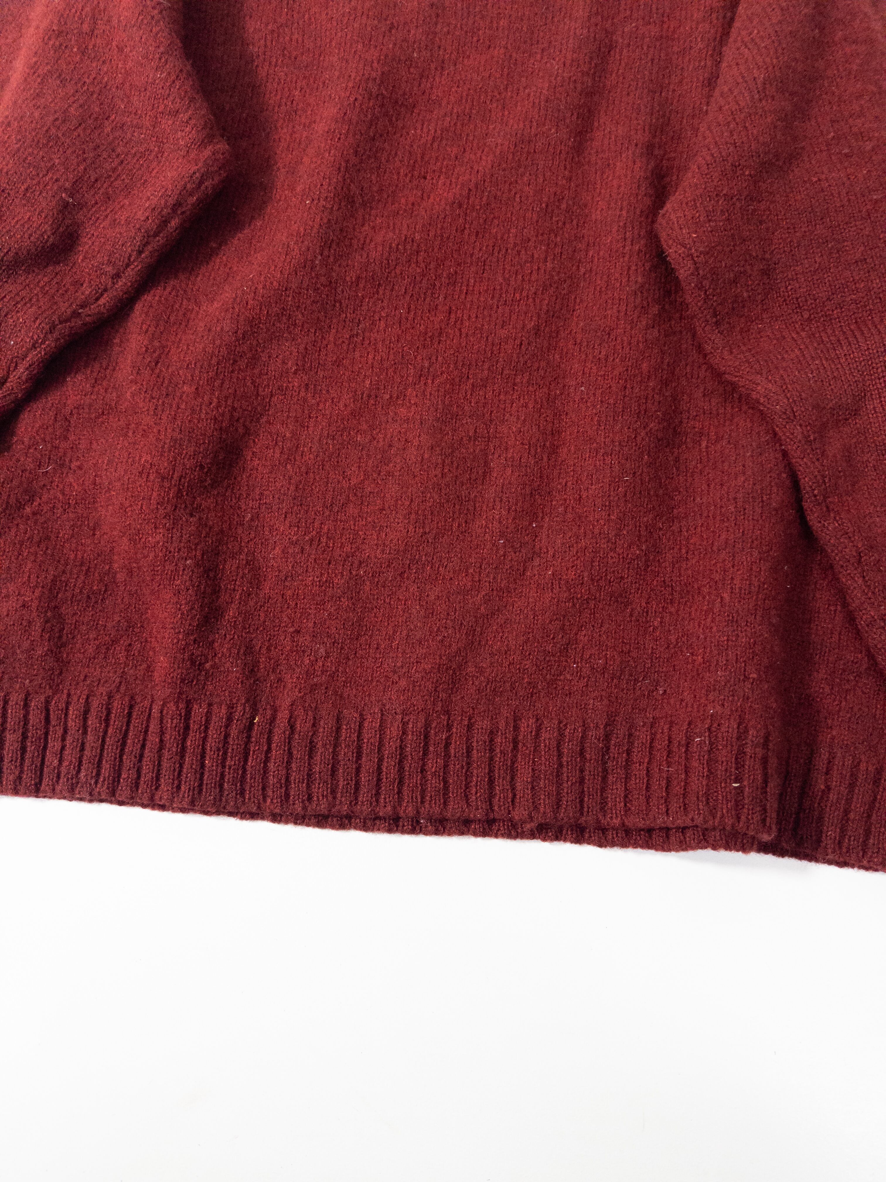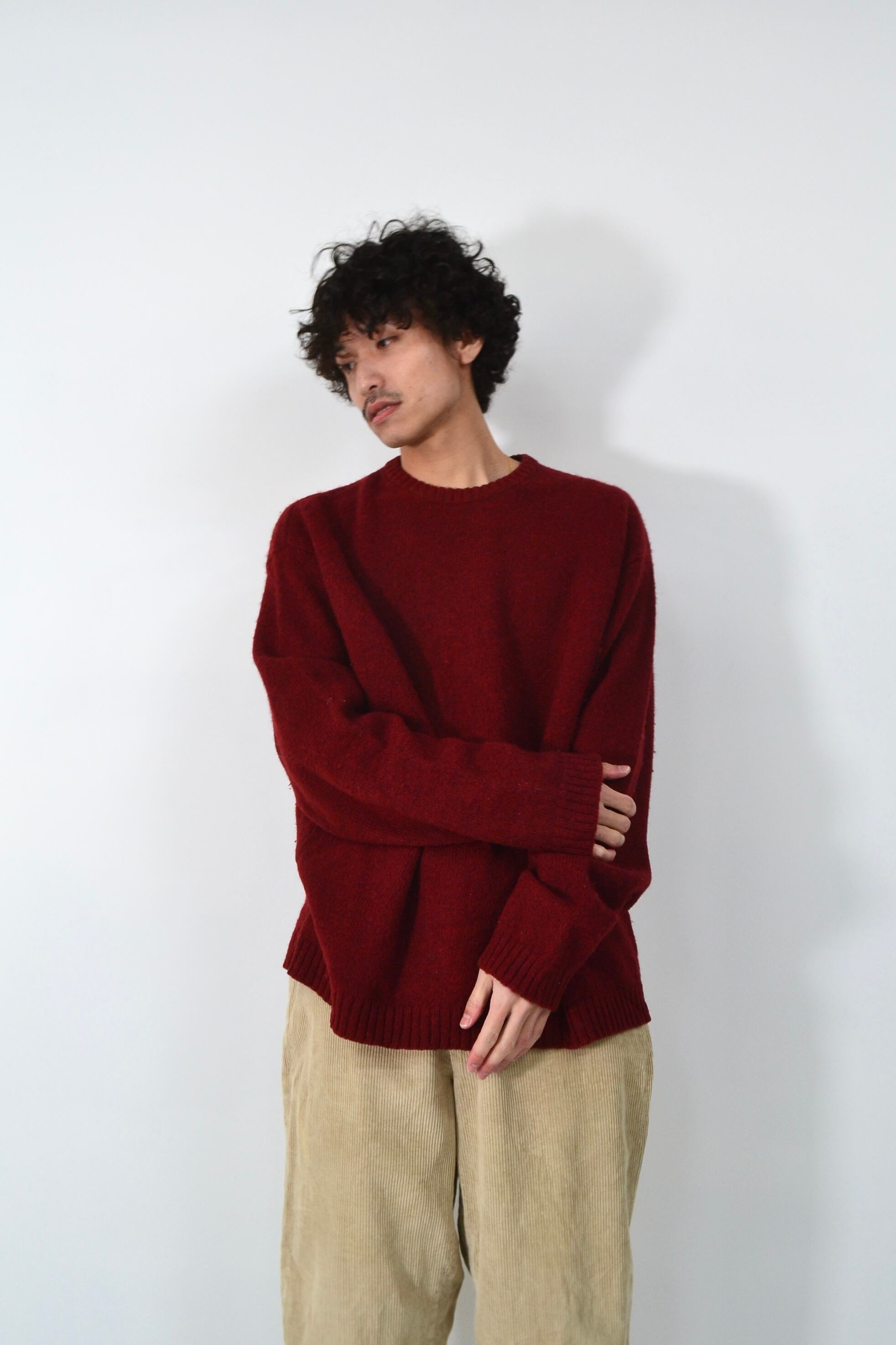 深みのあるバーガンディカラーが印象的な J.Crew のシェットランドウールニット。