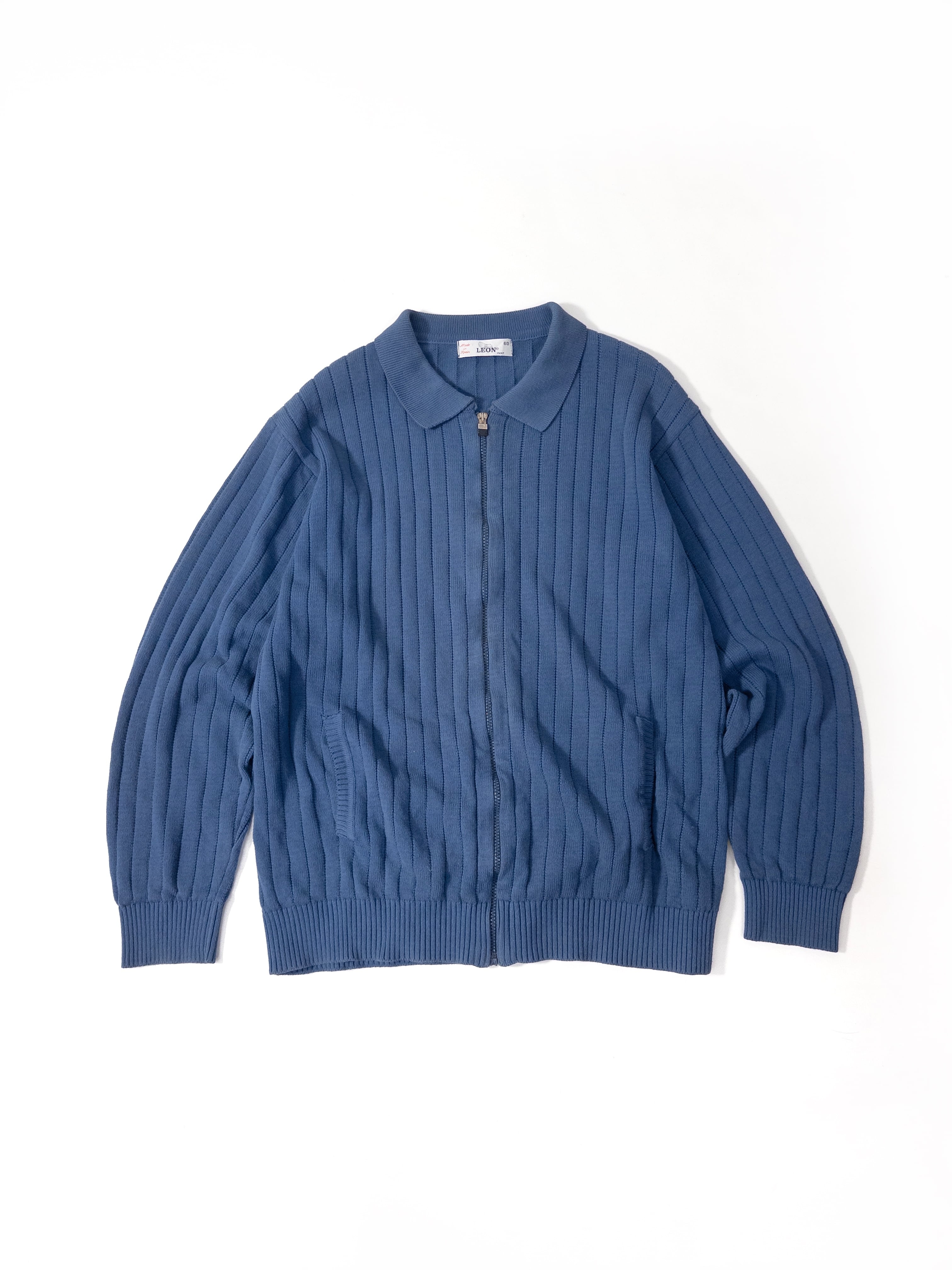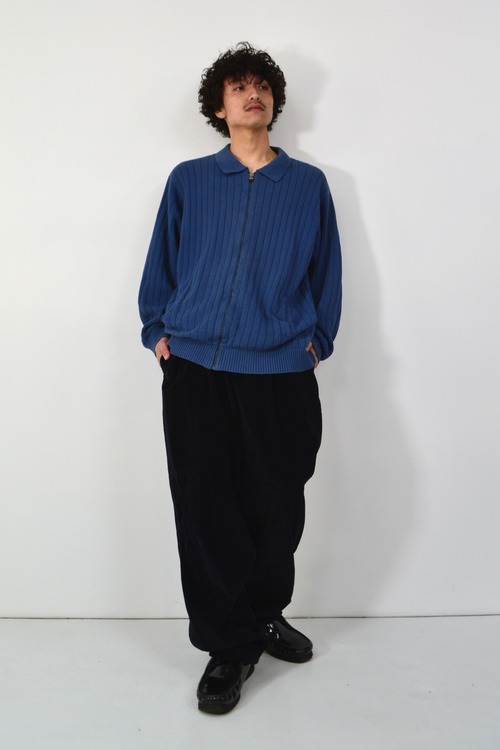 ジップアップのリブニット。