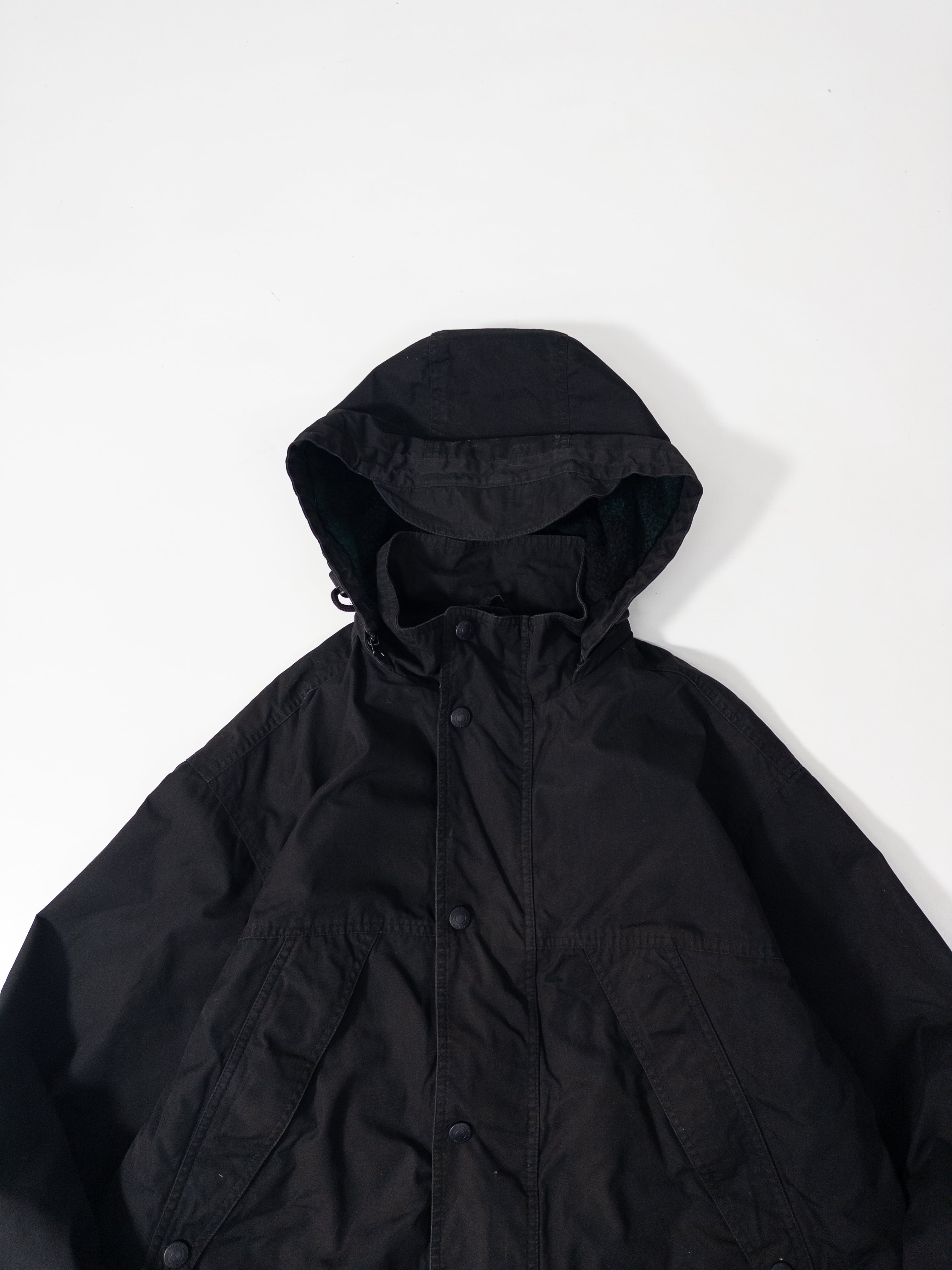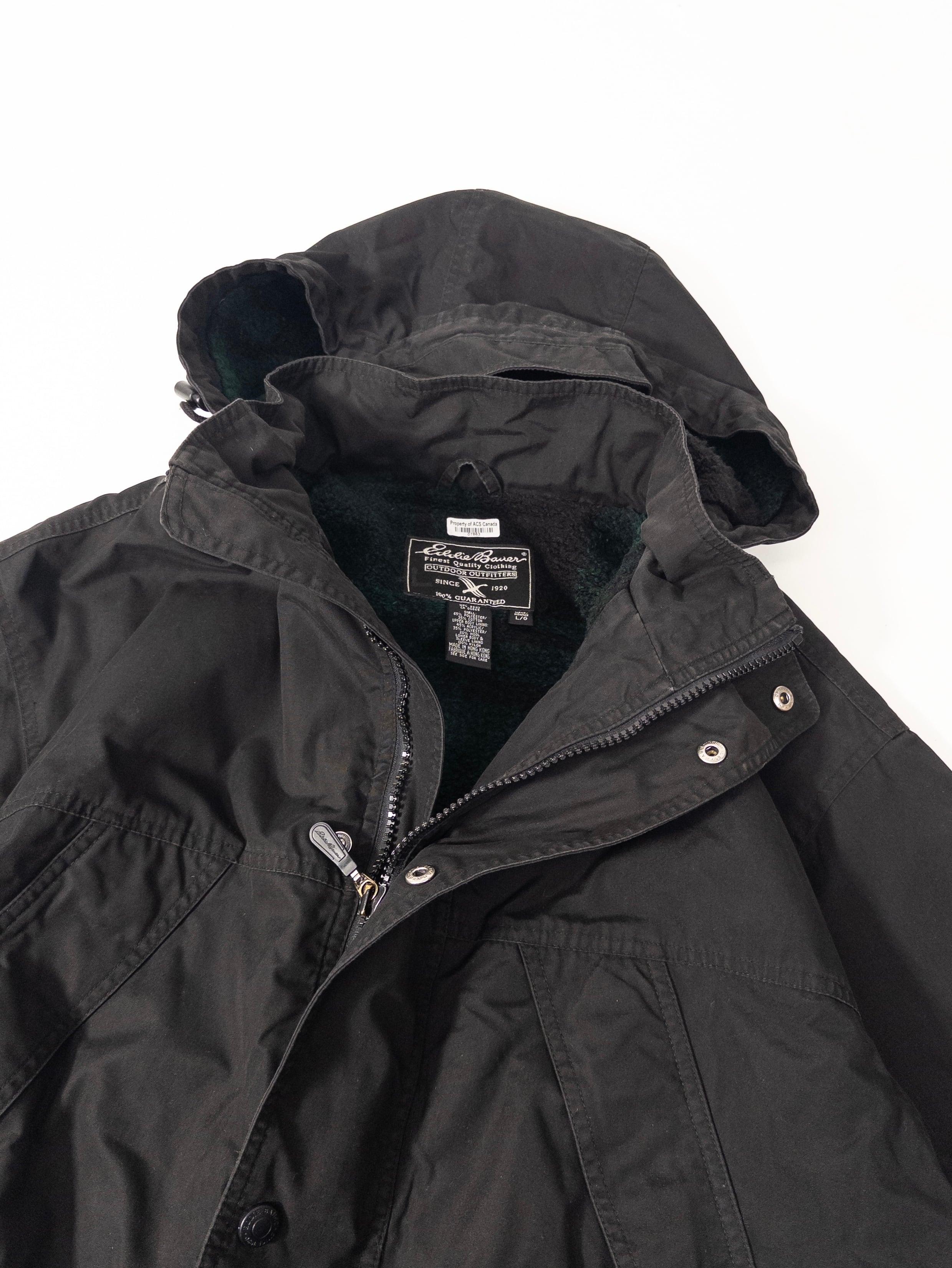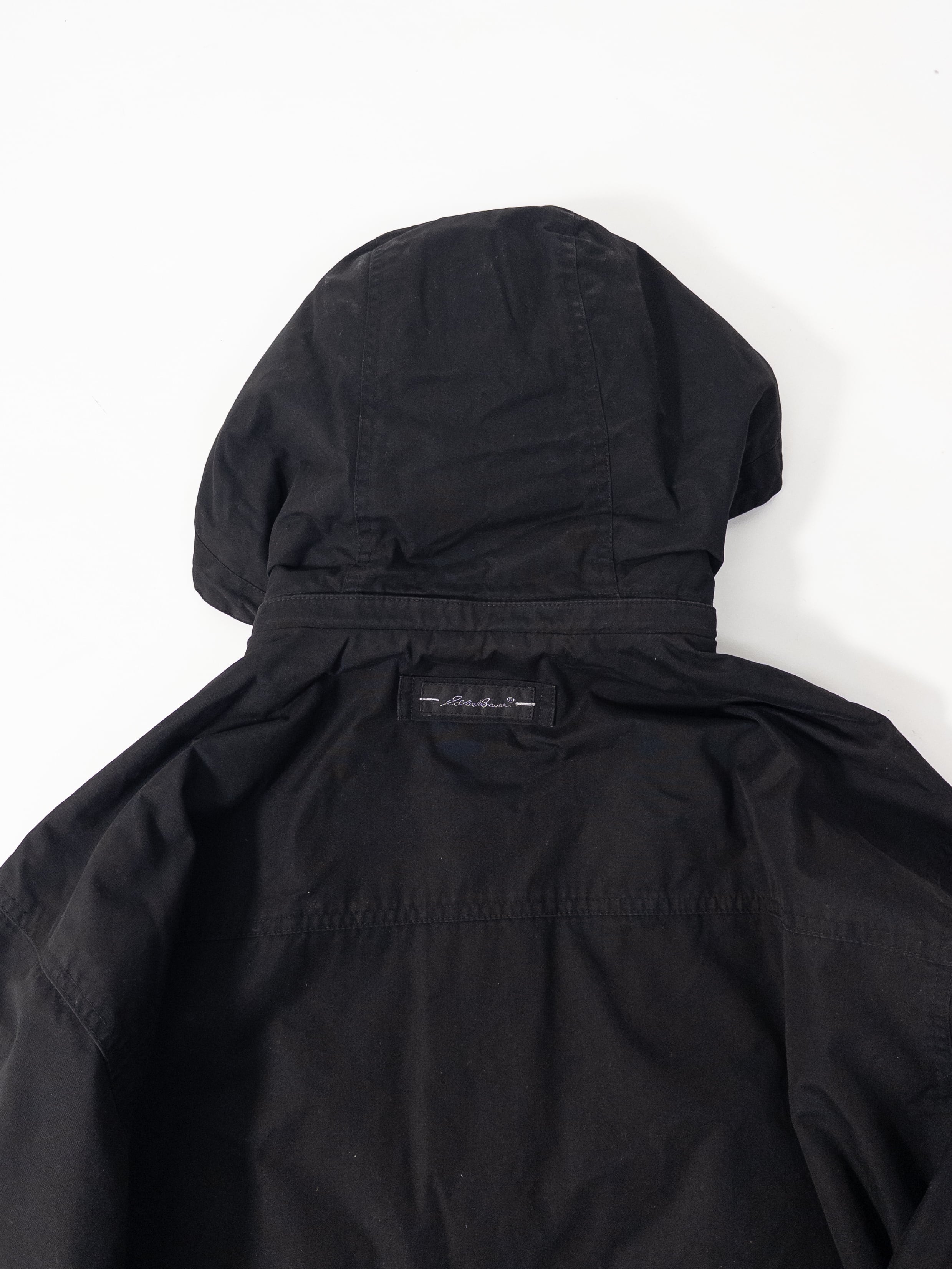 Eddie Bauerの黒マウンテンパーカー。