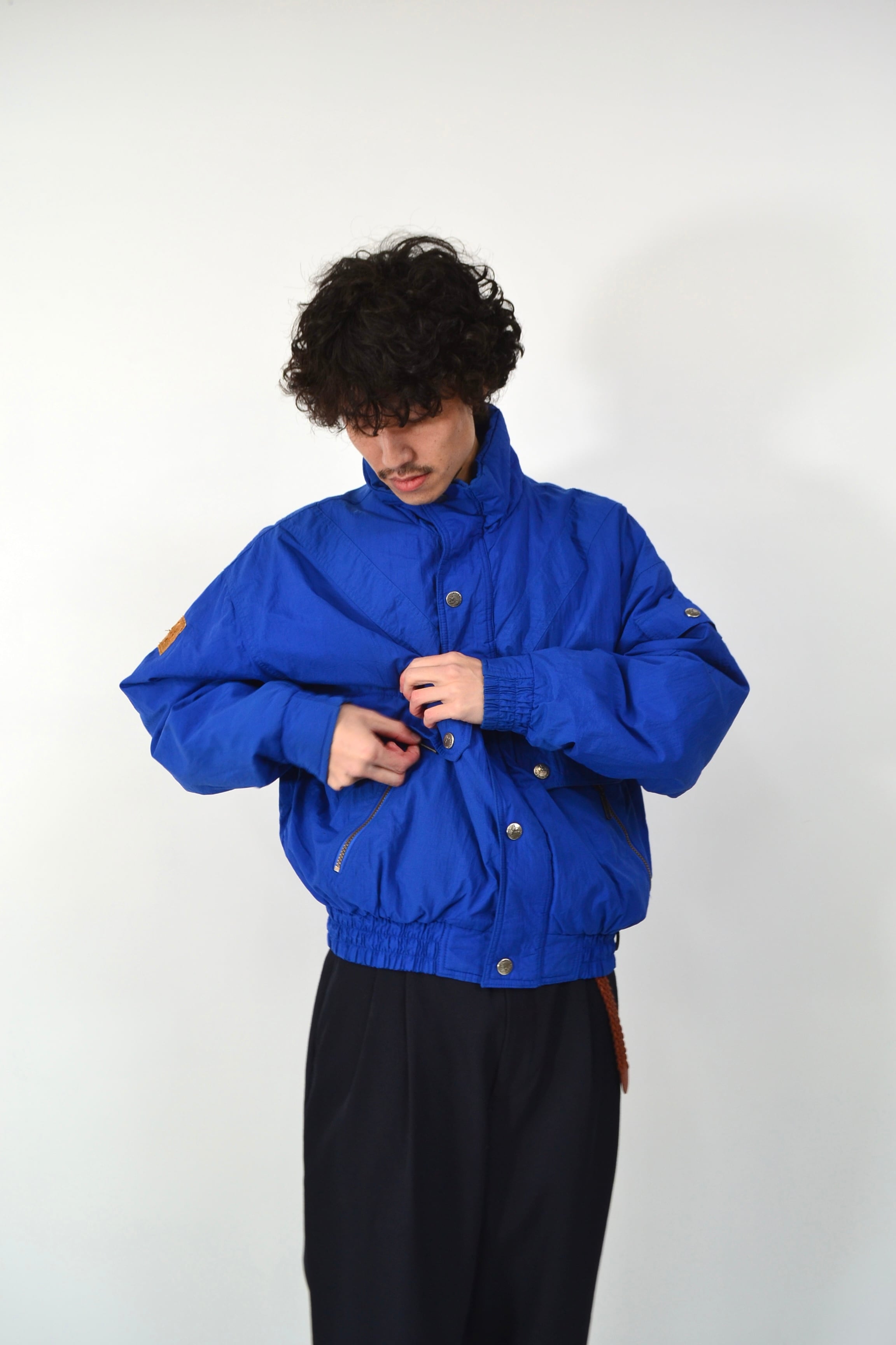発色のいいロイヤルブルーに、シルバーのスナップボタン。