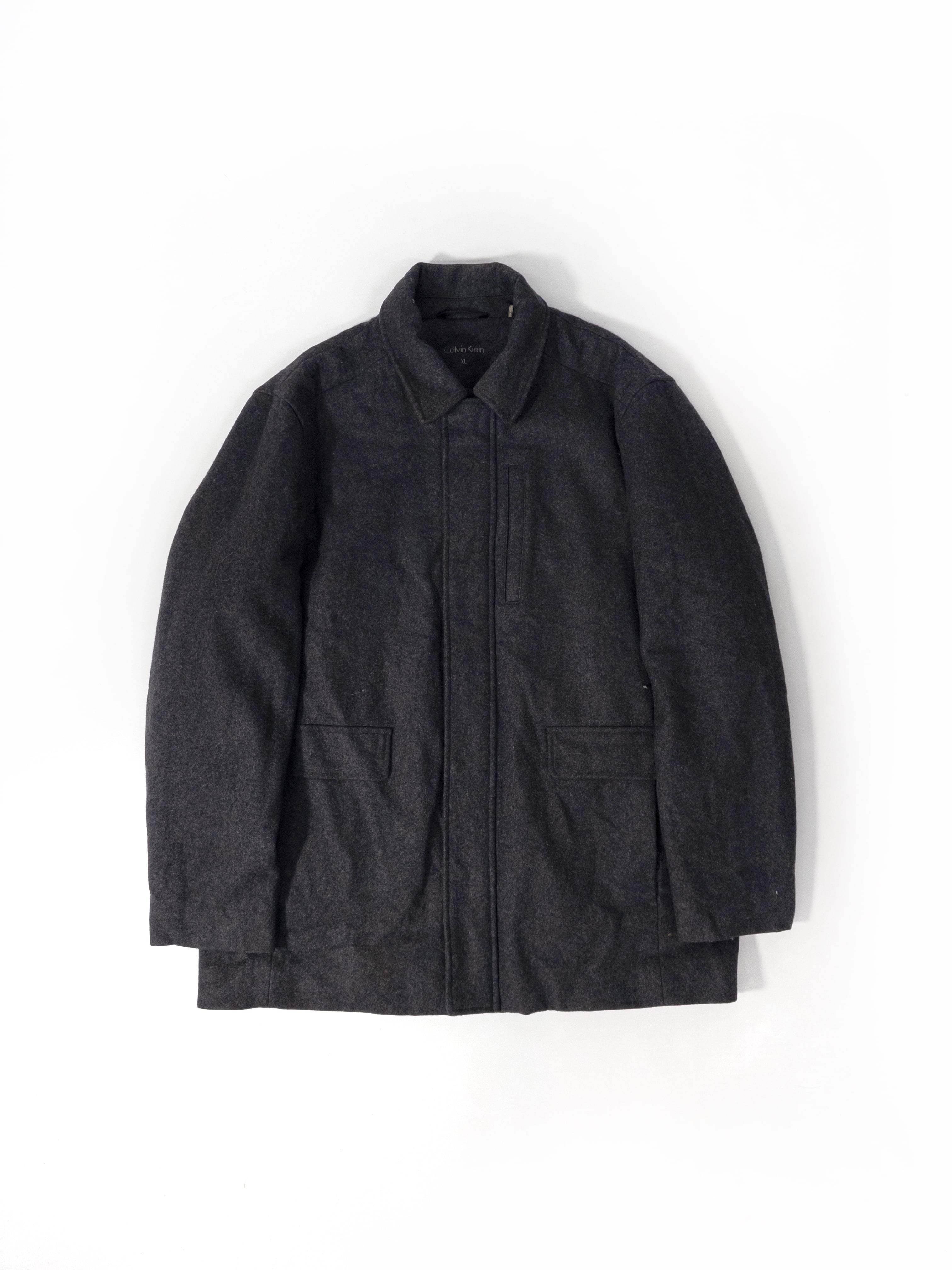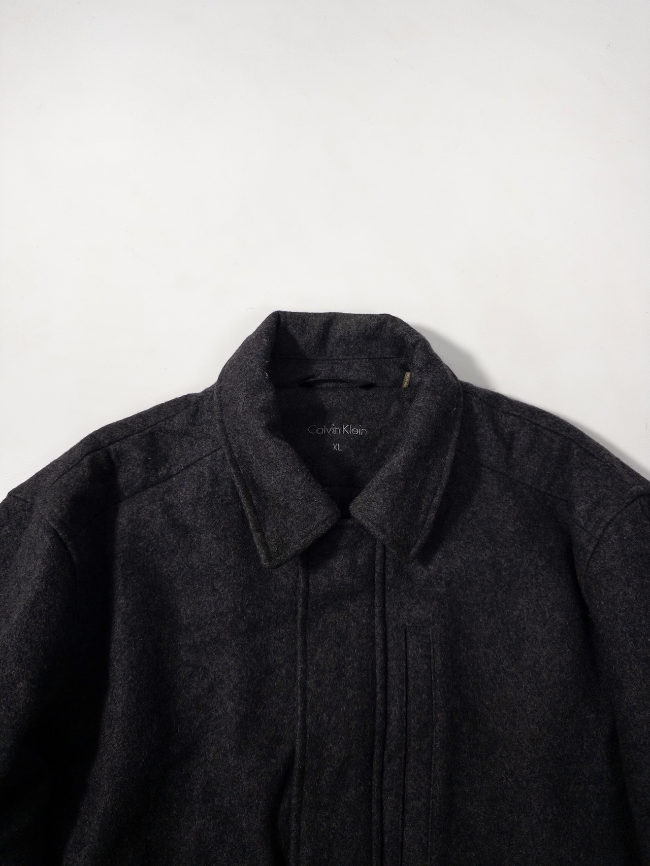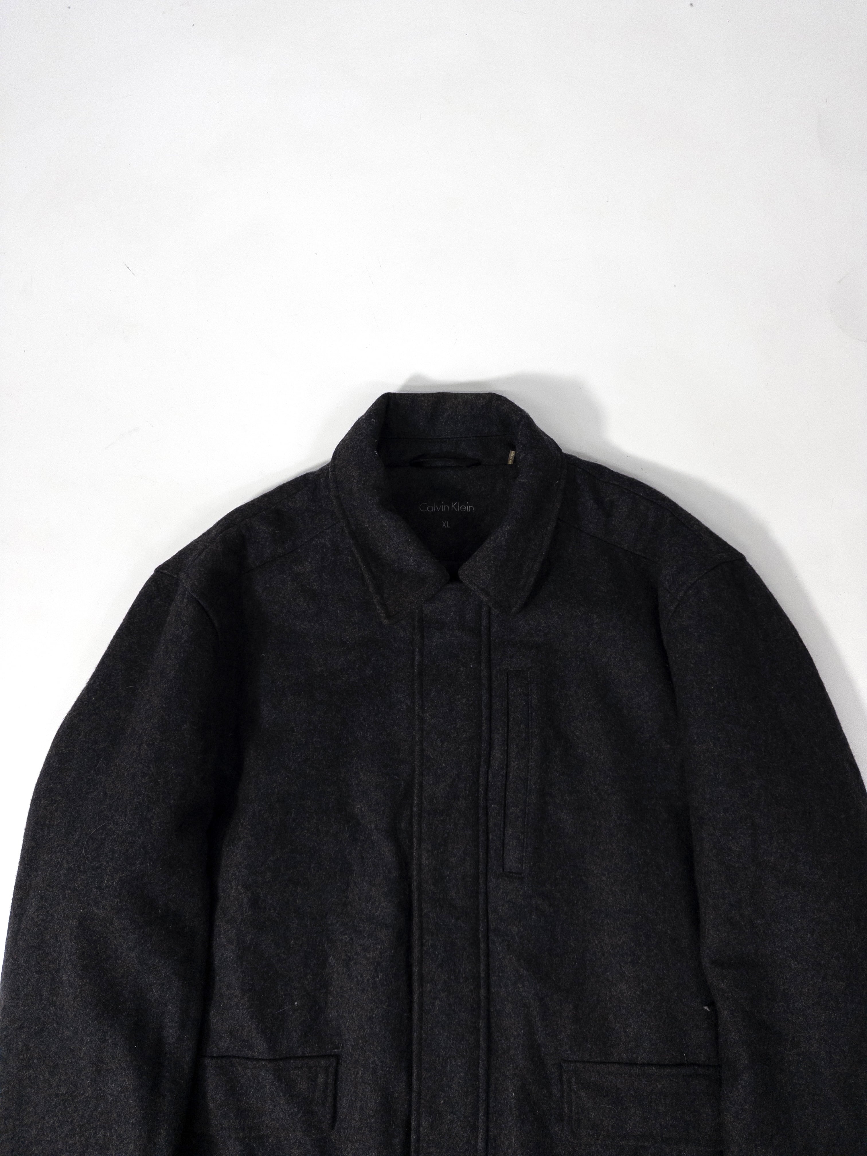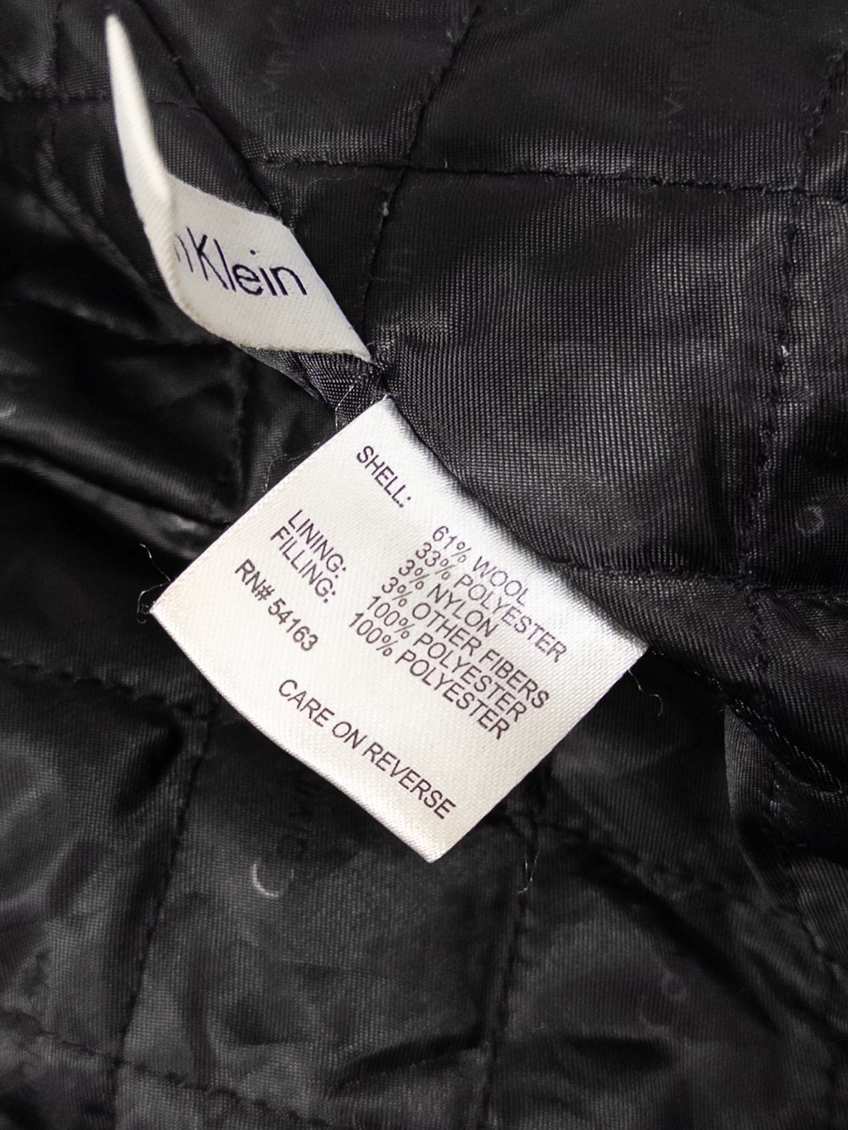 Calvin Klein のウールジャケット。タグと素材表記(ウール主体+中綿キルティング)から見て、2000年代前半〜中盤あたり。