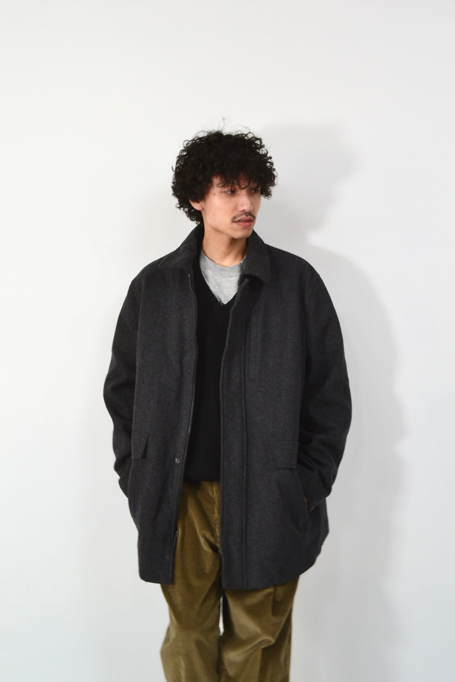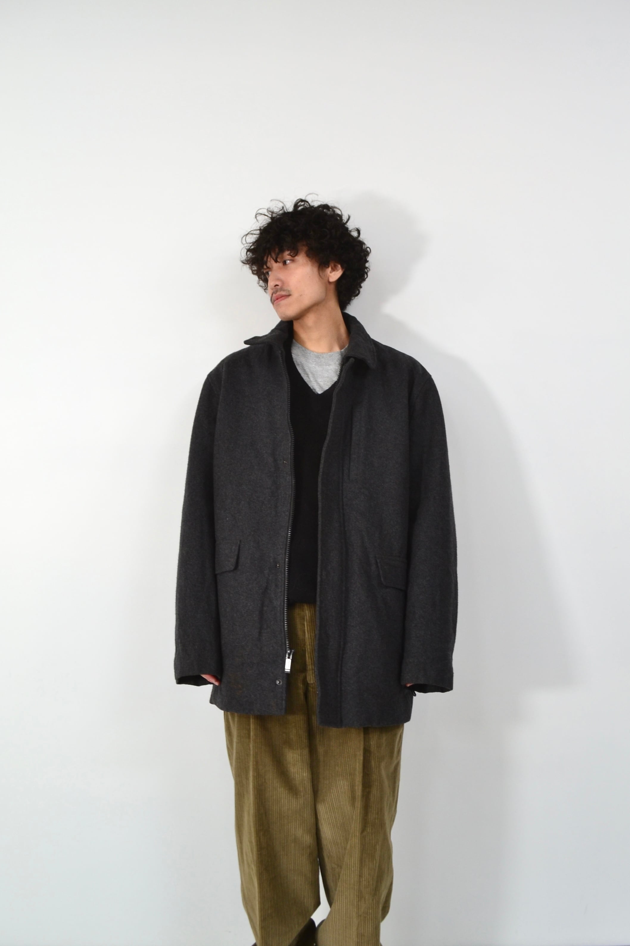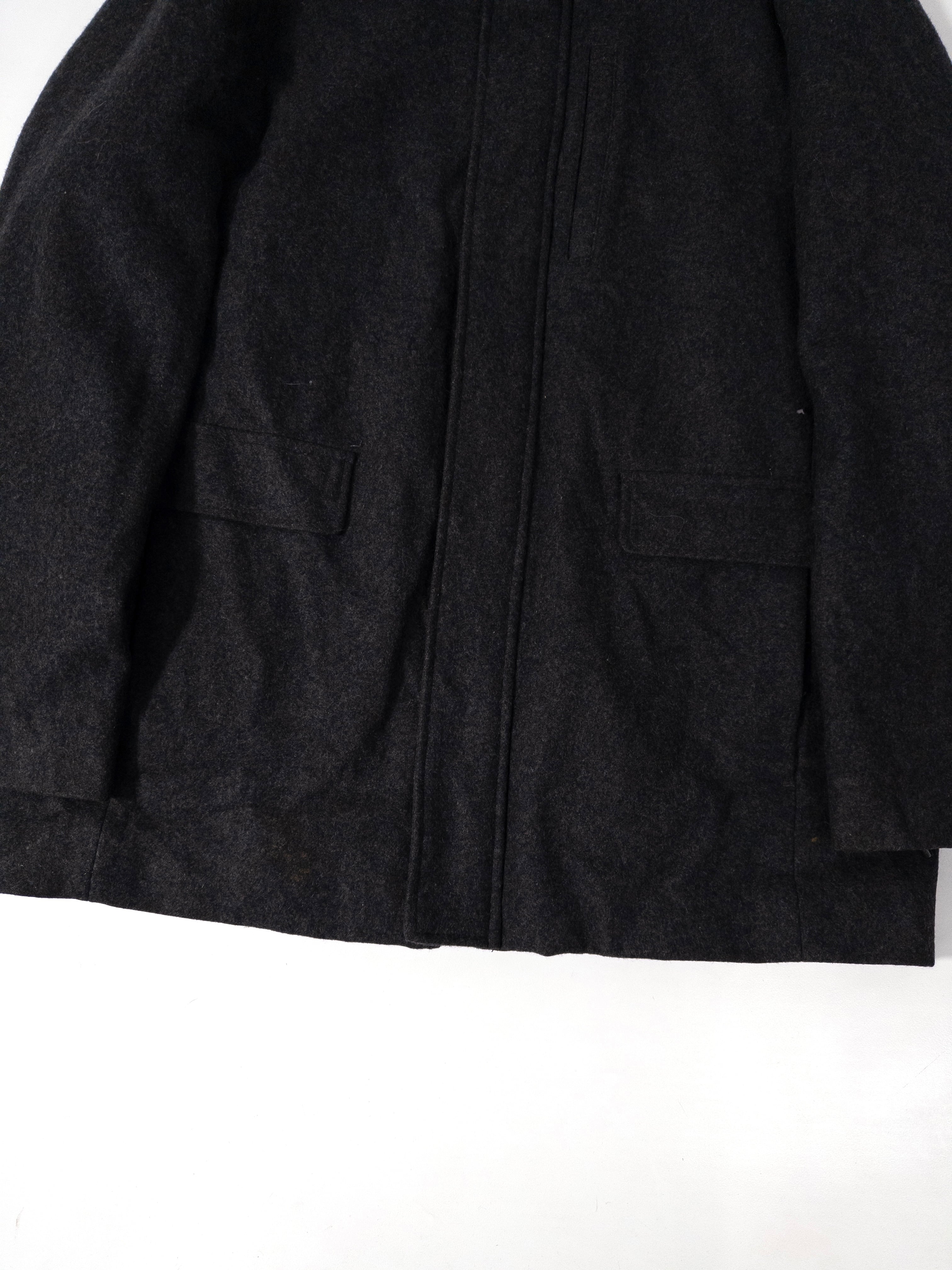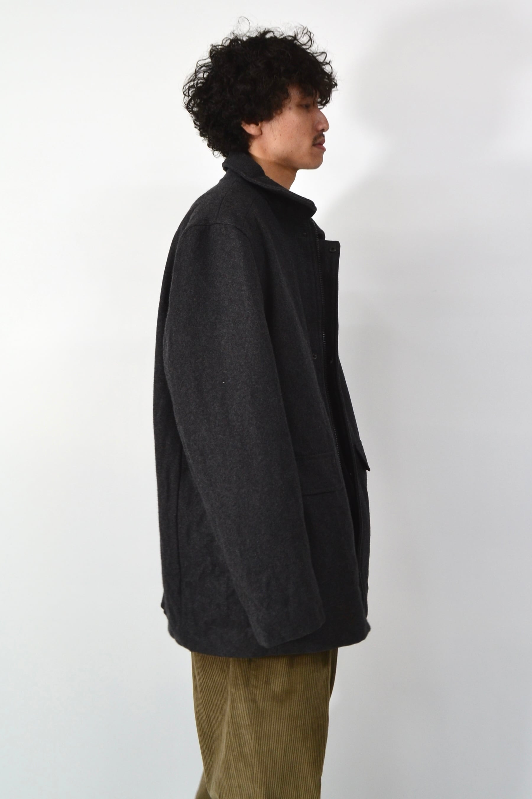 表地はメルトン寄りだけど硬すぎず、起毛感も控えめ。黒ではなく、チャコールに近い深い色味なのがポイントで、光の当たり方で表情が変わる。中は総キルティングで、コートほど重くないのにしっかり保温性がある。