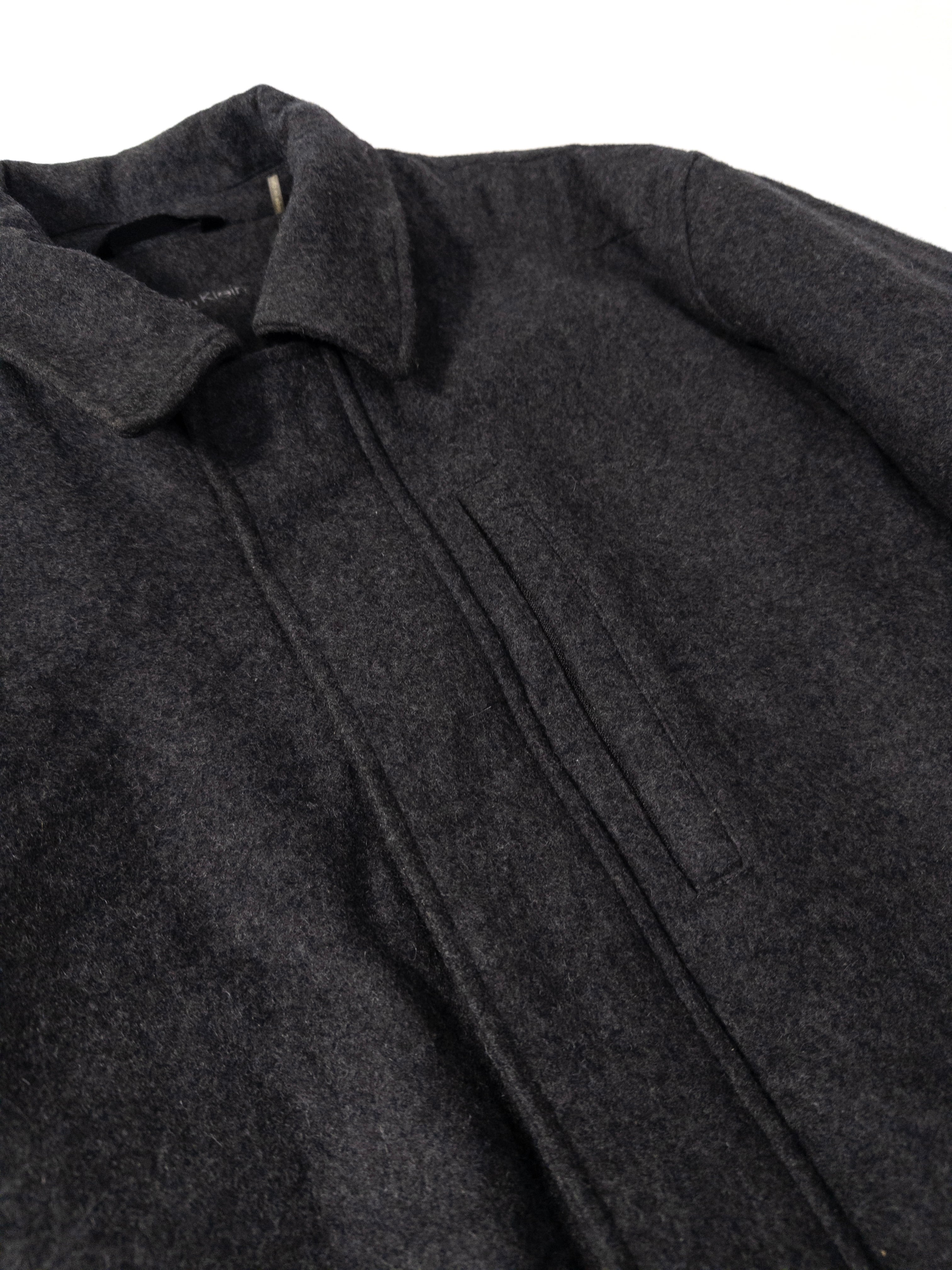 フロントは比翼仕様、ポケットも極力フラット。デザインで押すというより、「余計なことをしない」ことで成立しているジャケットです。