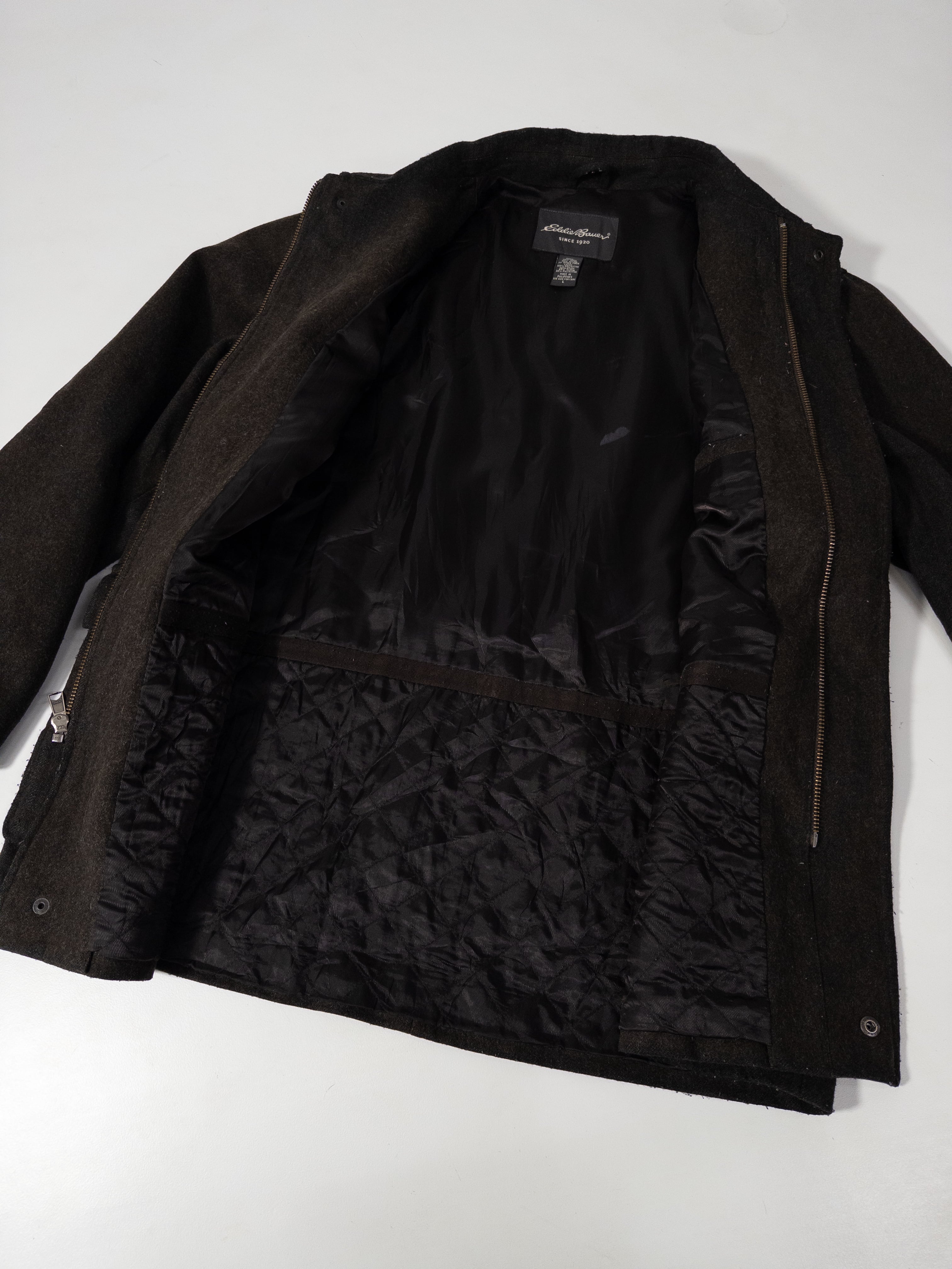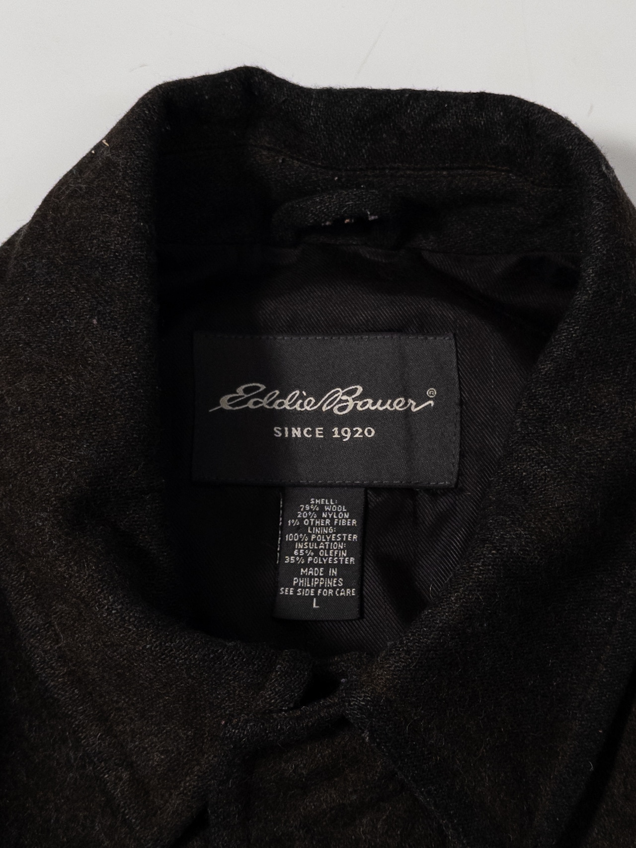 Eddie Bauerのウールジャケット。タグ仕様と素材表記(ウール×ナイロン、化繊中綿)から見て、2000年代前半あたりのプロダクト。