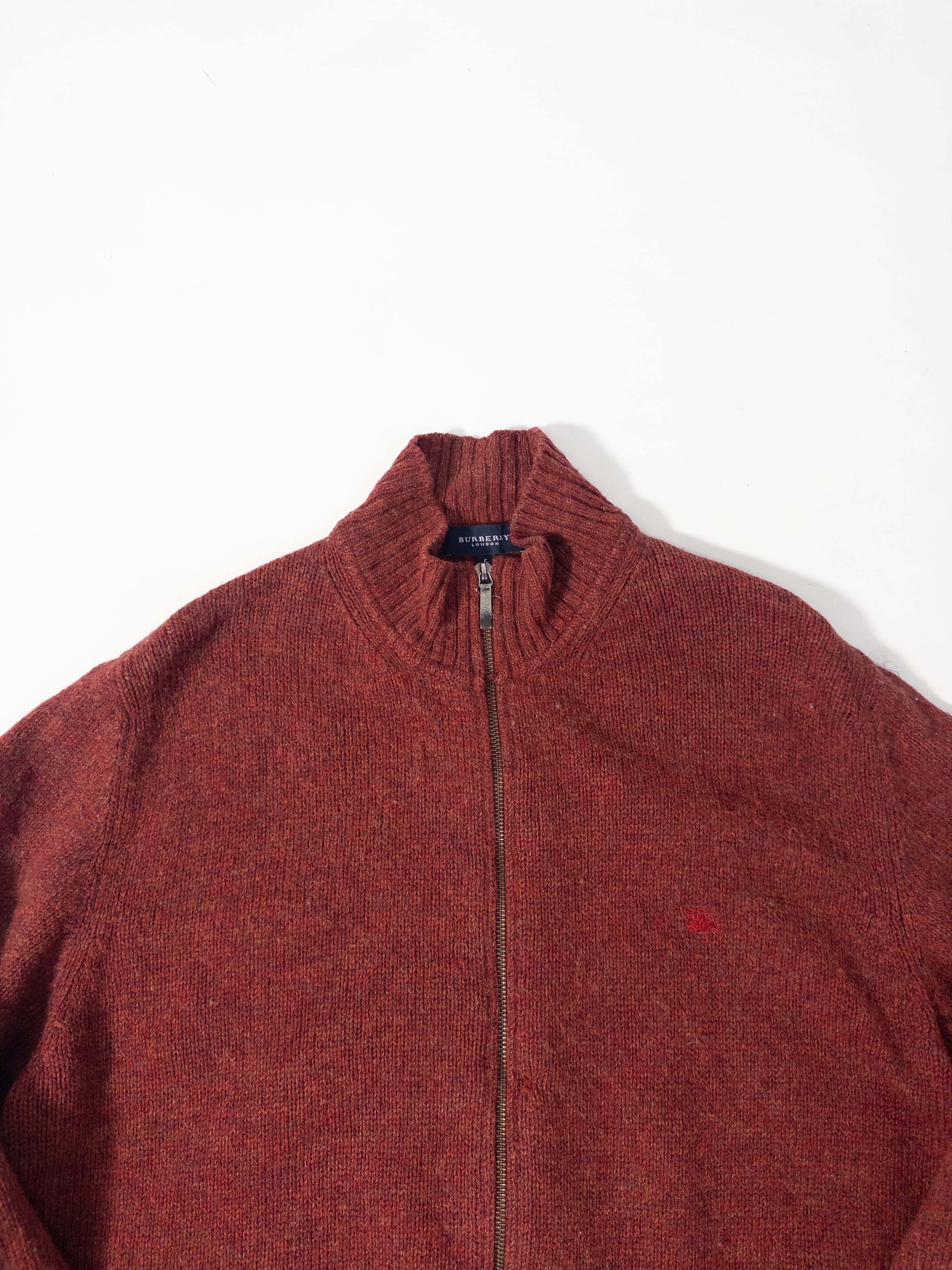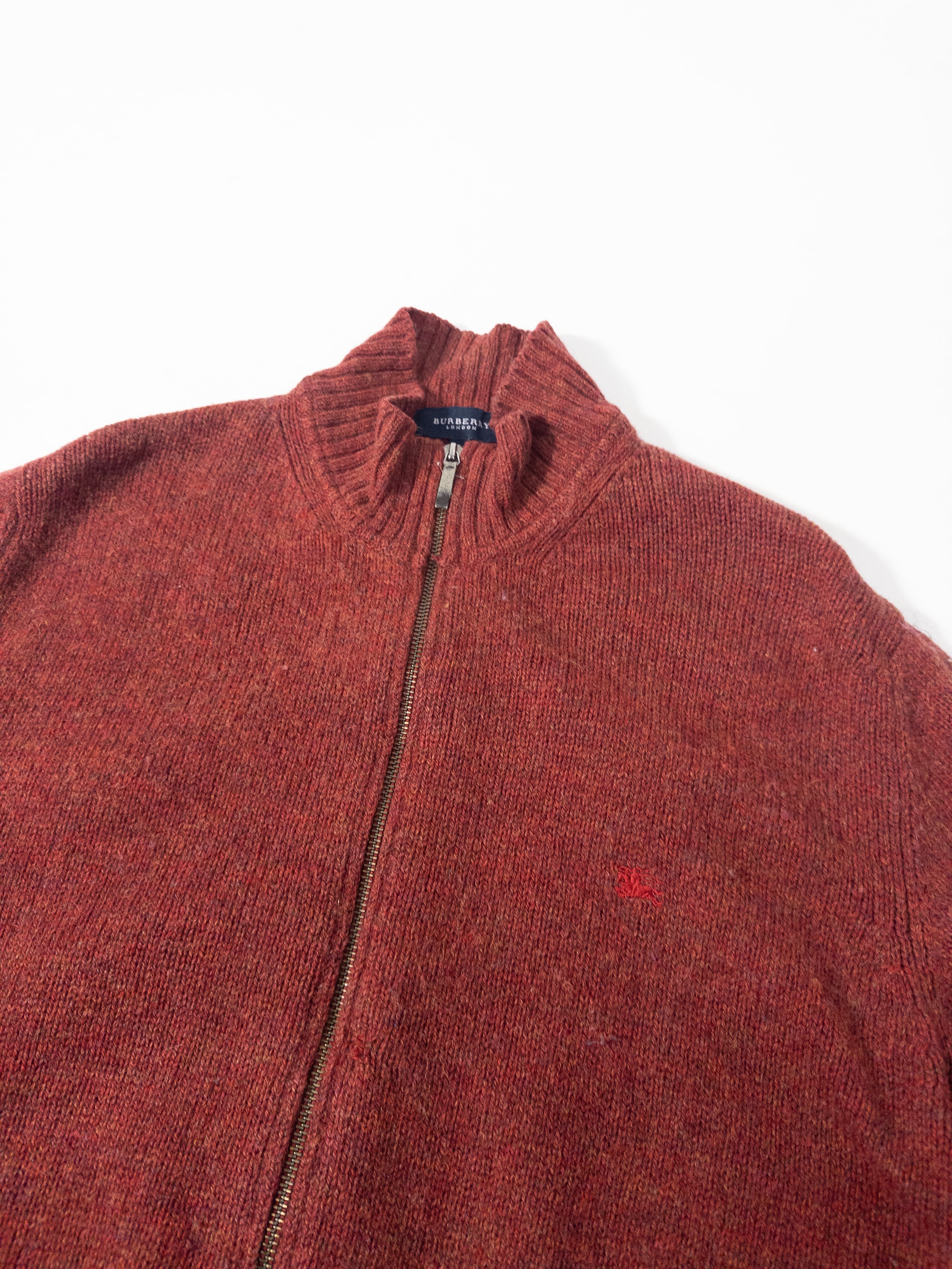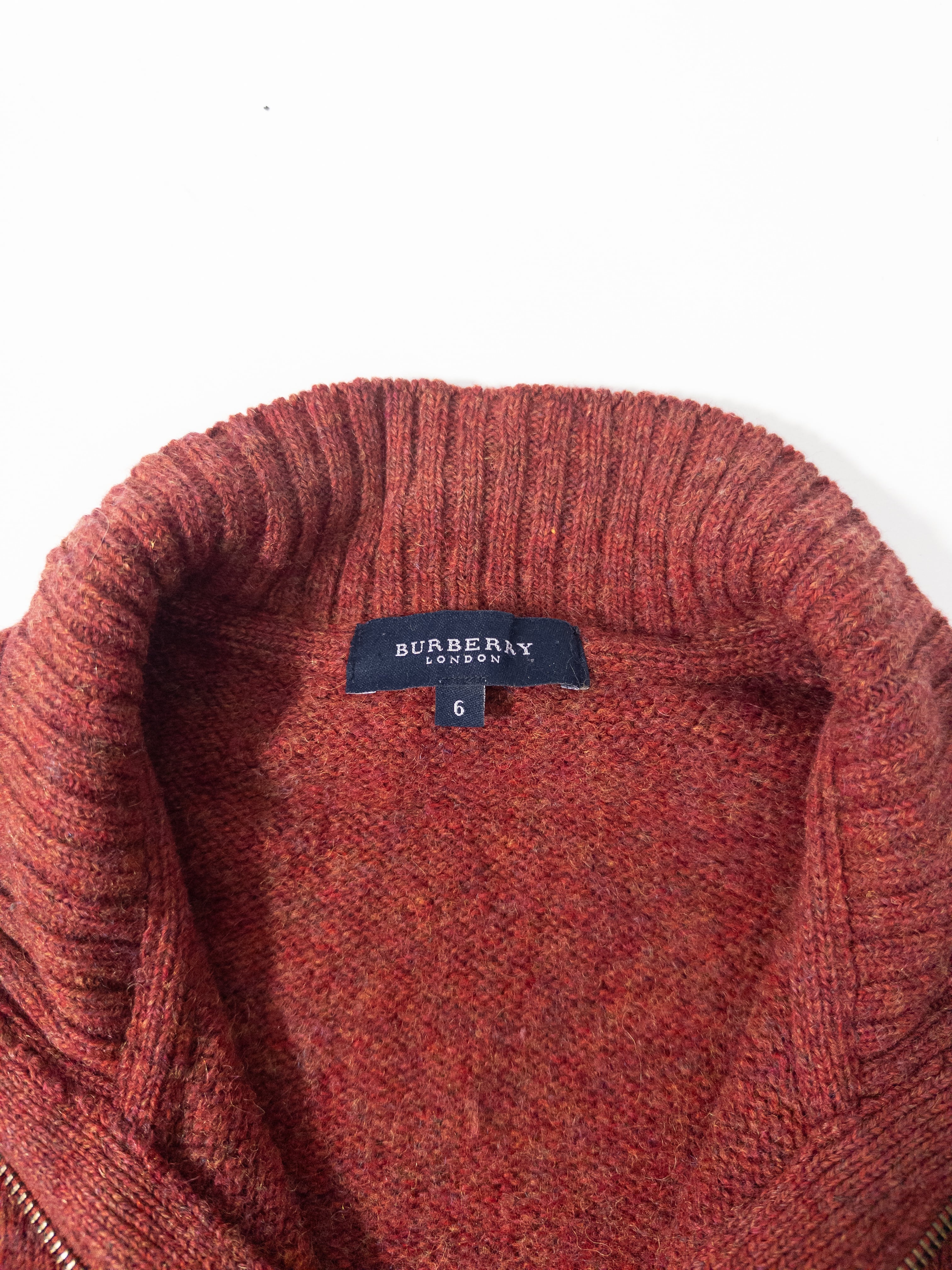 でも近くで見ると、単色ではなく複数色を撚ったミックス糸による奥行きのある表情がしっかり出ていて、さすがバーバリー、素材の使い方が上手い一枚です。