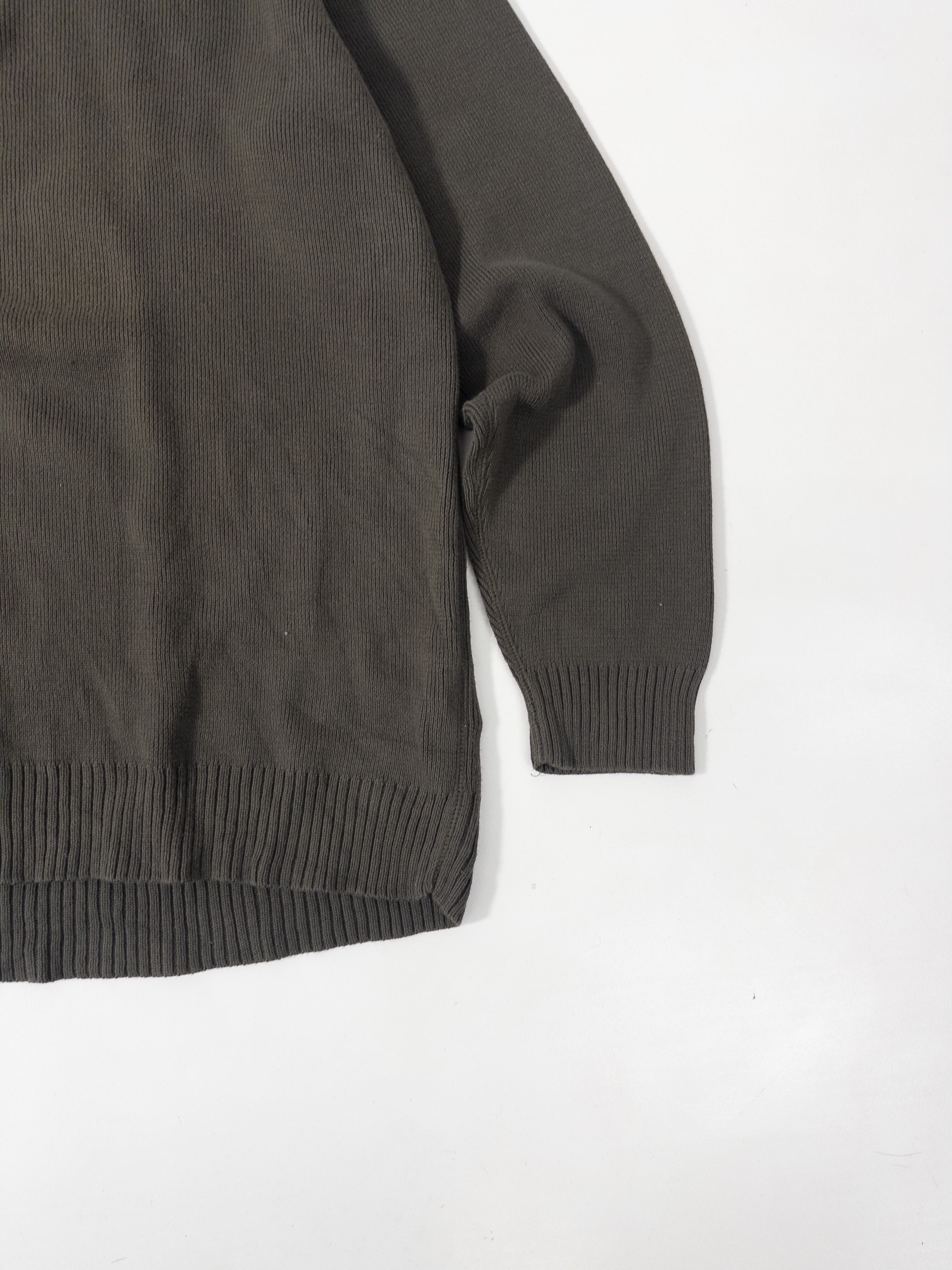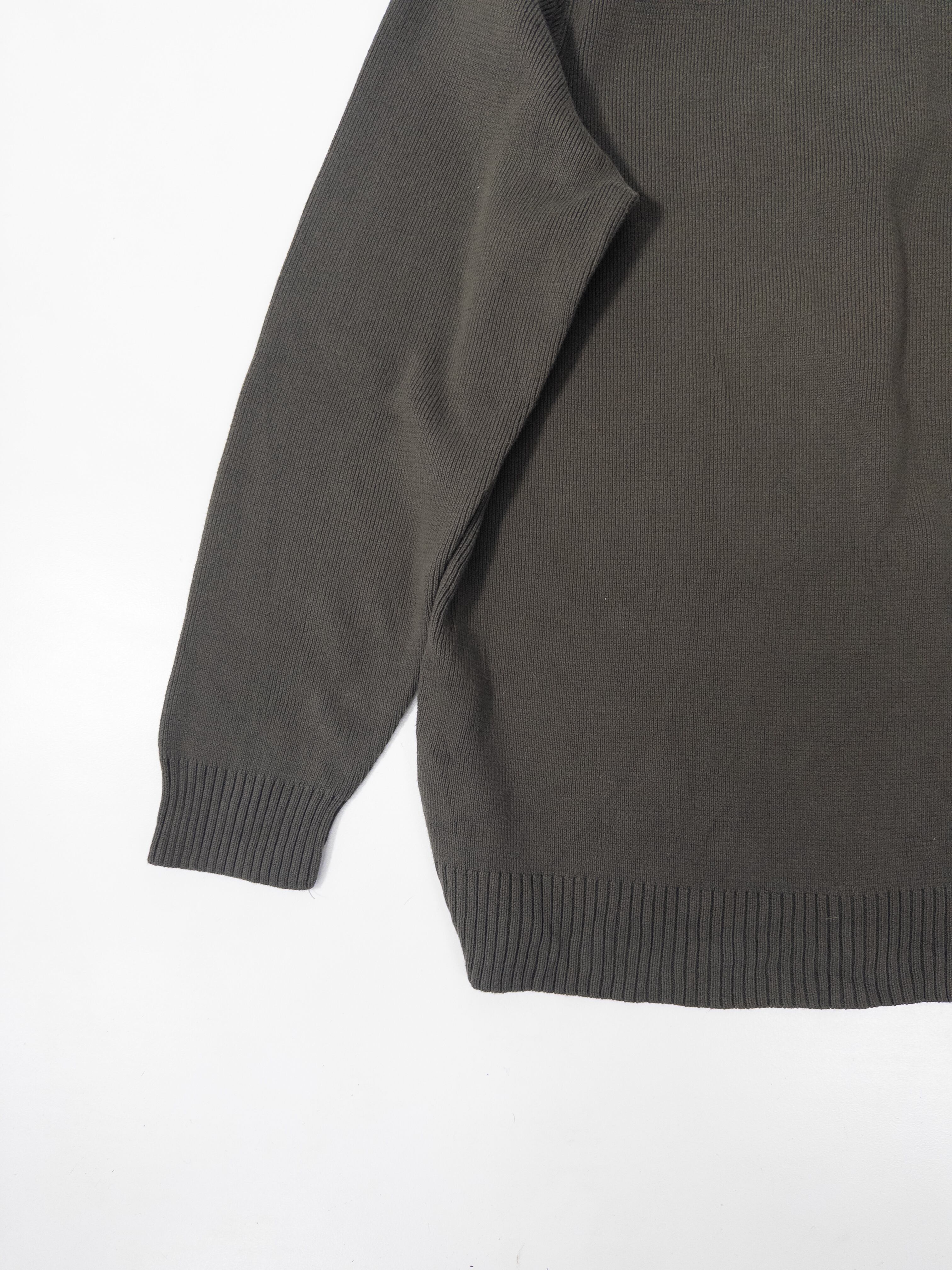 こういう何気ないニットにも、シルエットの安定感とか首元の作りに