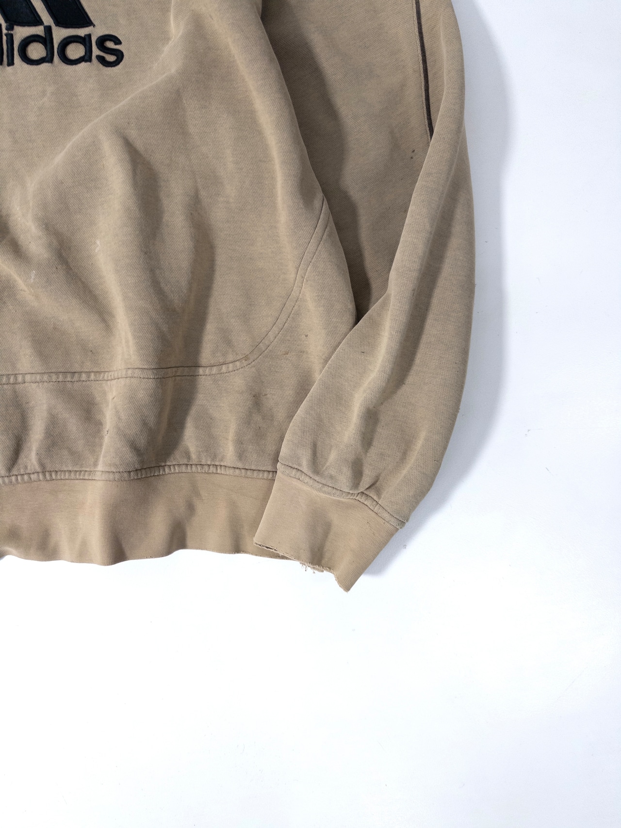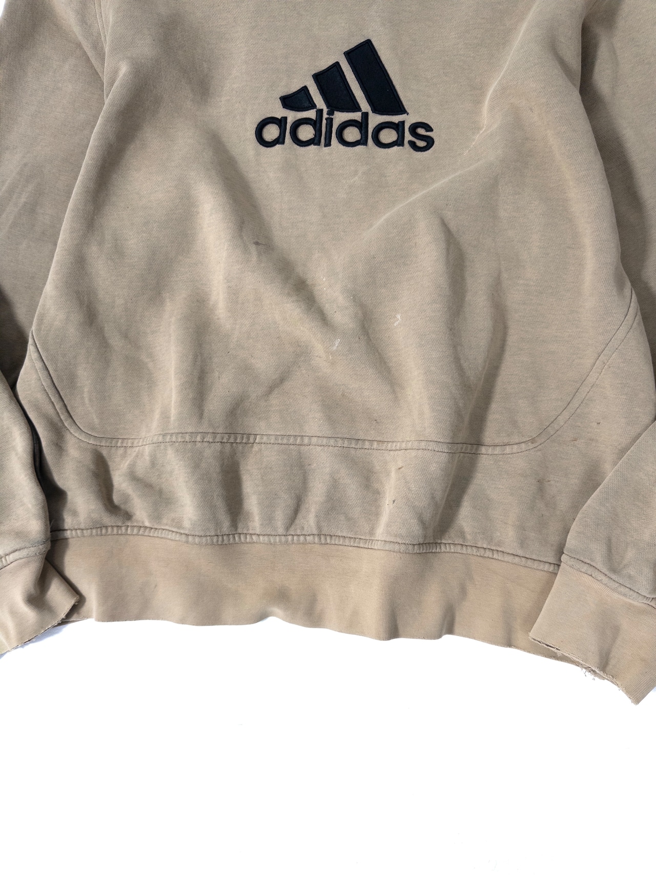 adidasのロゴがあることで、ただのボロでは終わらず、スポーツの文脈を残したまま崩れているのもポイントです。