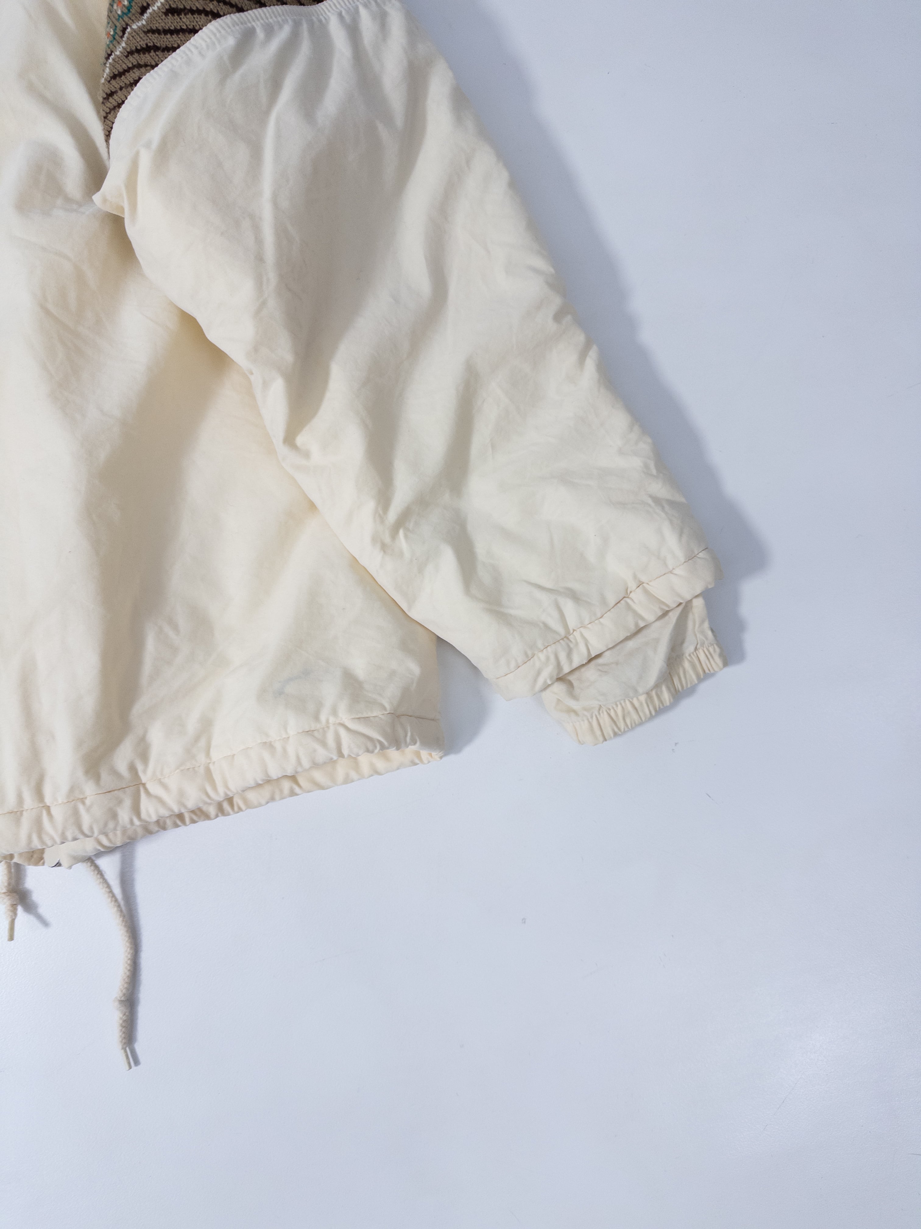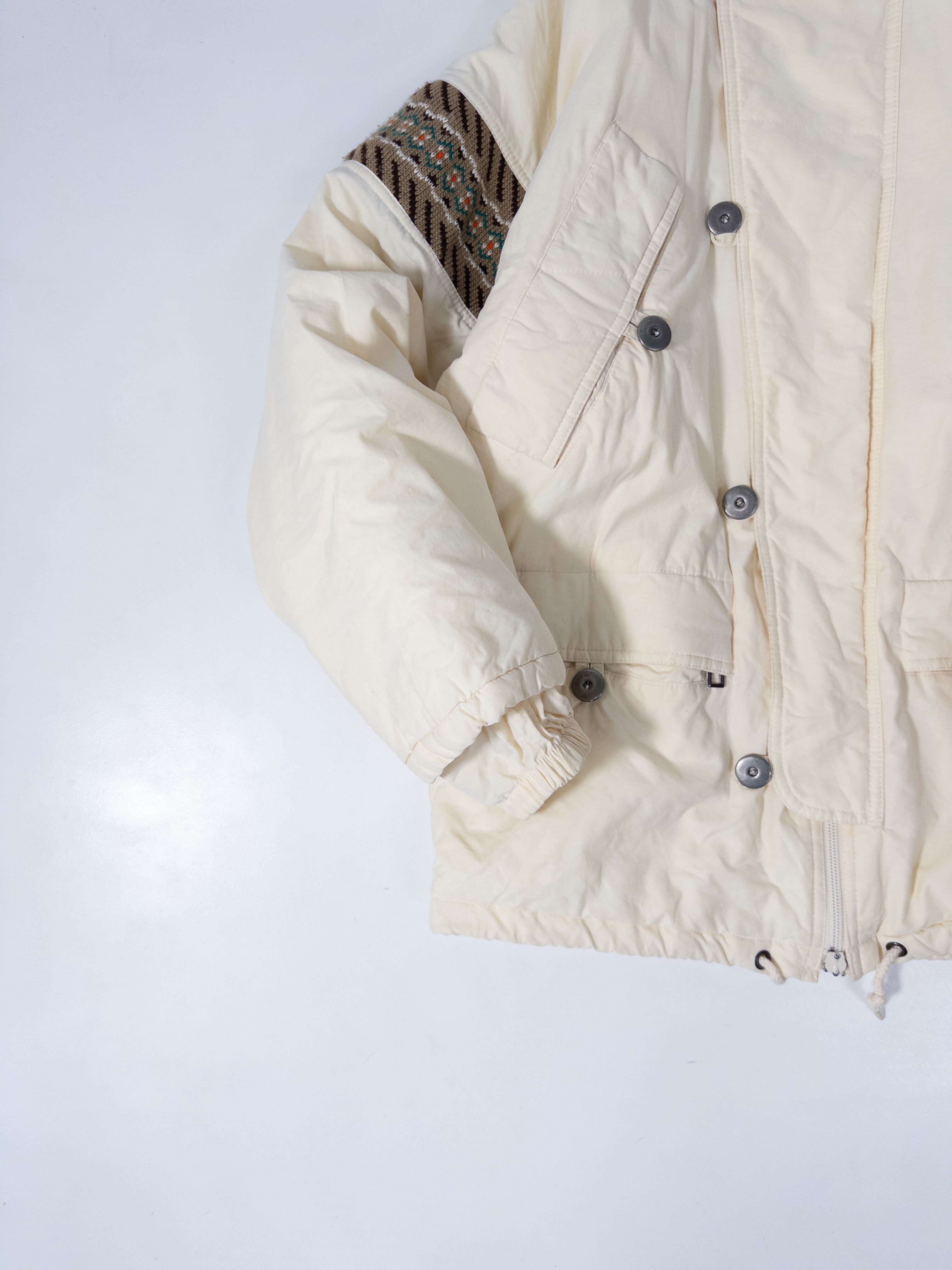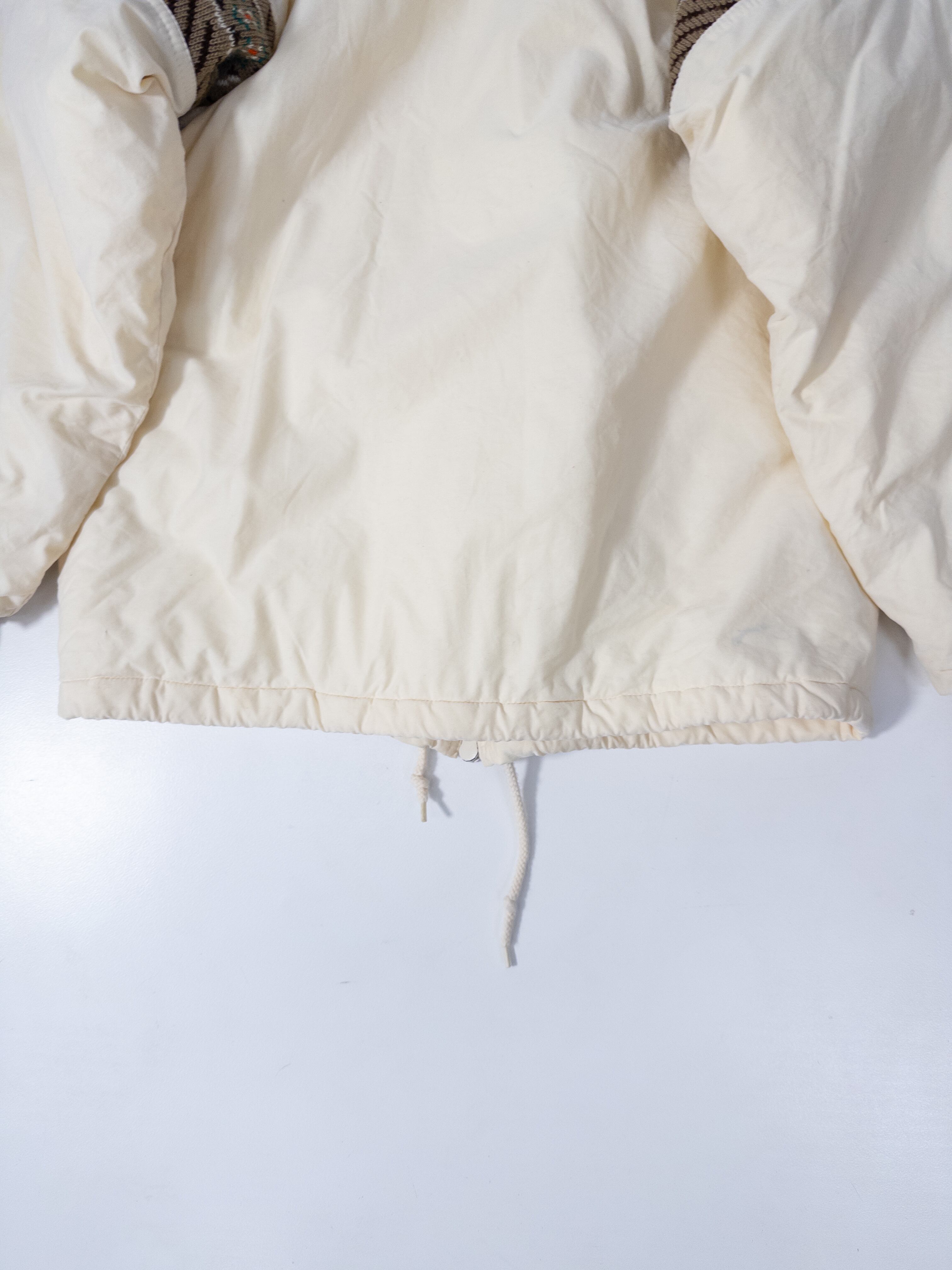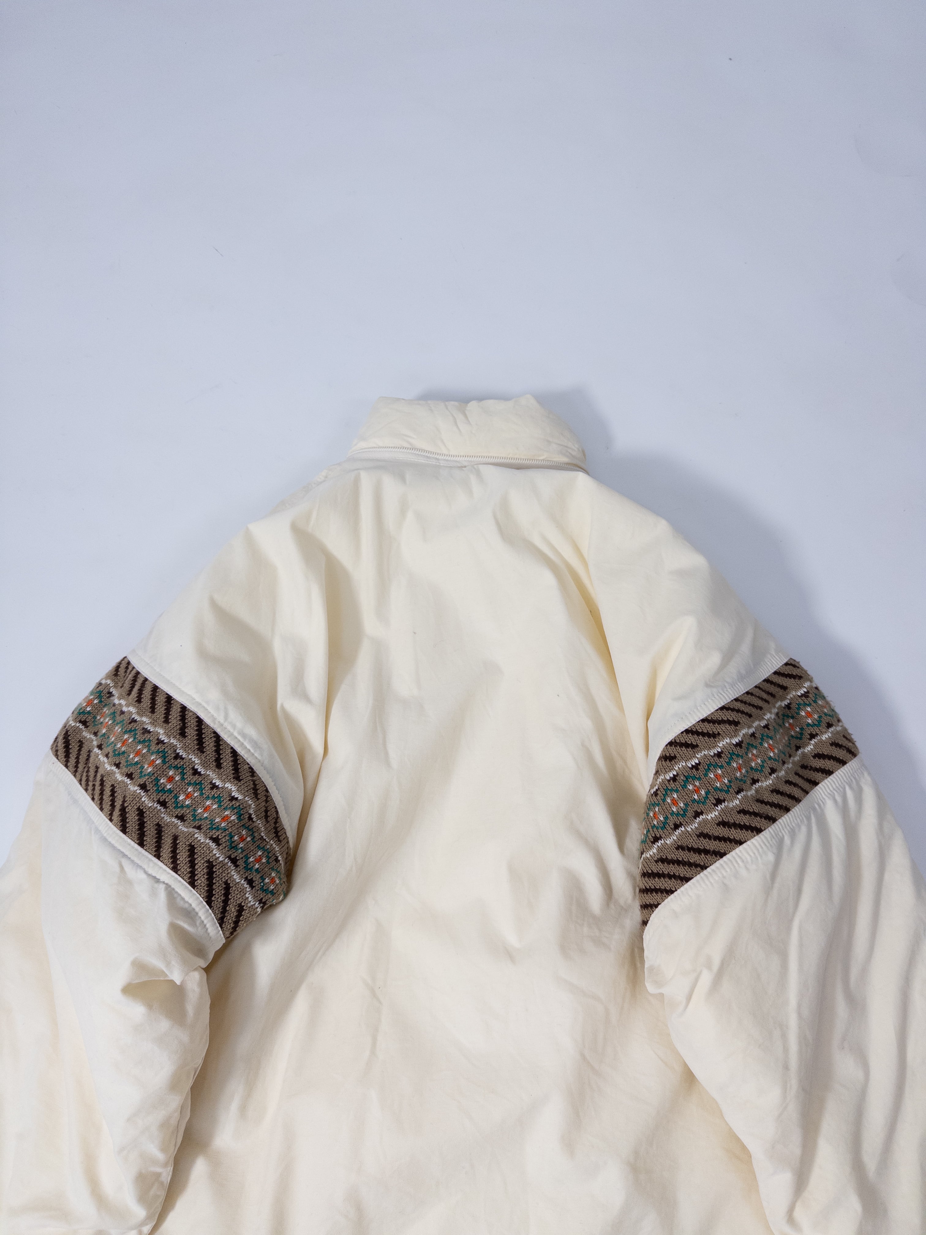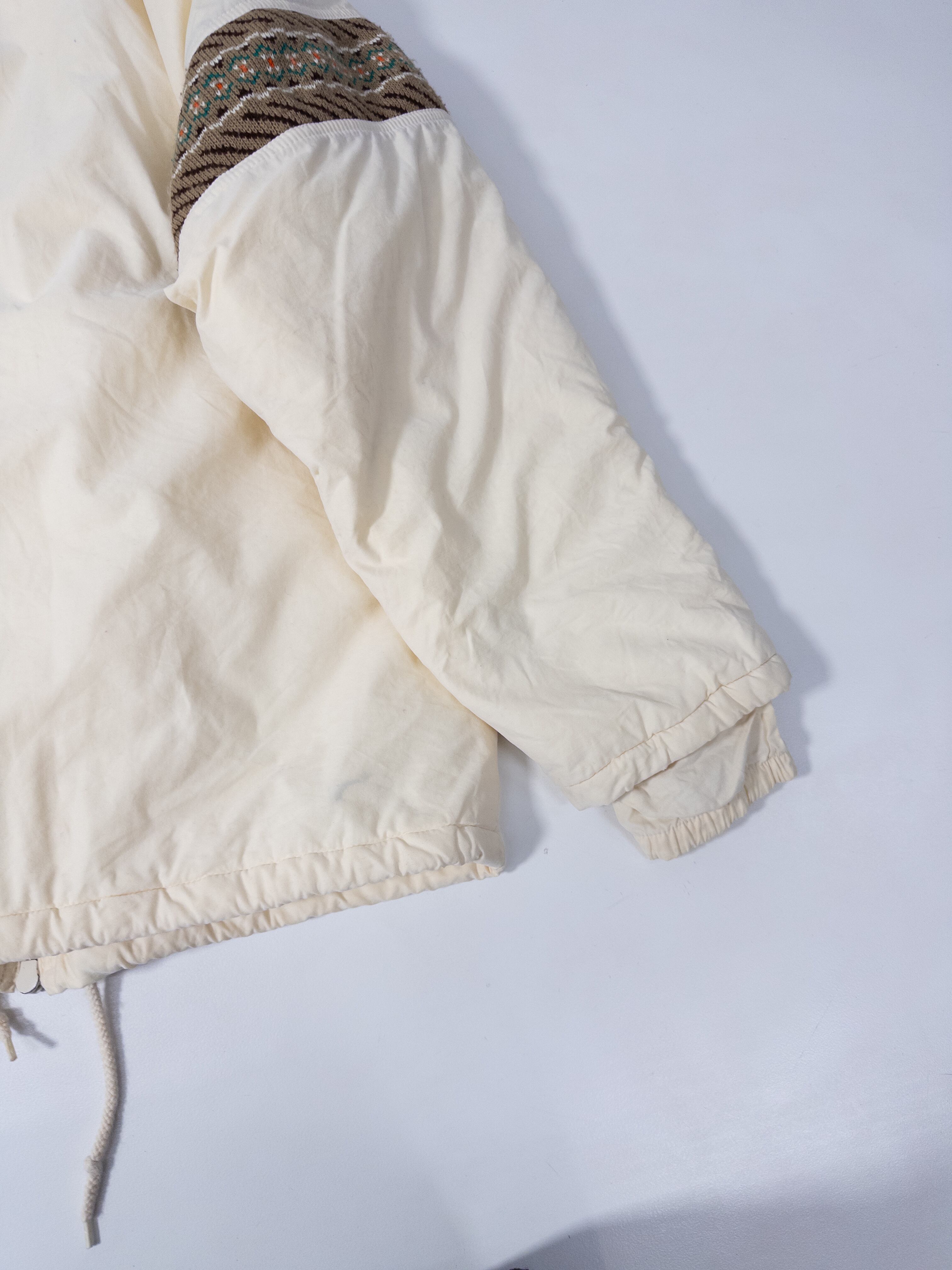スポーティな中綿ジャケットに、どこか民族感のあるムードが重なってます。
