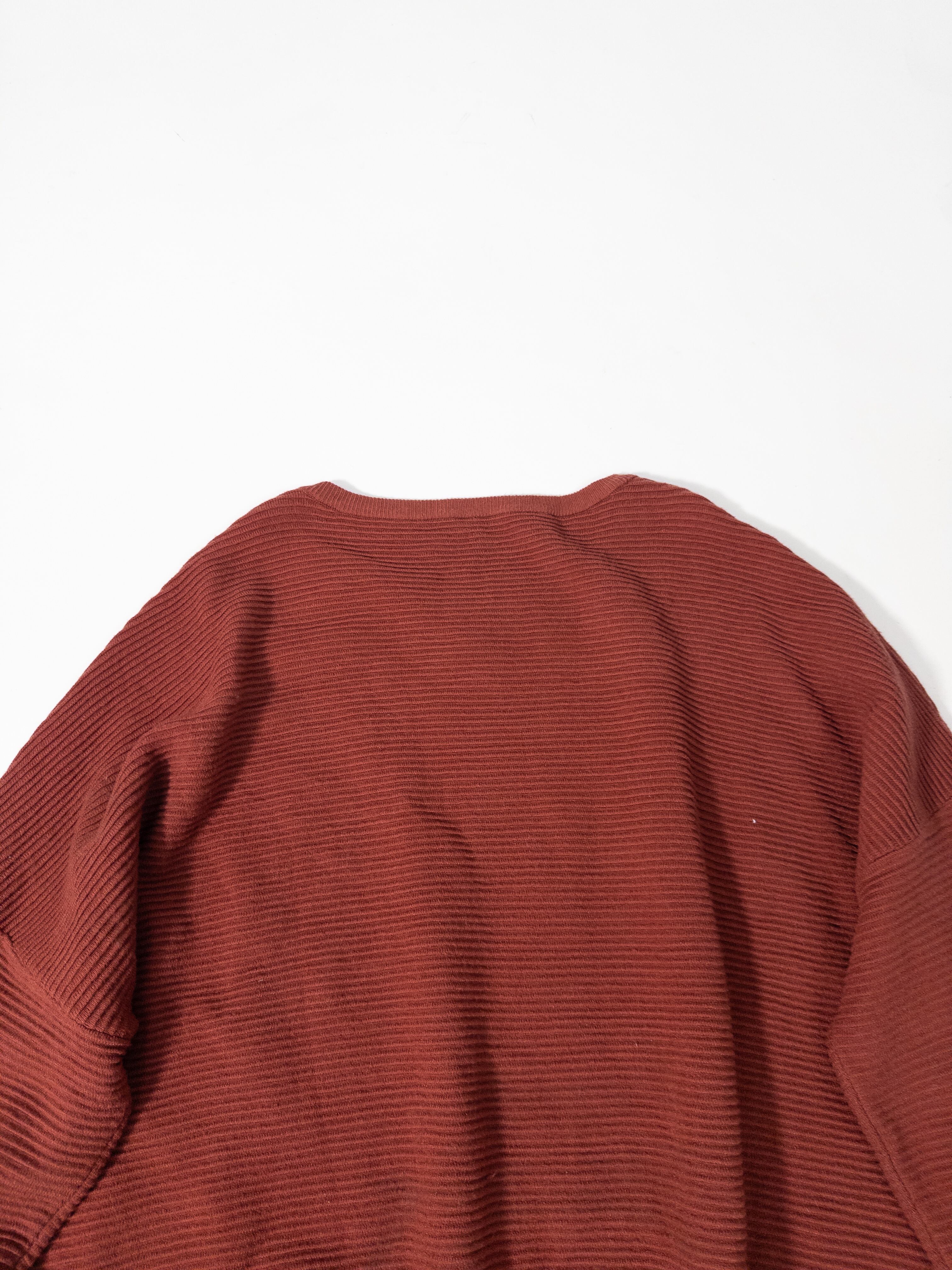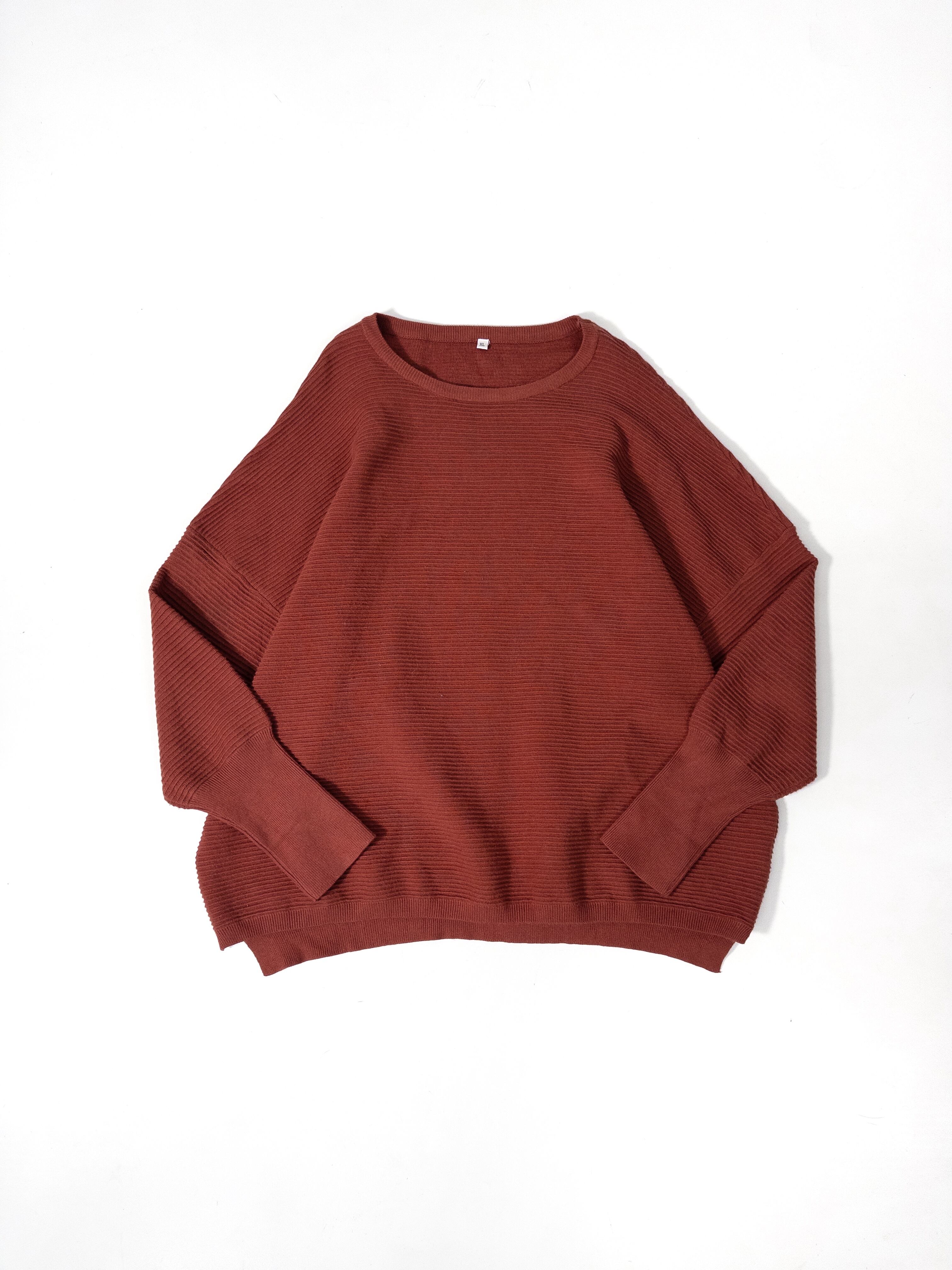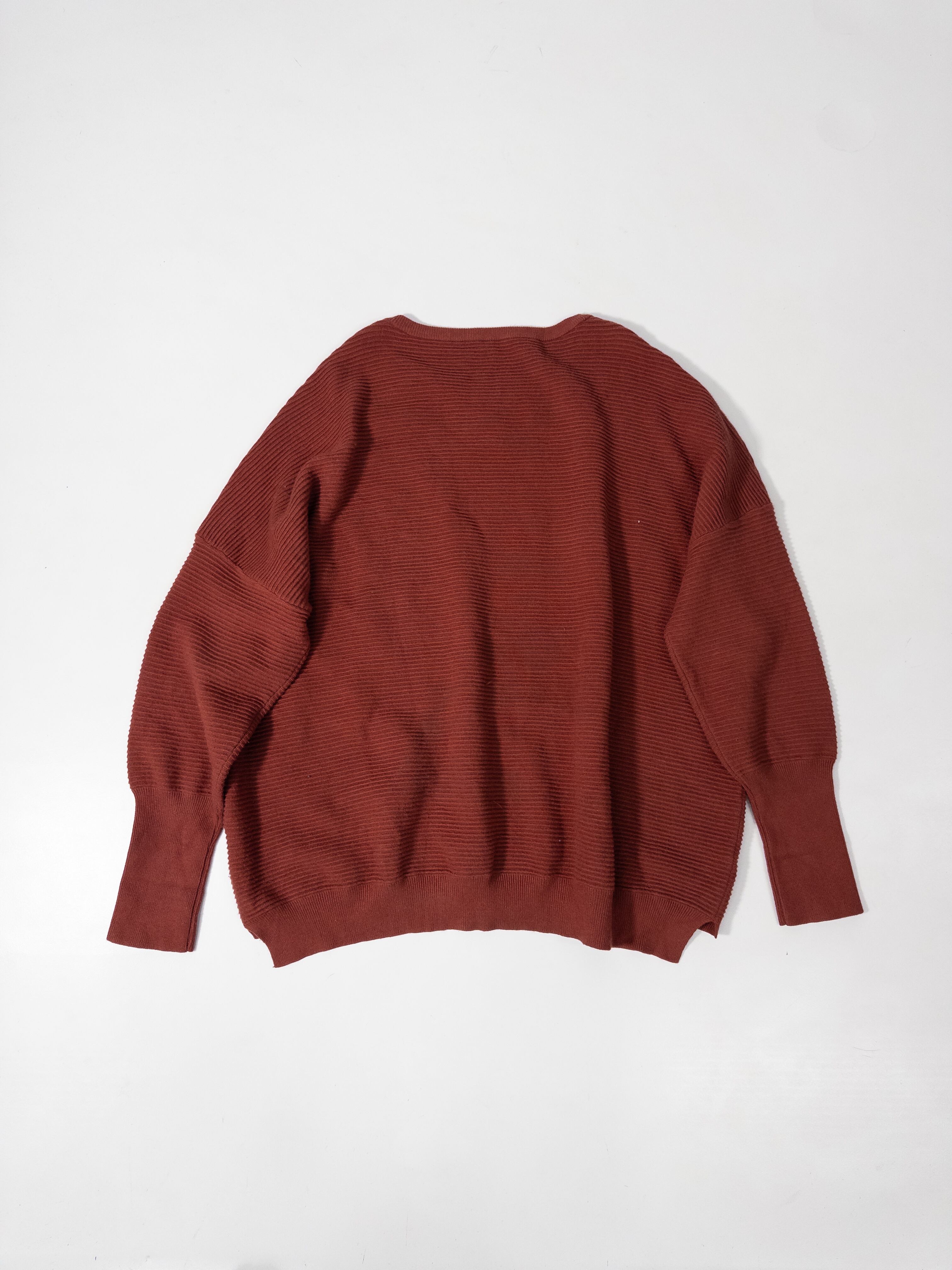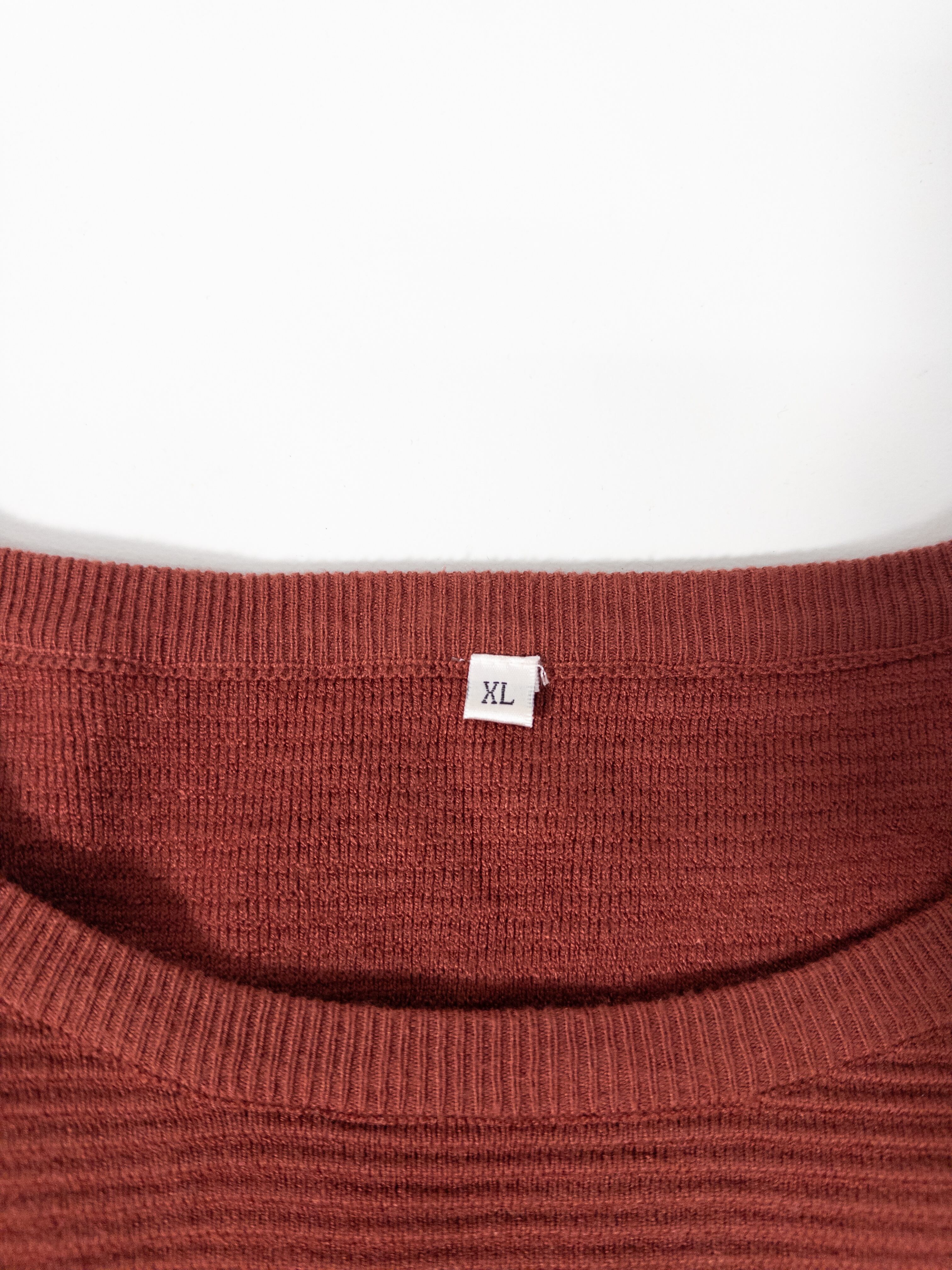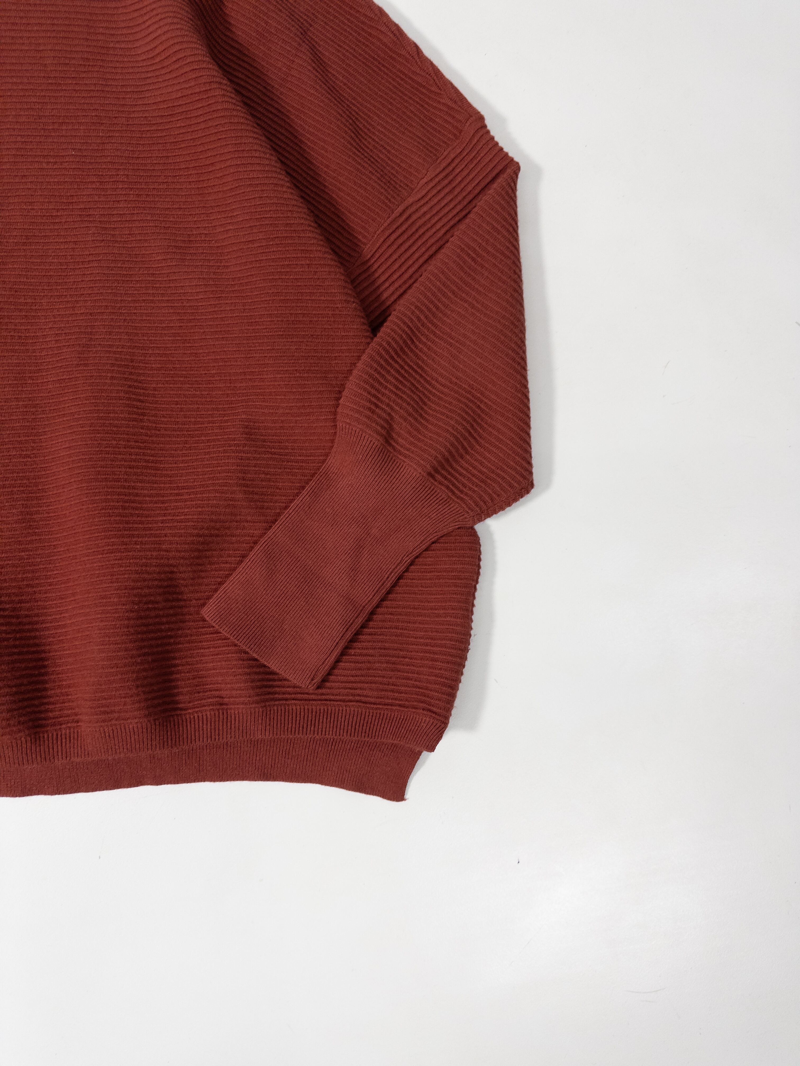 くすみオレンジのリブニットプルオーバー。