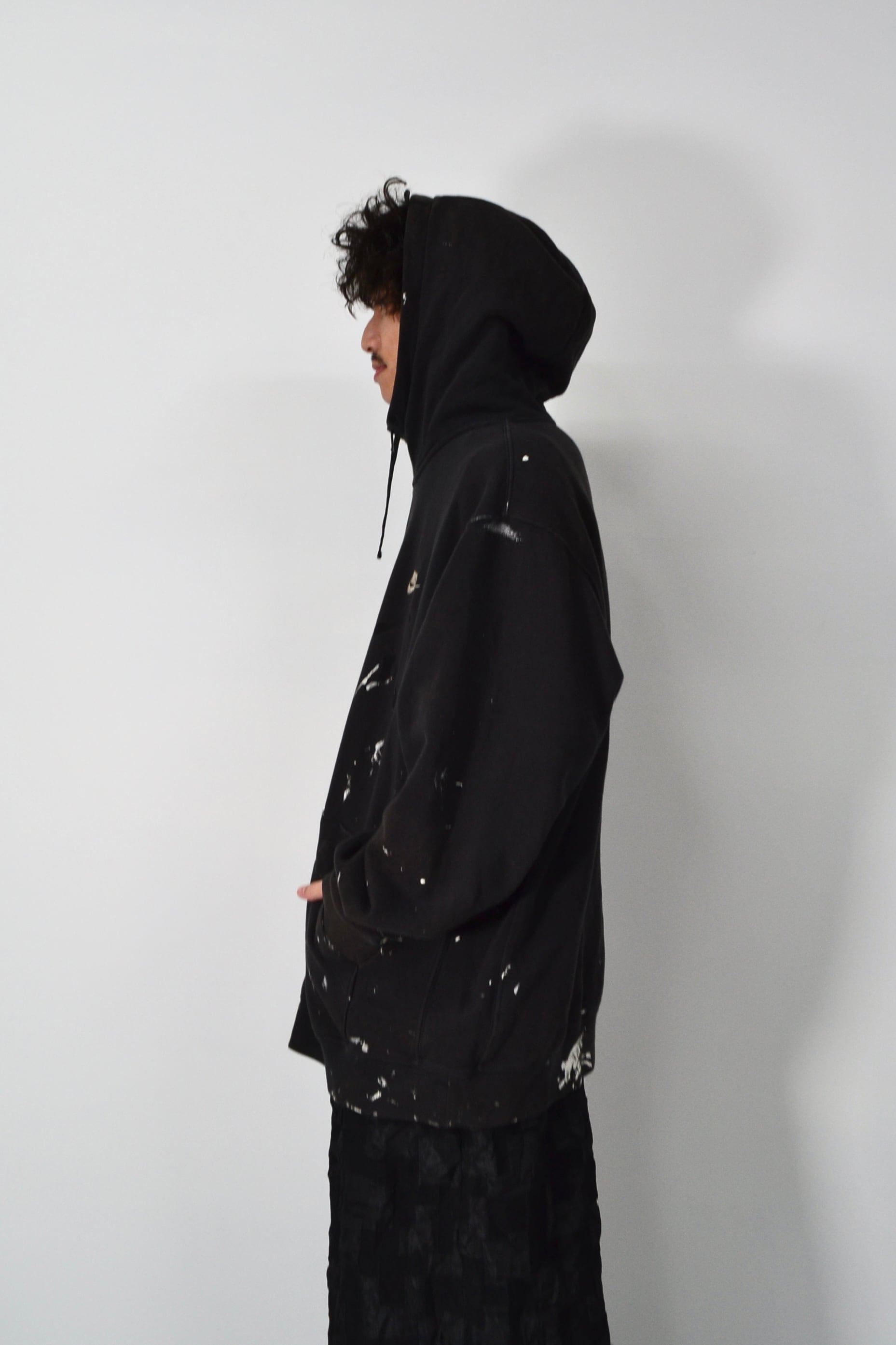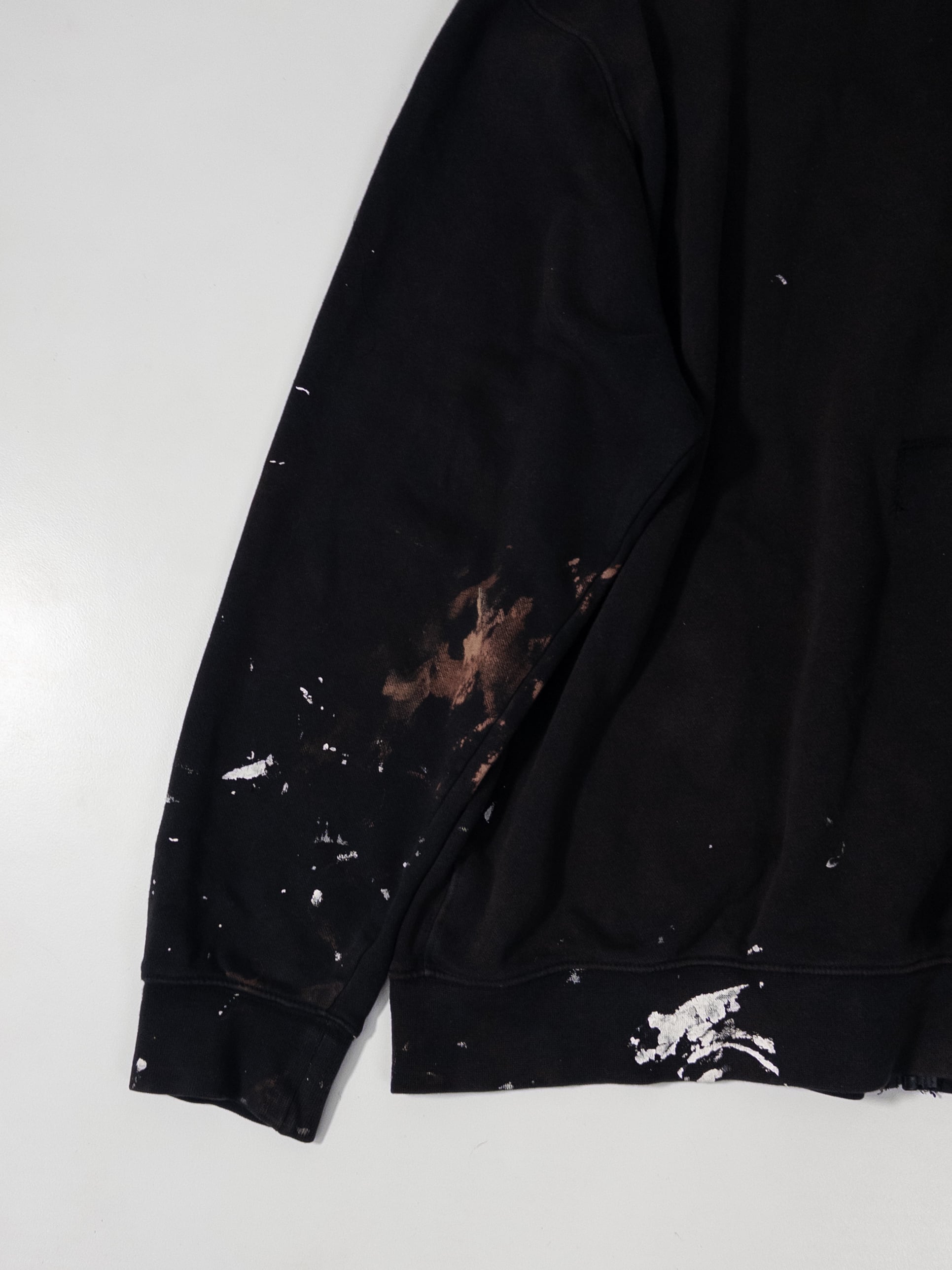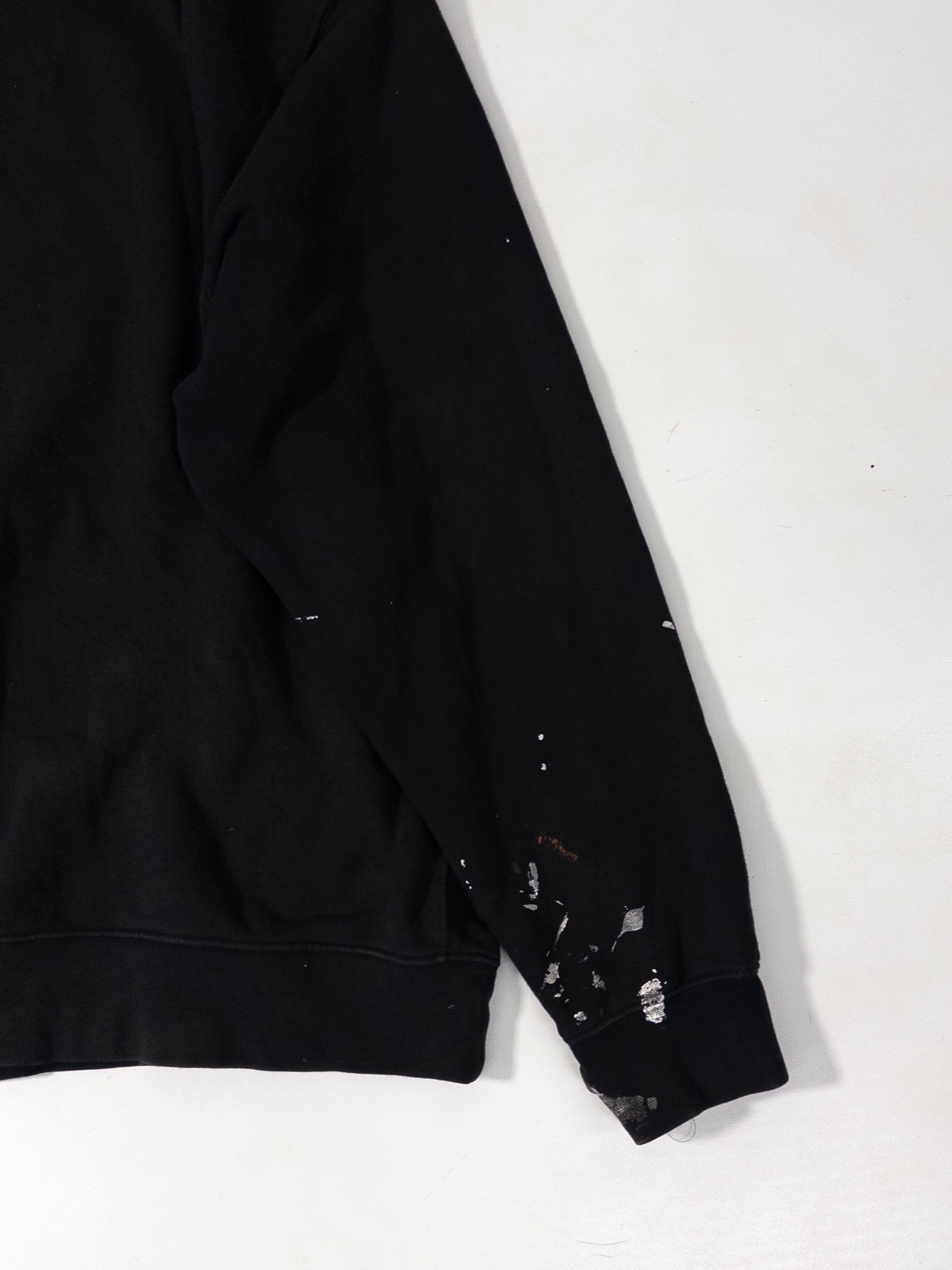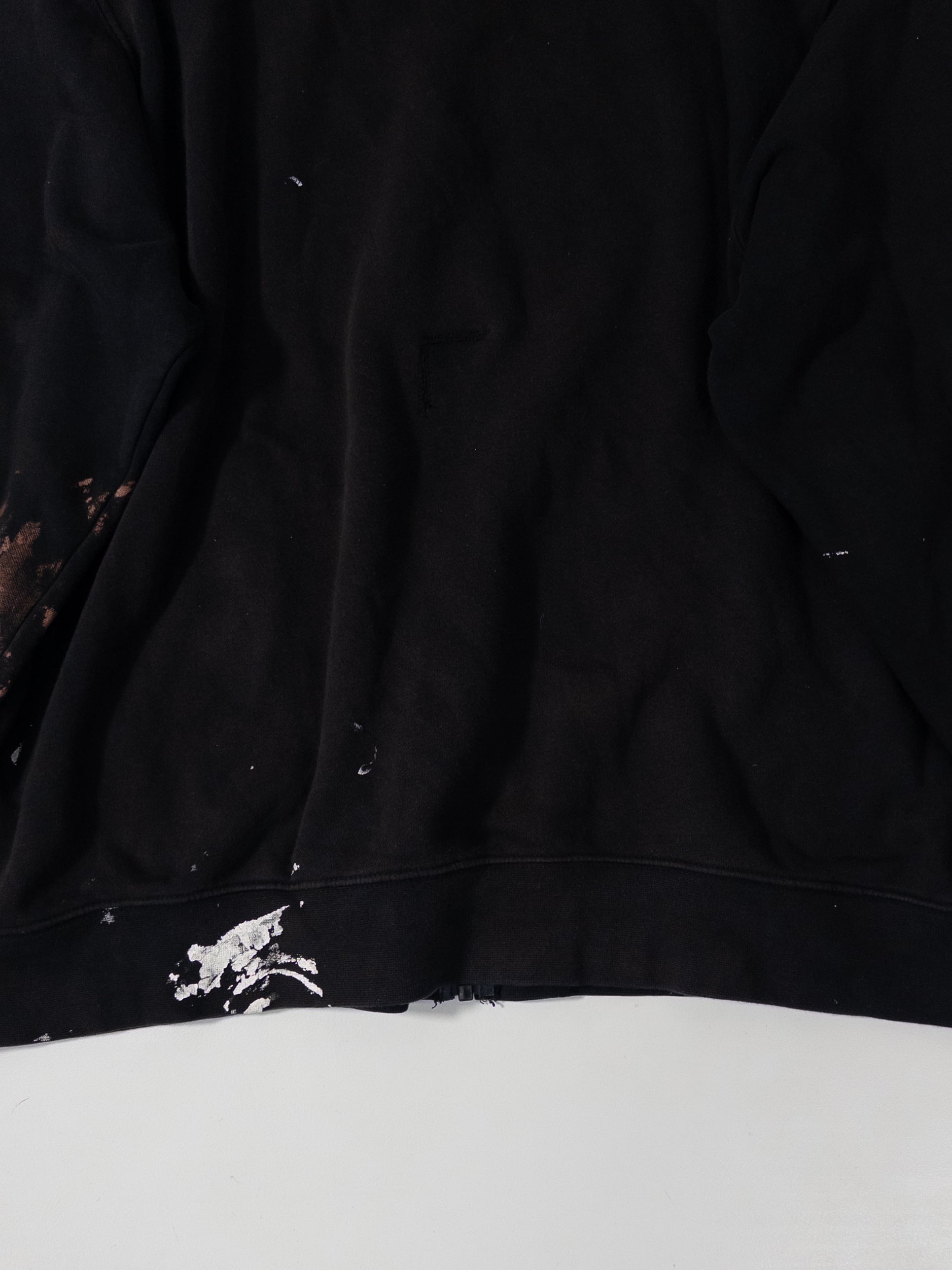 胸のワンポイントスウッシュだけのミニマルなベースに、作業痕のような白ペイントと、袖にうっすら残るブラウン系の色移り。