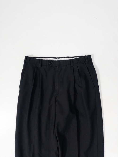 腰まわりは2タックでしっかり余白があって、太ももから裾にかけてストンと落ちるストレート寄りのライン。変にテーパードしてないから、今の気分のルーズトップスとも相性いいし、逆にシャツ合わせてもキメすぎないバランスです。