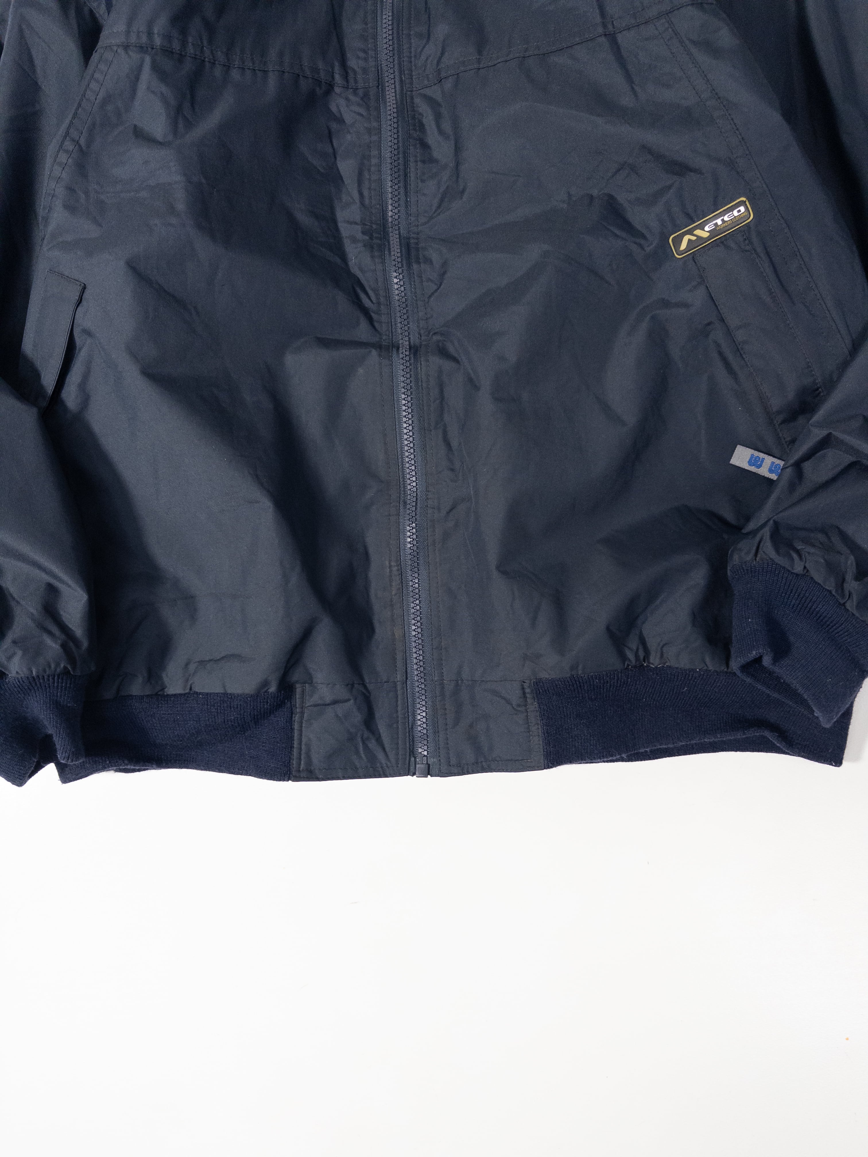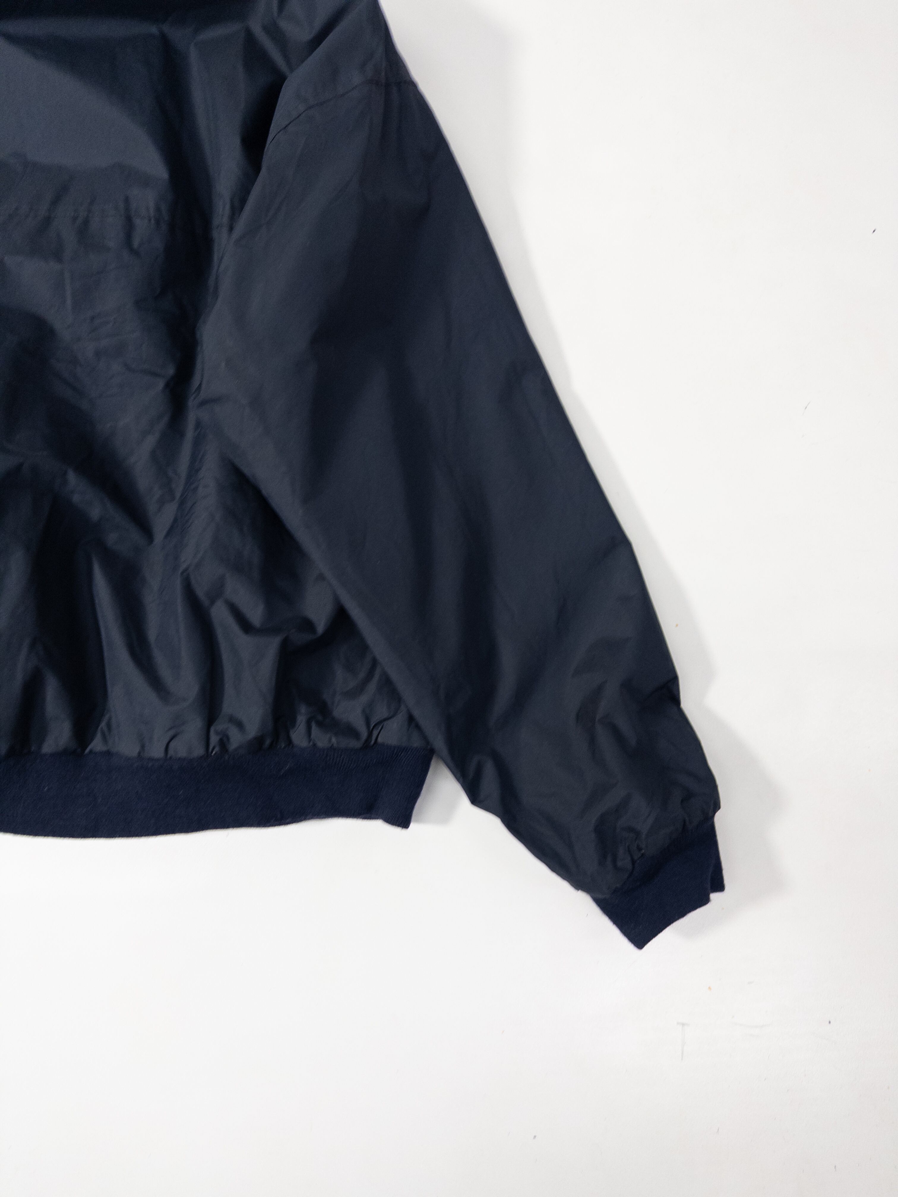 ネイビーのナイロンシェルに、内側はたっぷりフリース。