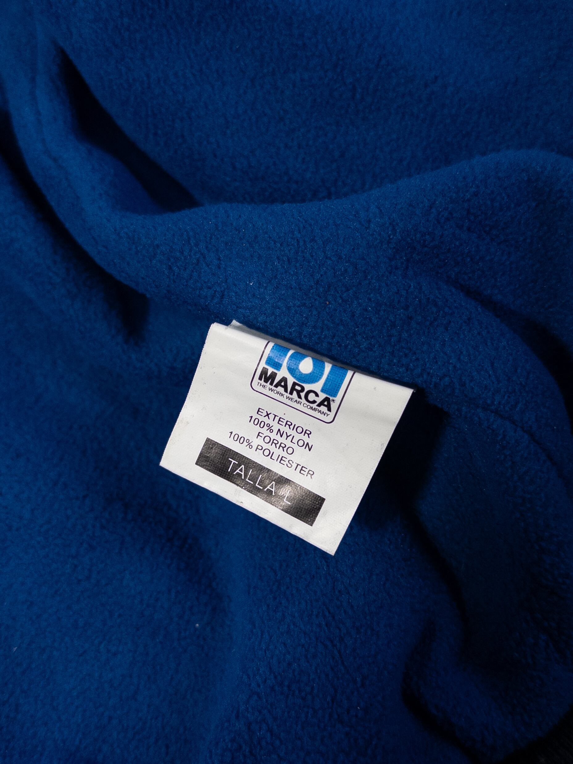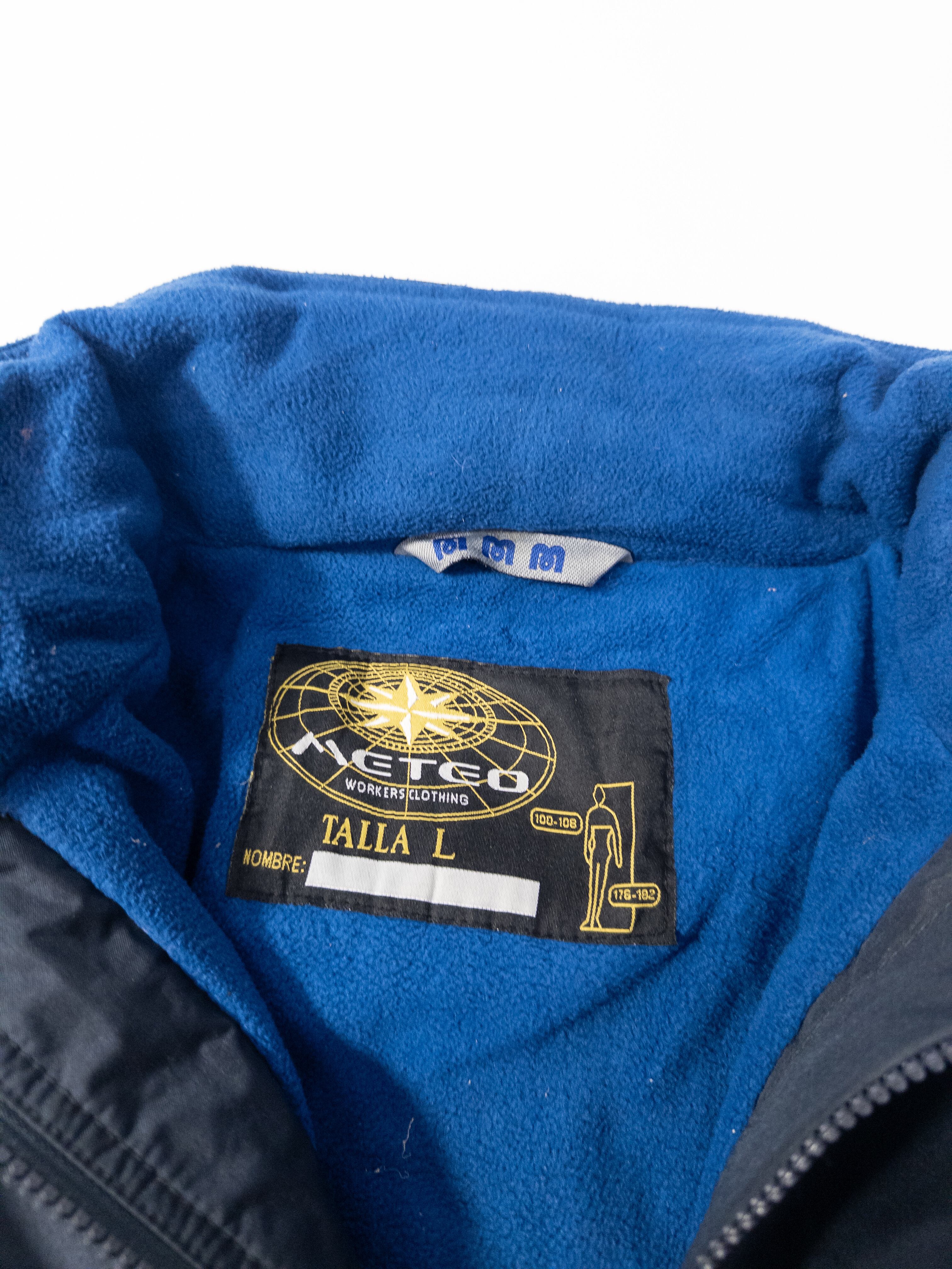 外はシャリっと軽いワークウェア寄りのナイロン、内側は毛足の短いブルーのフリースという組み合わせ。