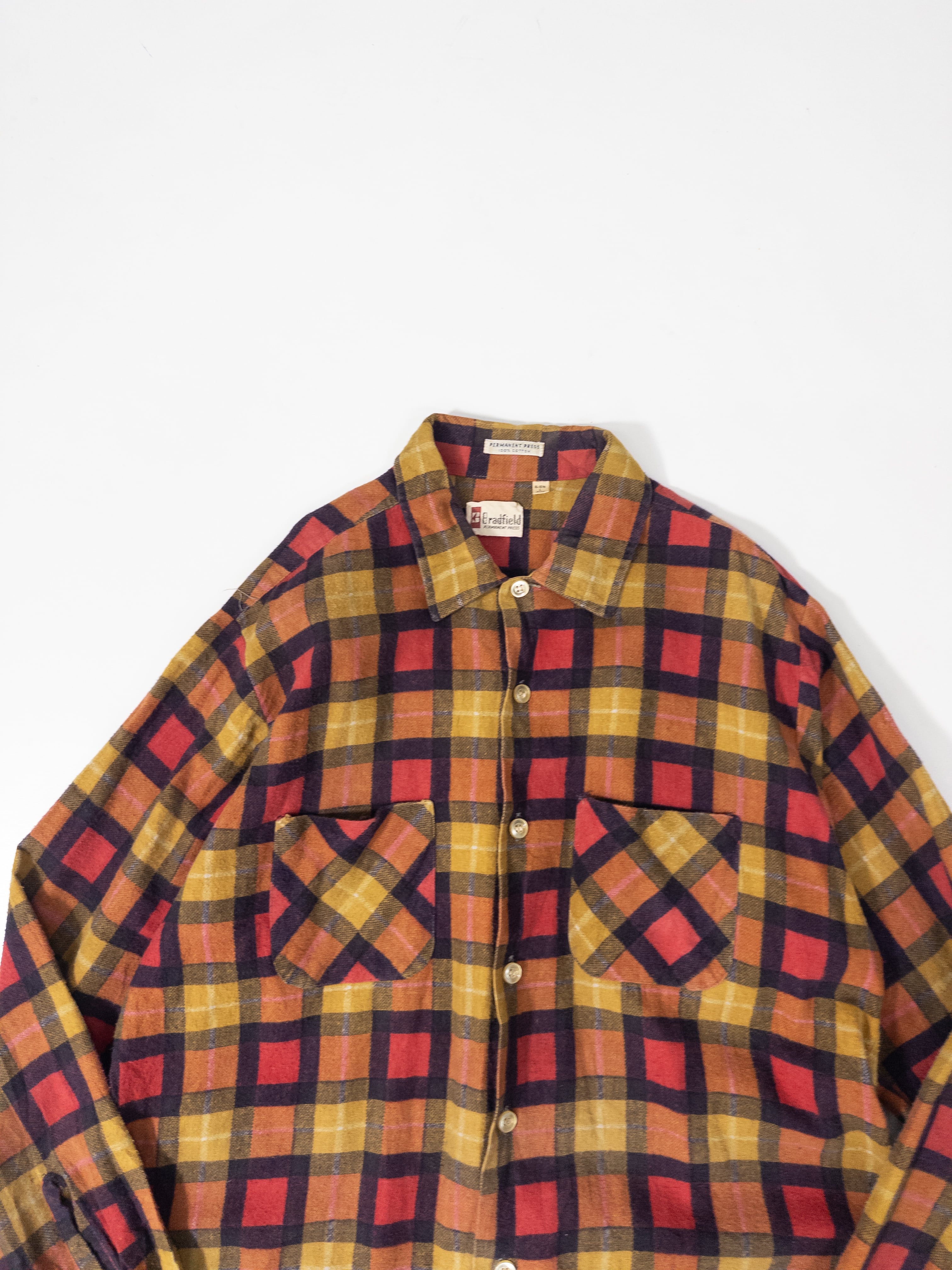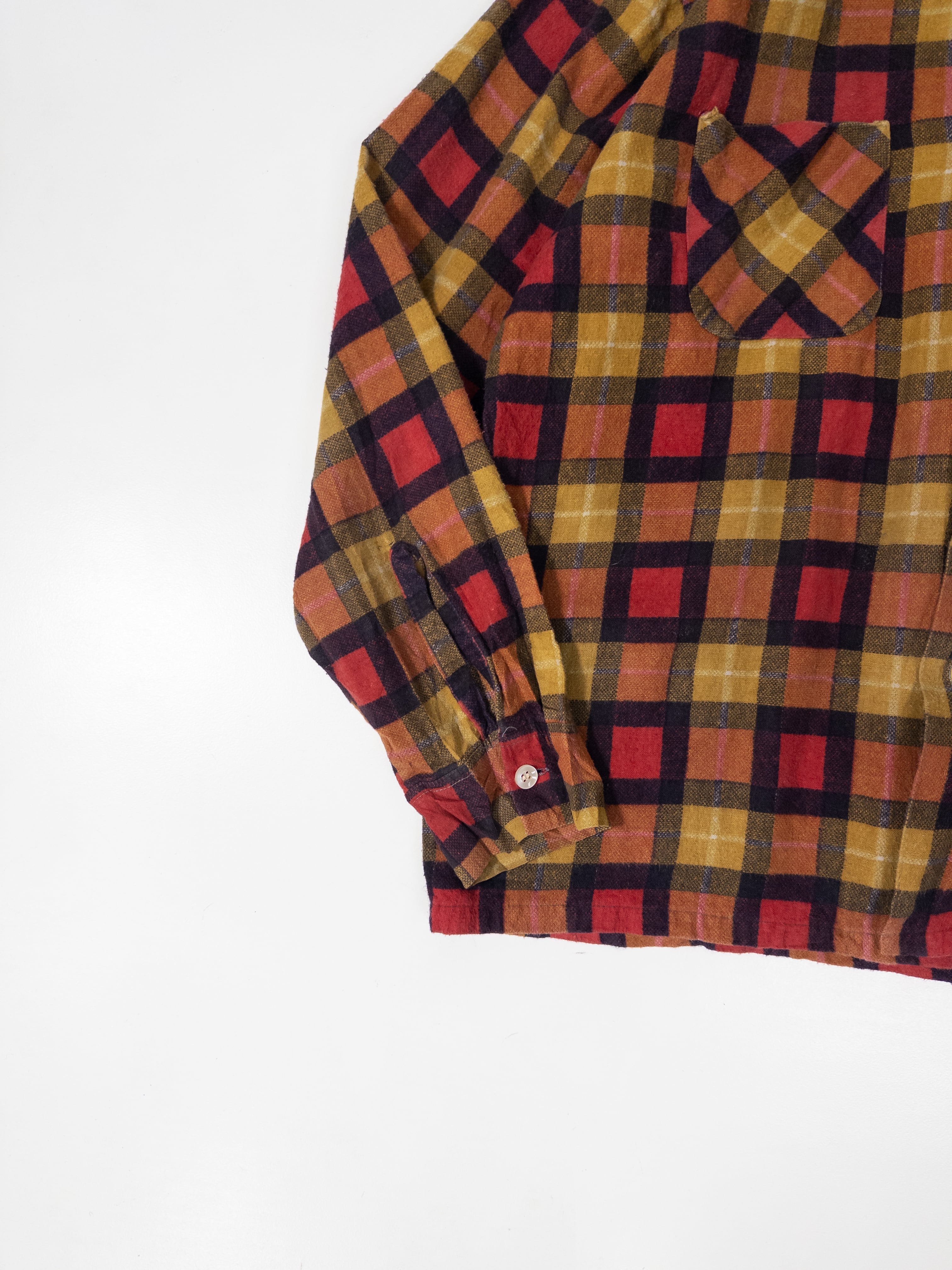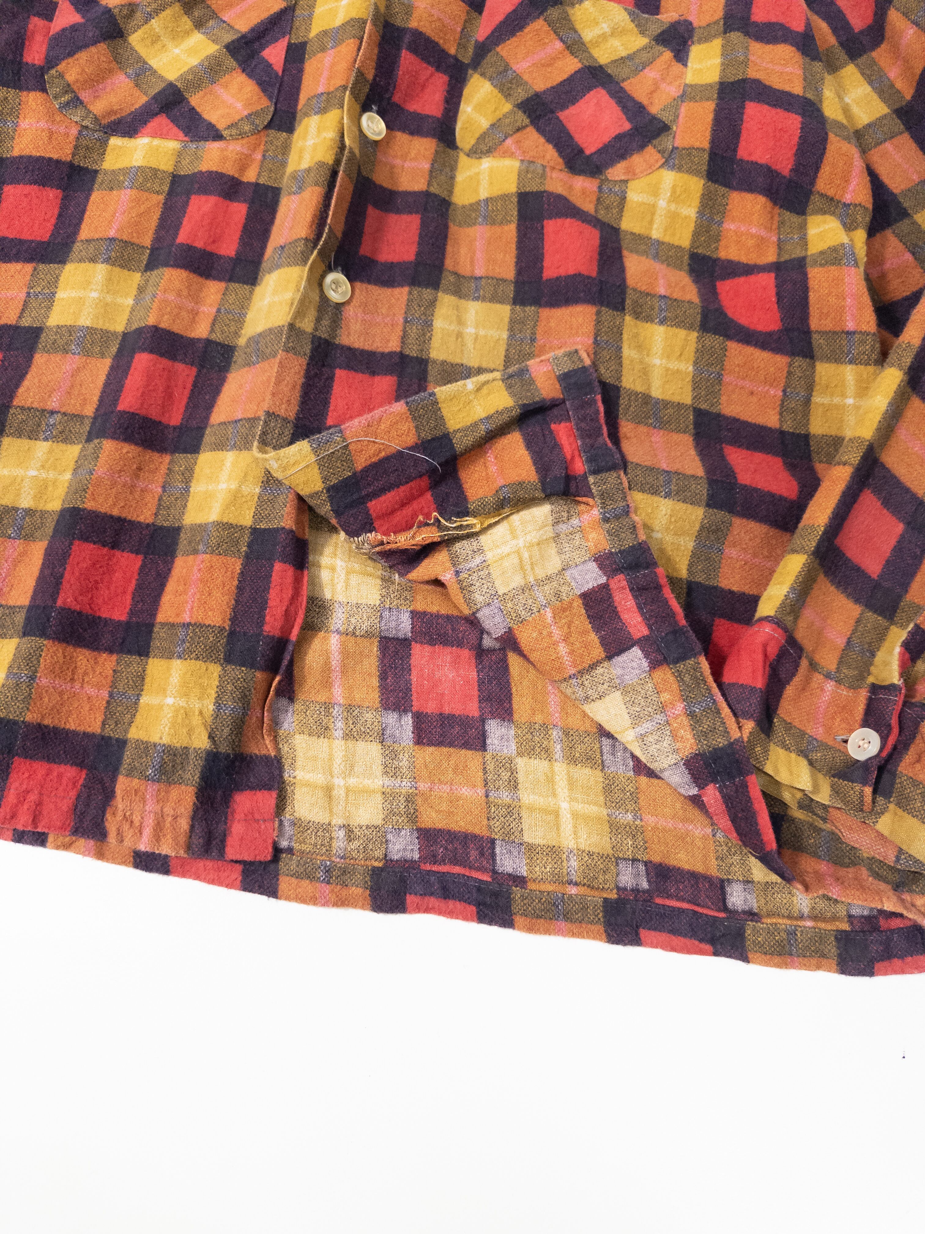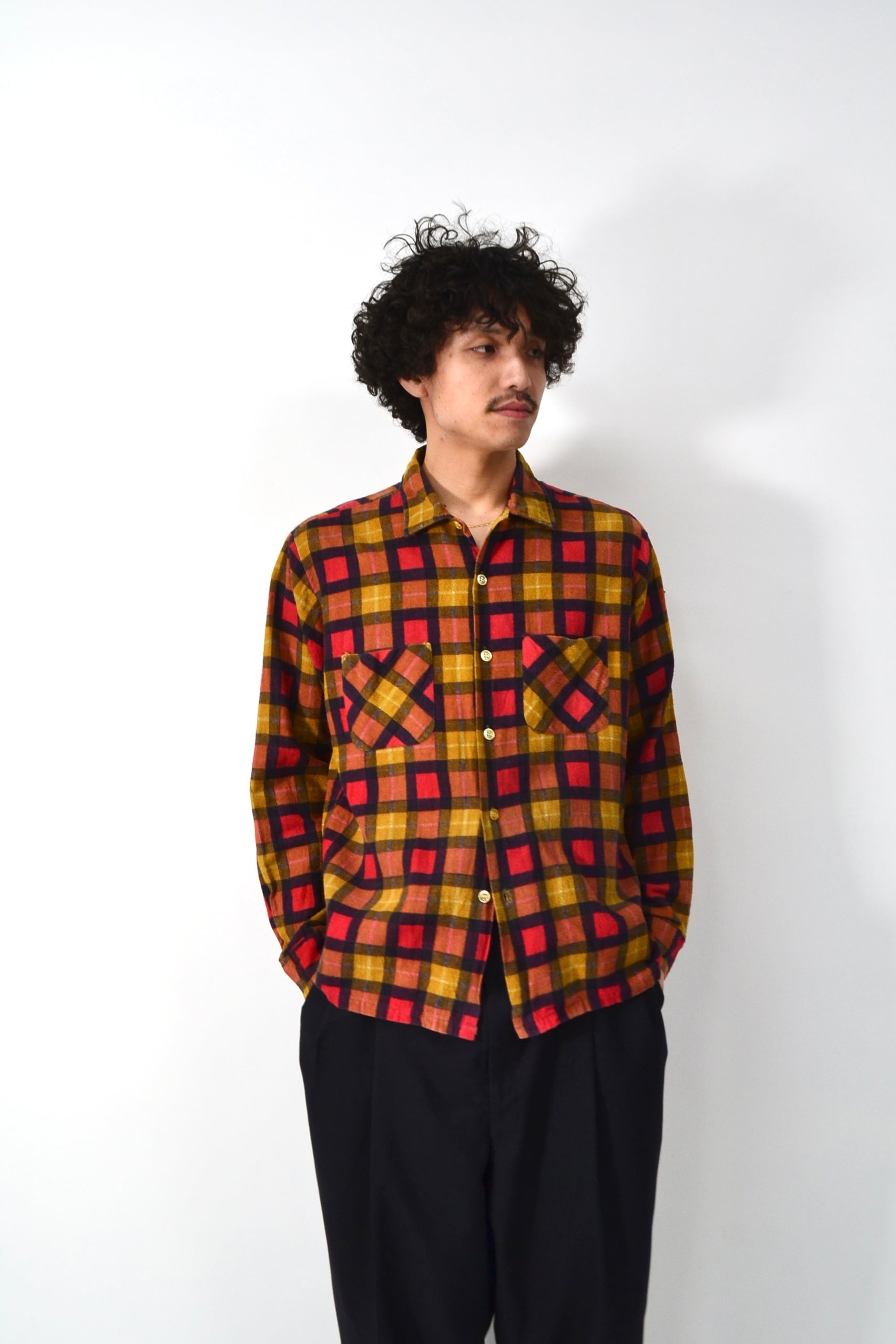 60s~70s Check pattern print nel shirt