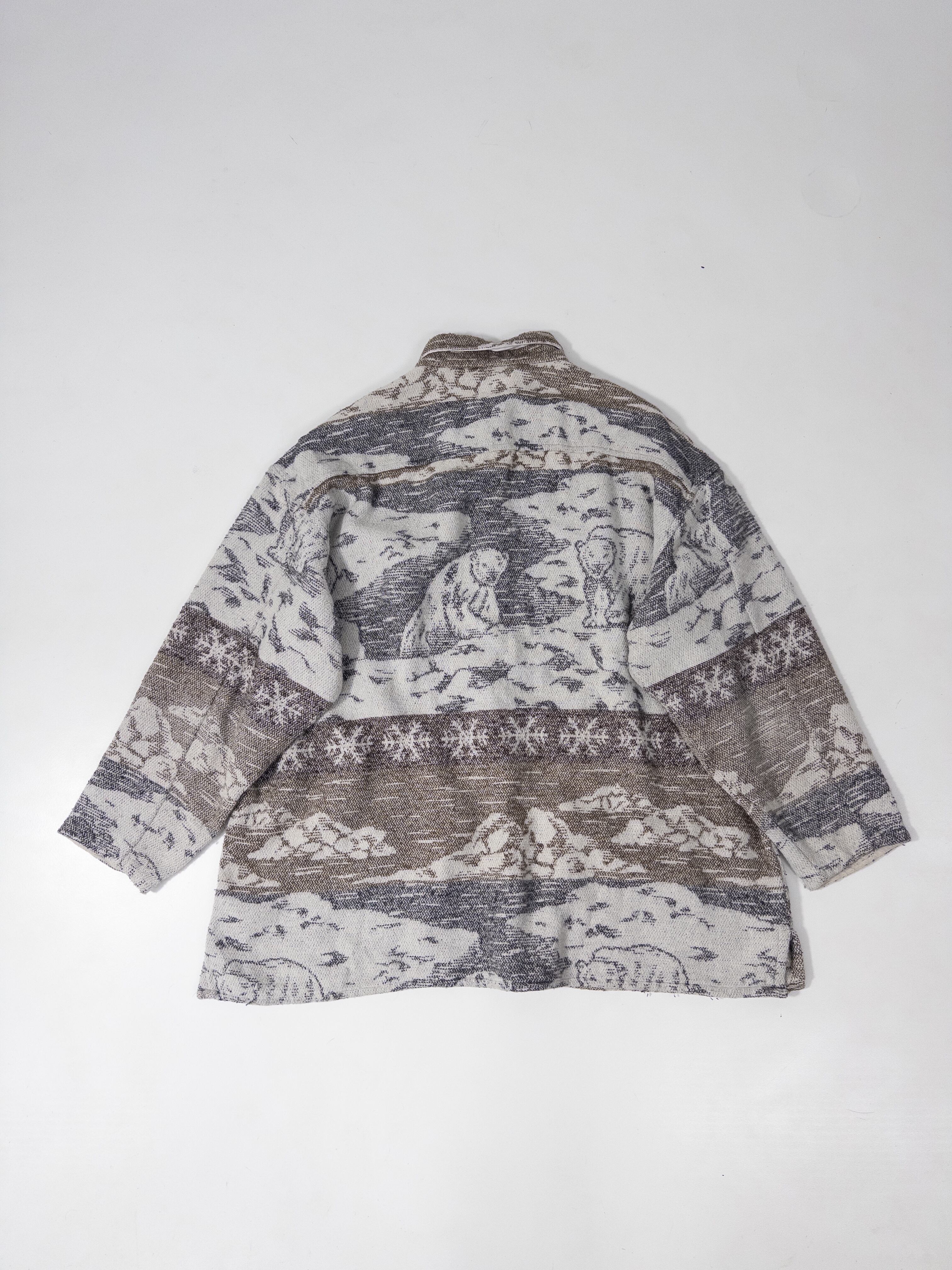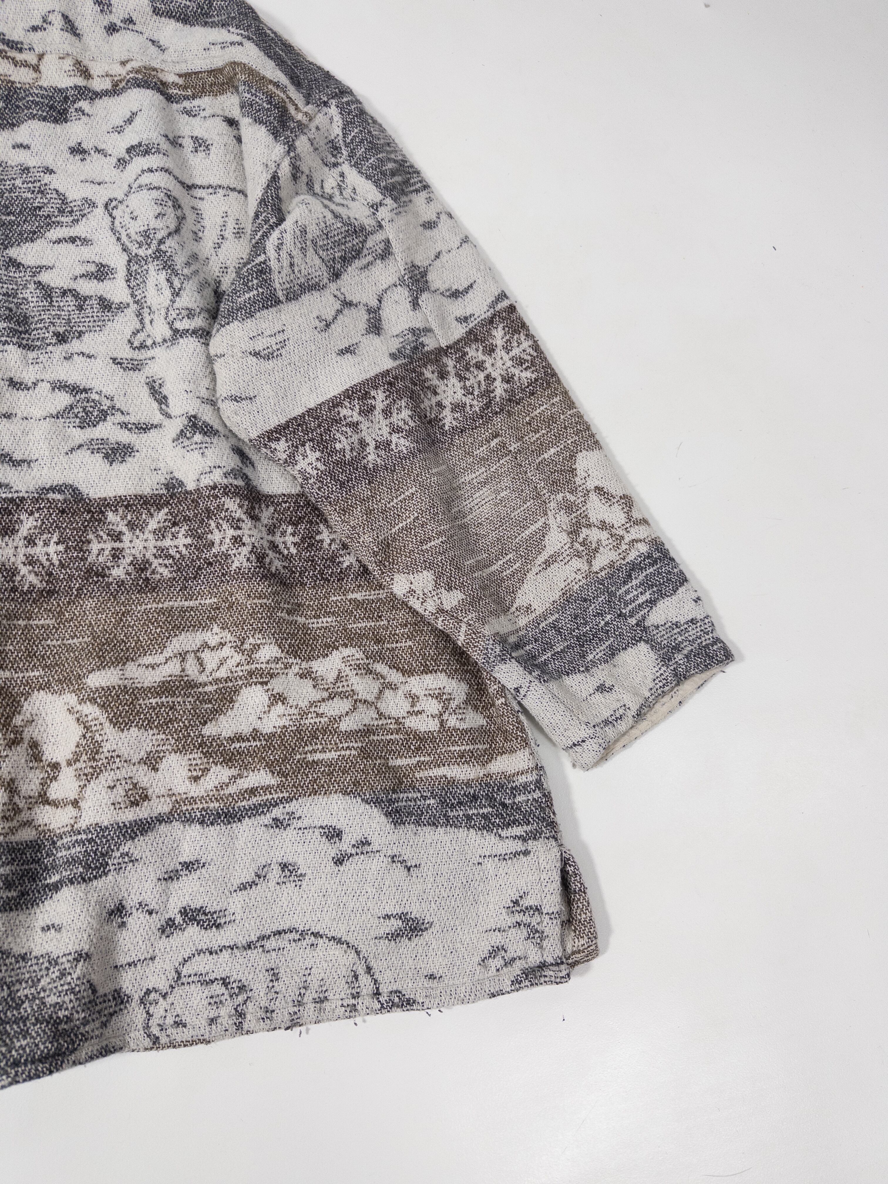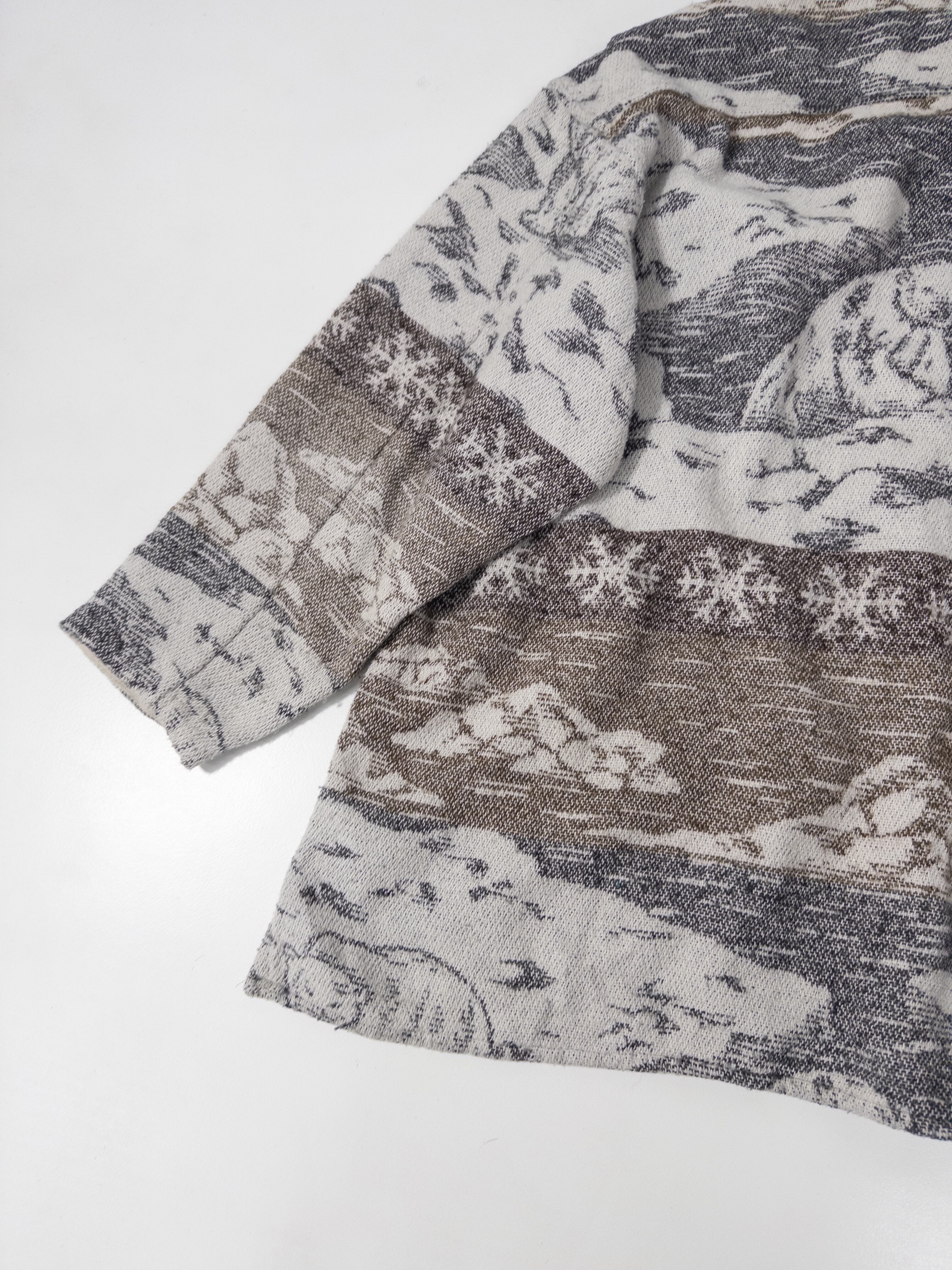 山や湖、動物まで入り込んだグラフィックだけど、配色がベージュ〜グレー〜ブラウンのニュートラル寄りなので、不思議と派手さはなくて、ちゃんと日常に落とし込めるバランスです。