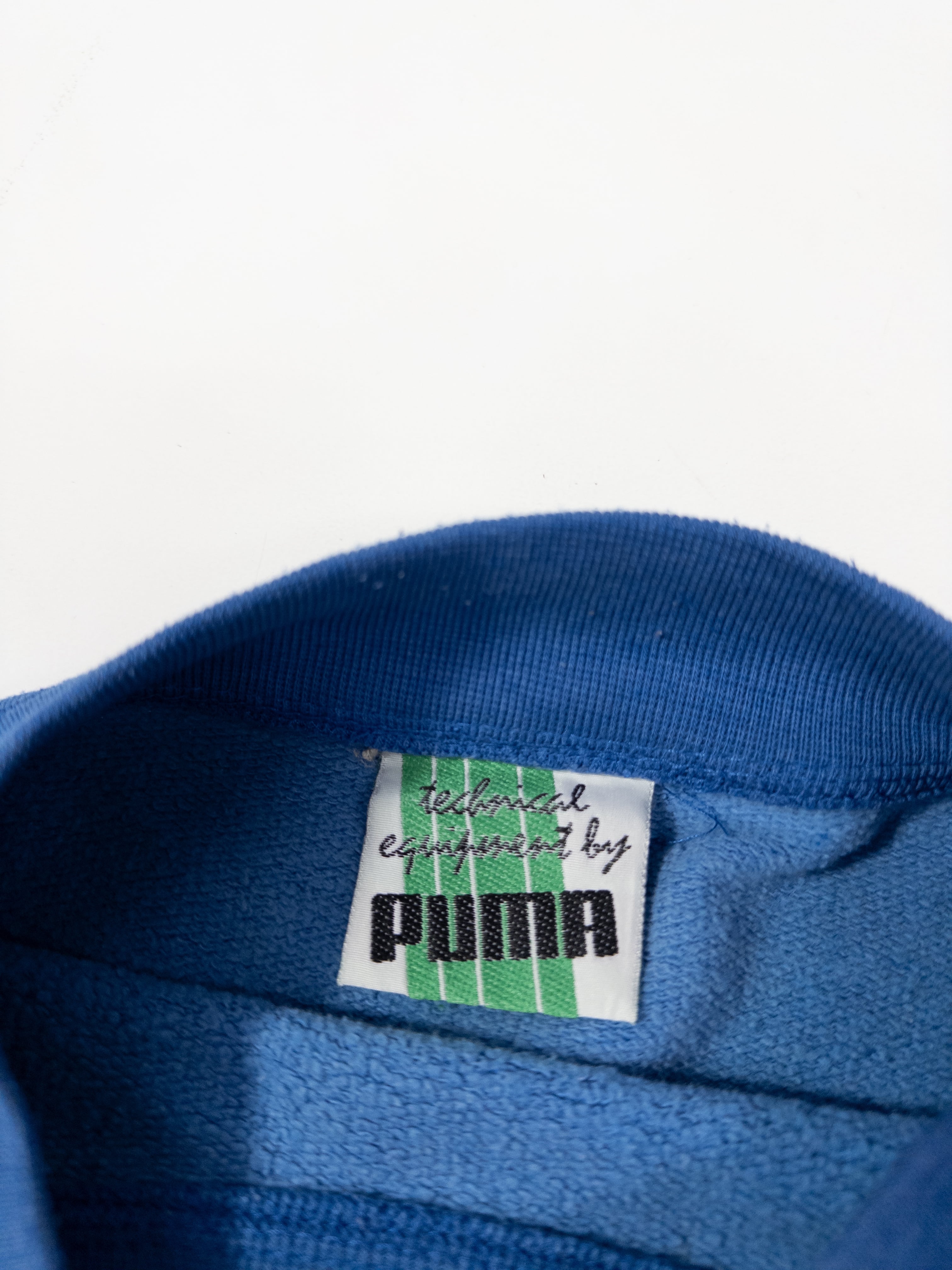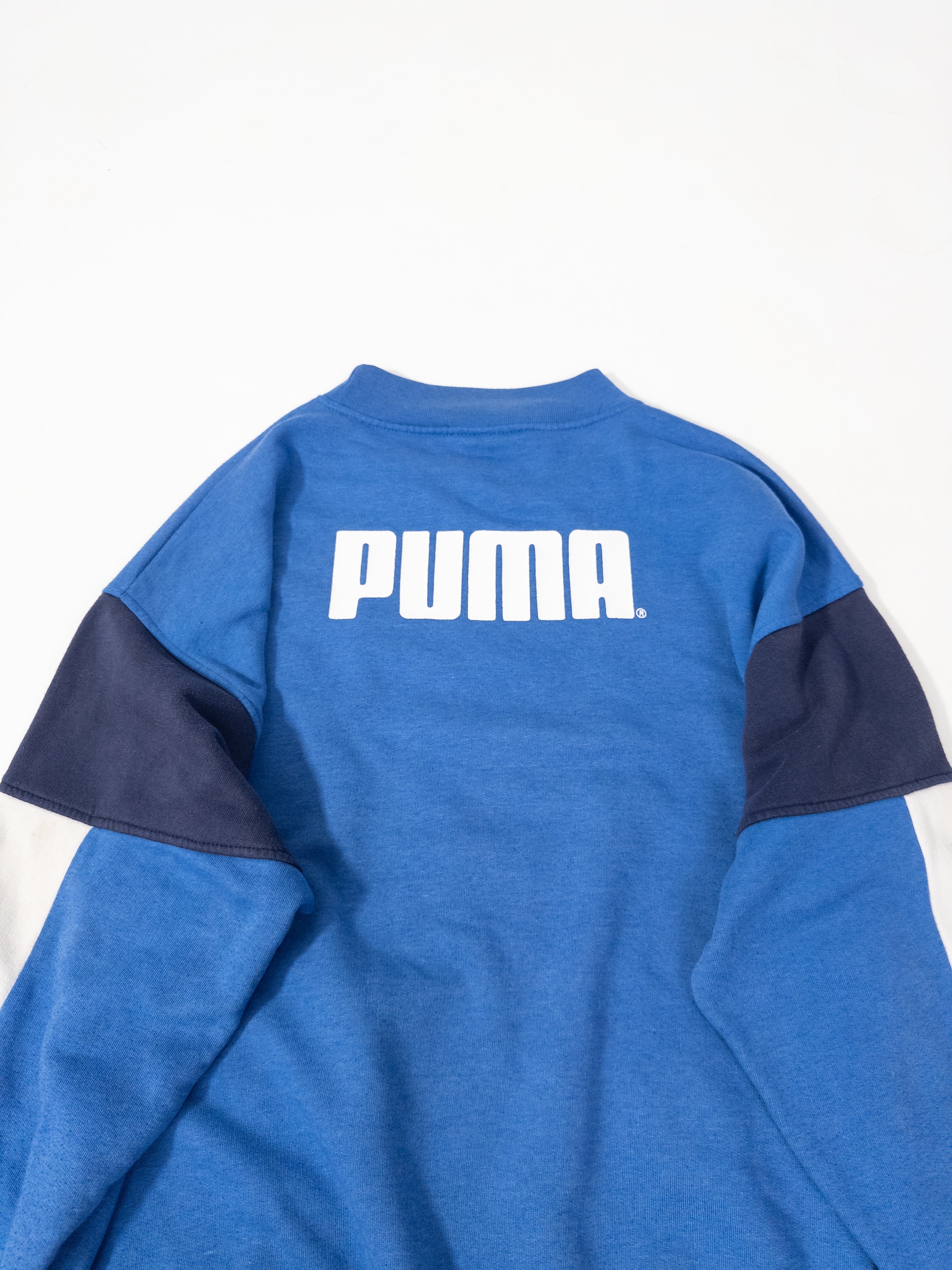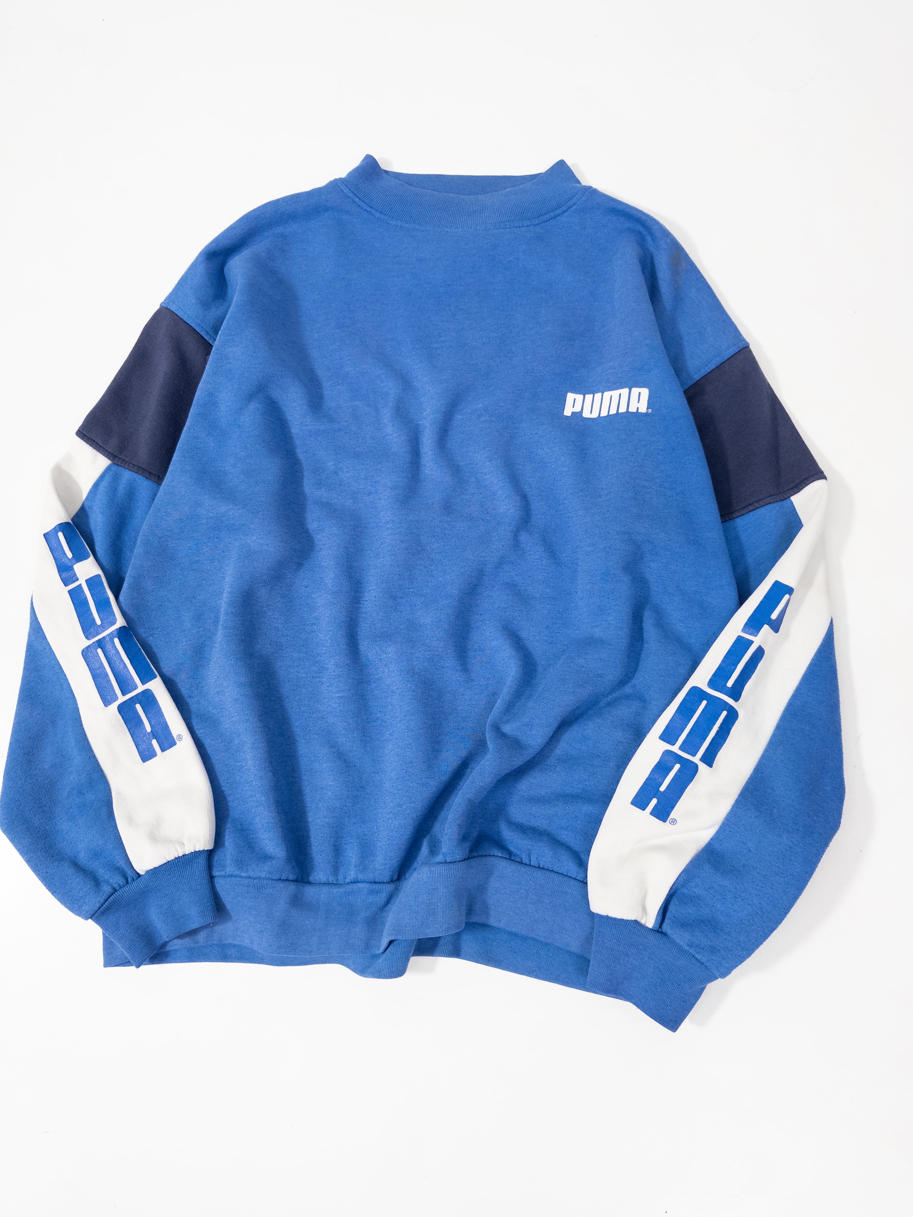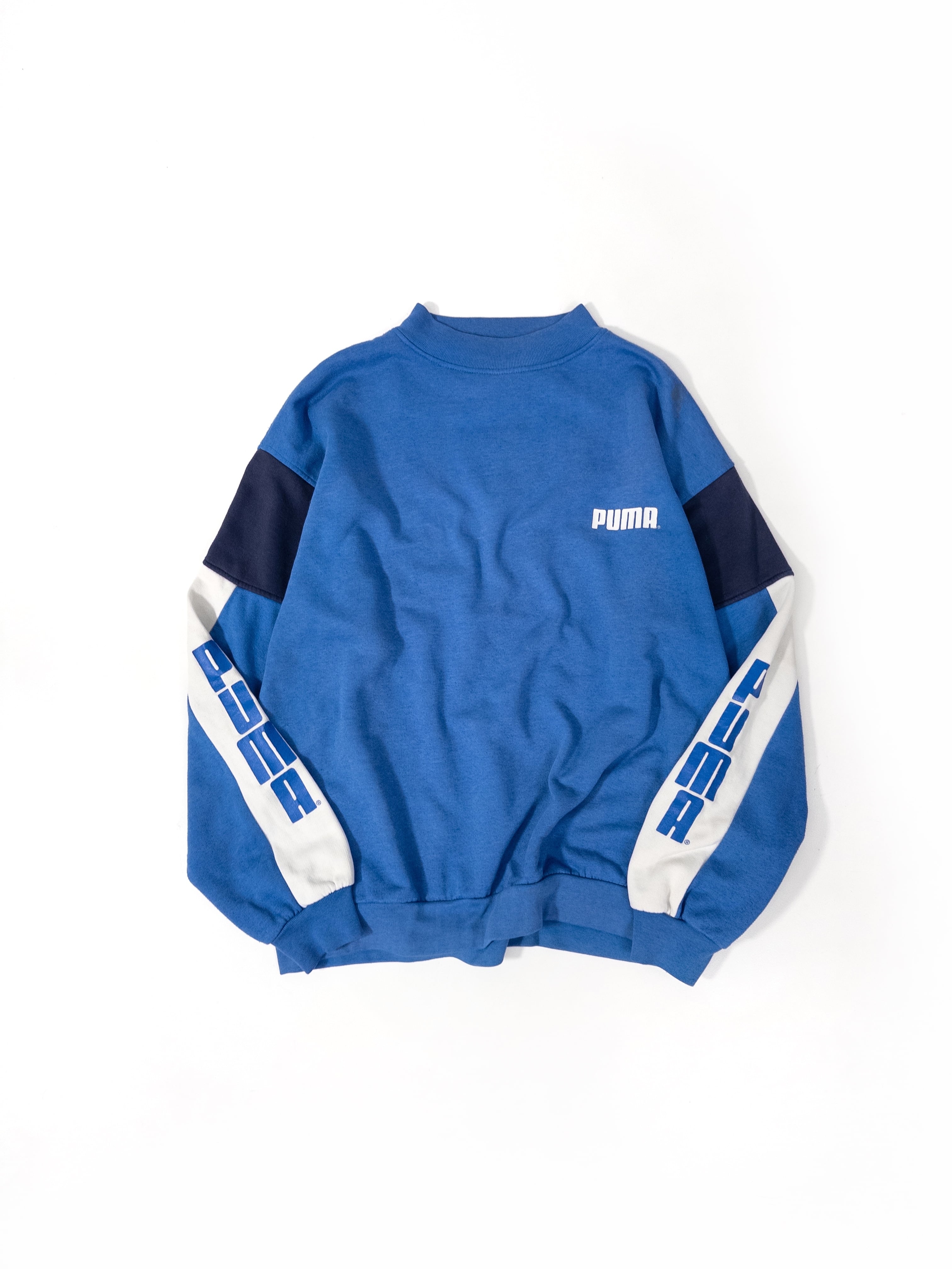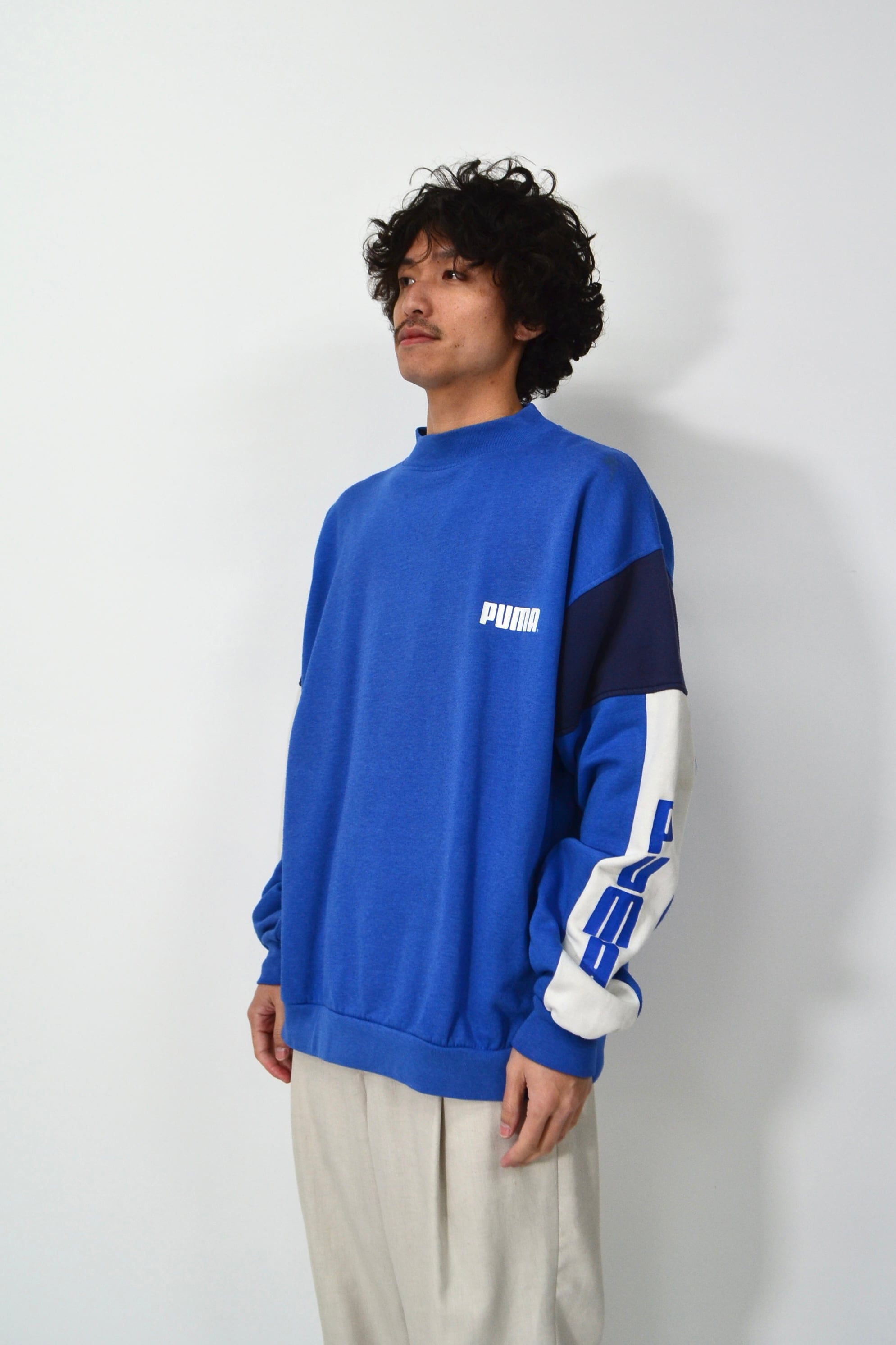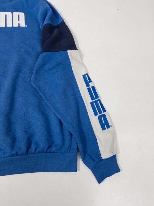 発色のいいブルーに、PUMAのロゴをしっかり効かせたスウェット。