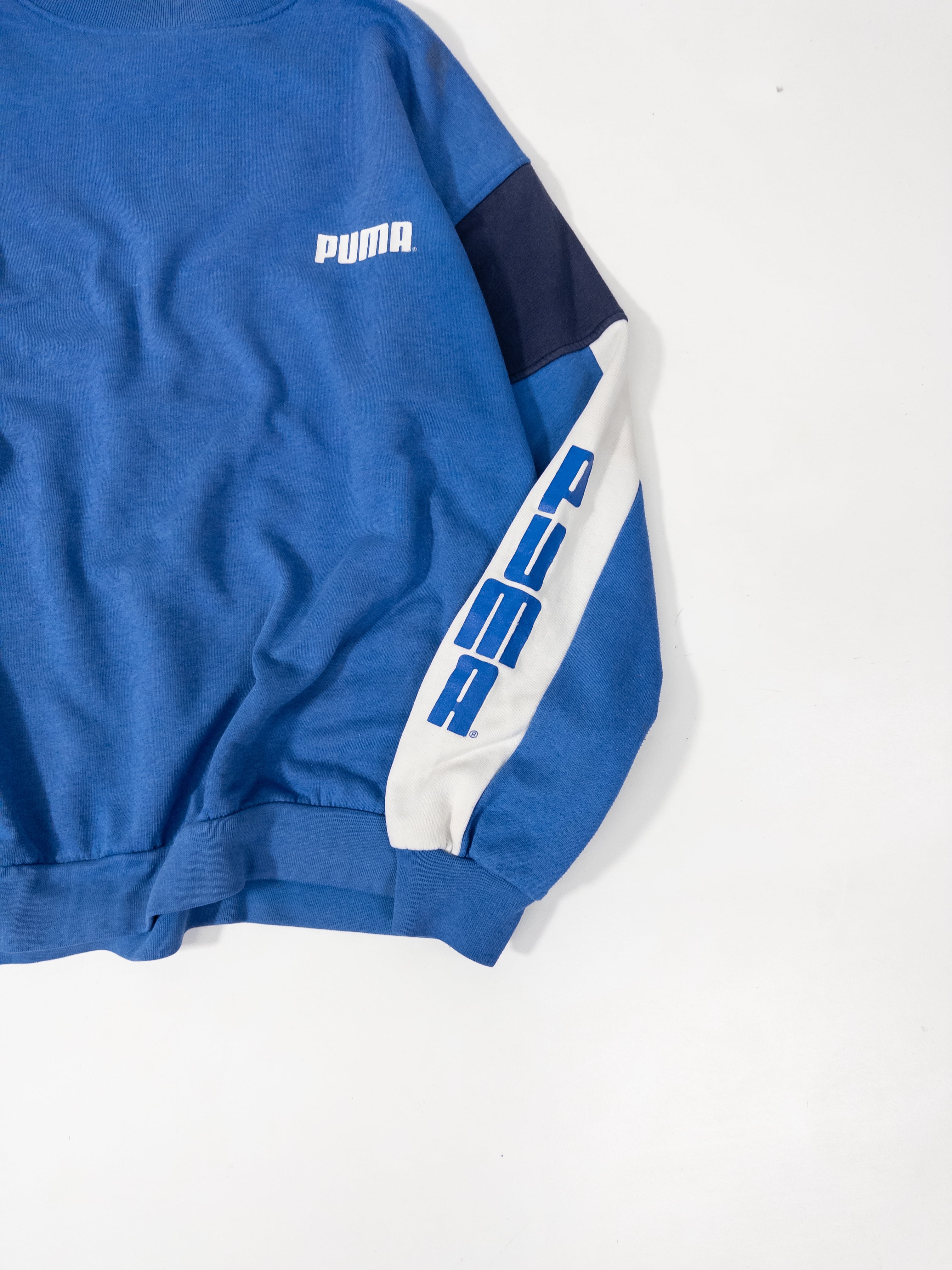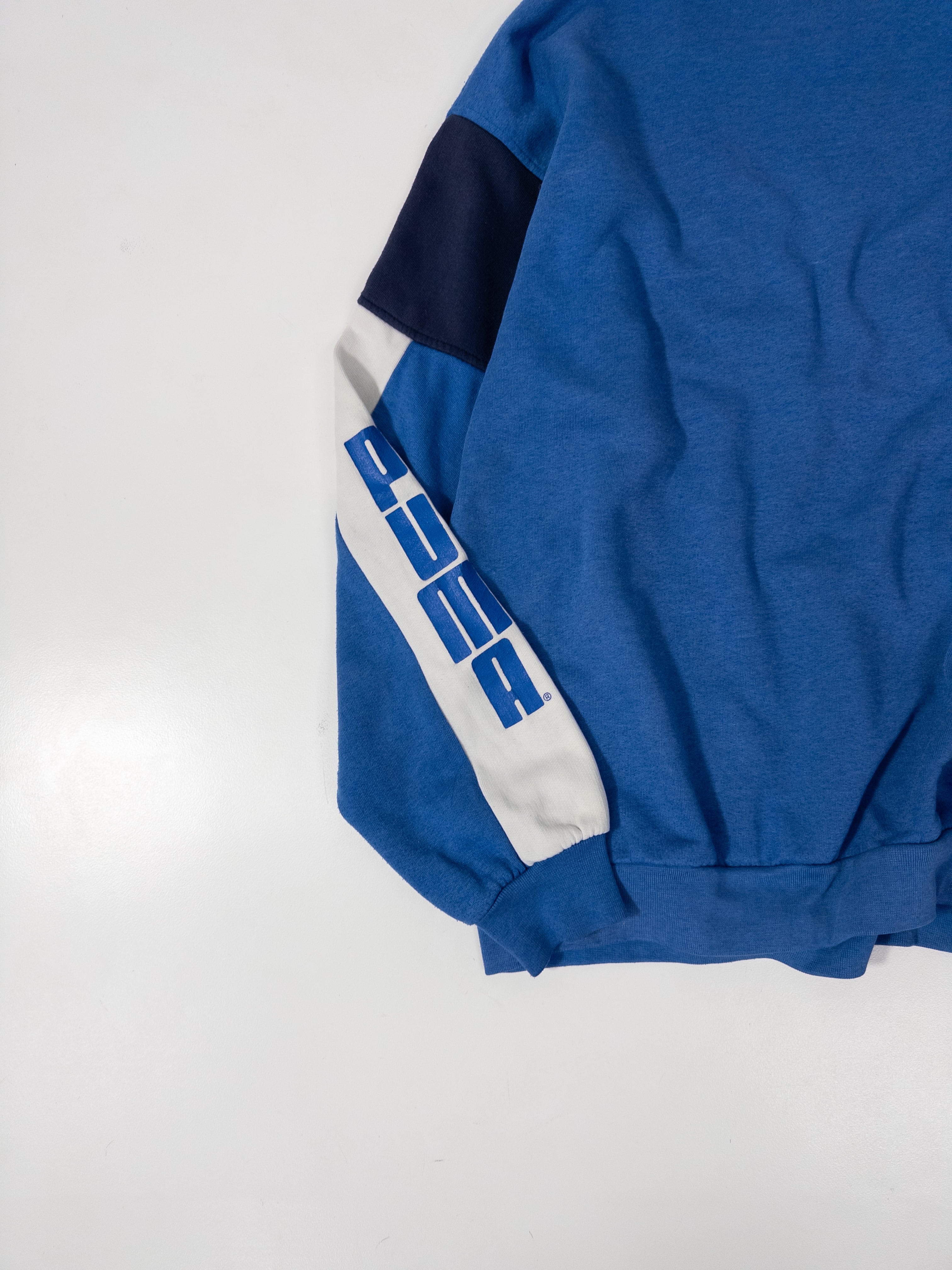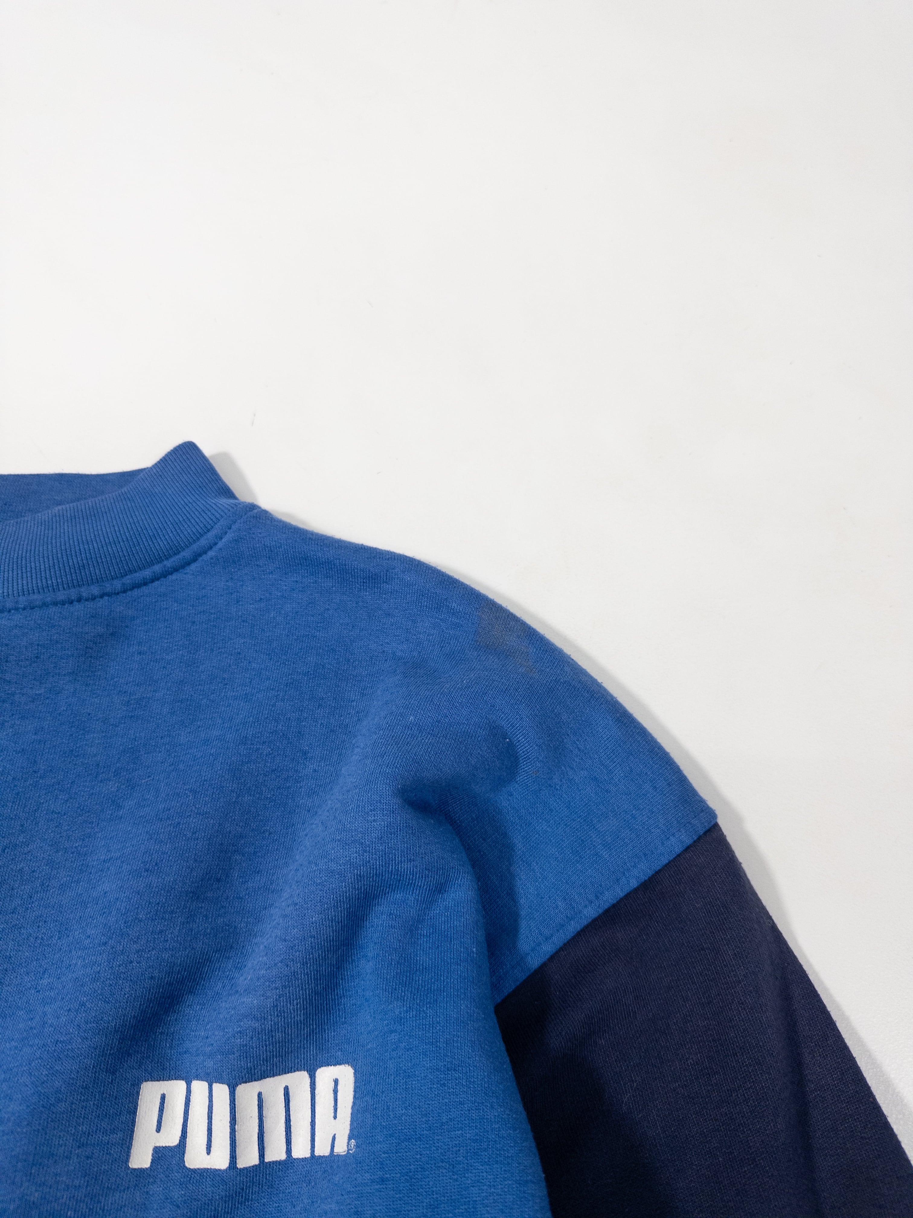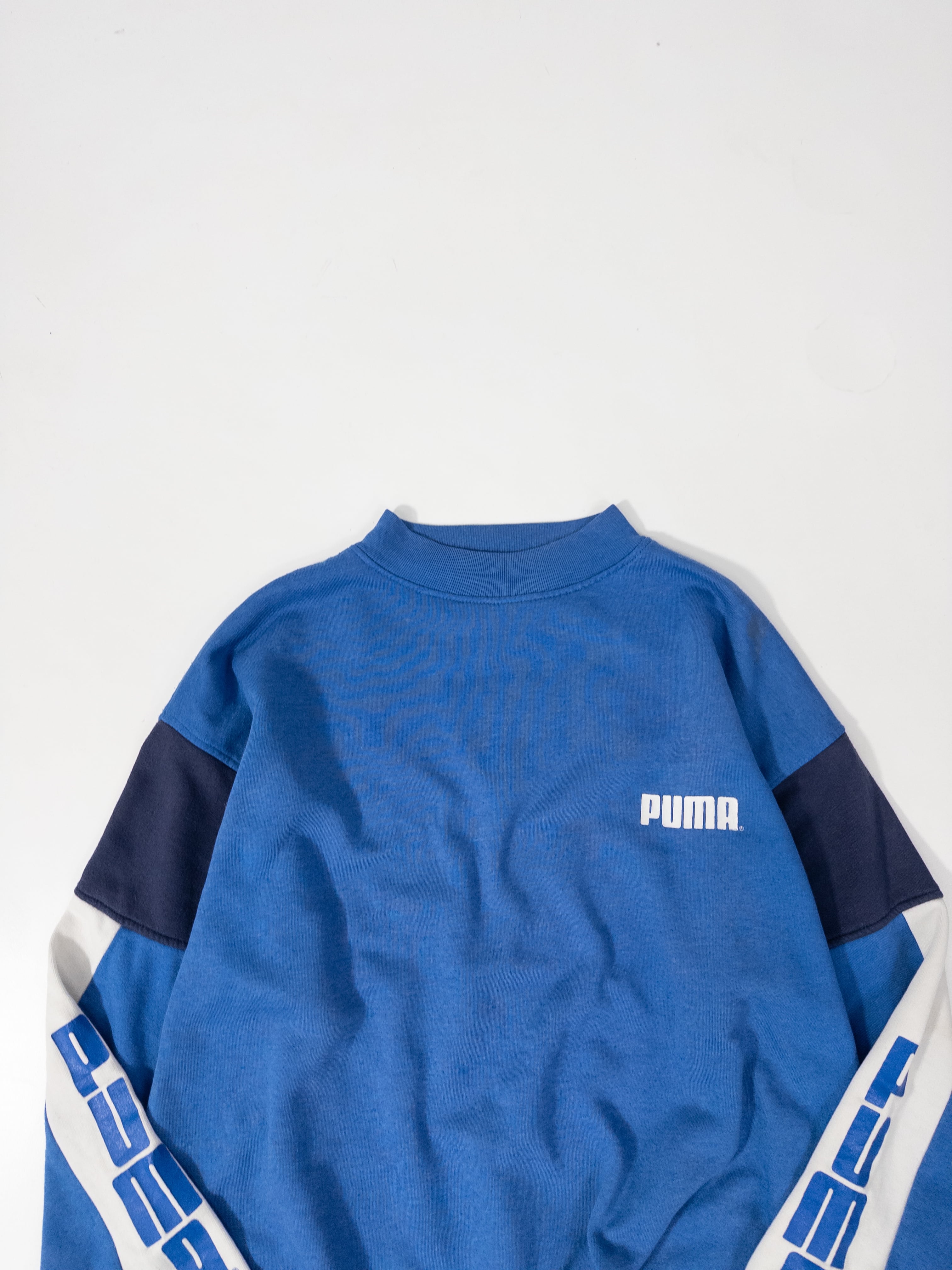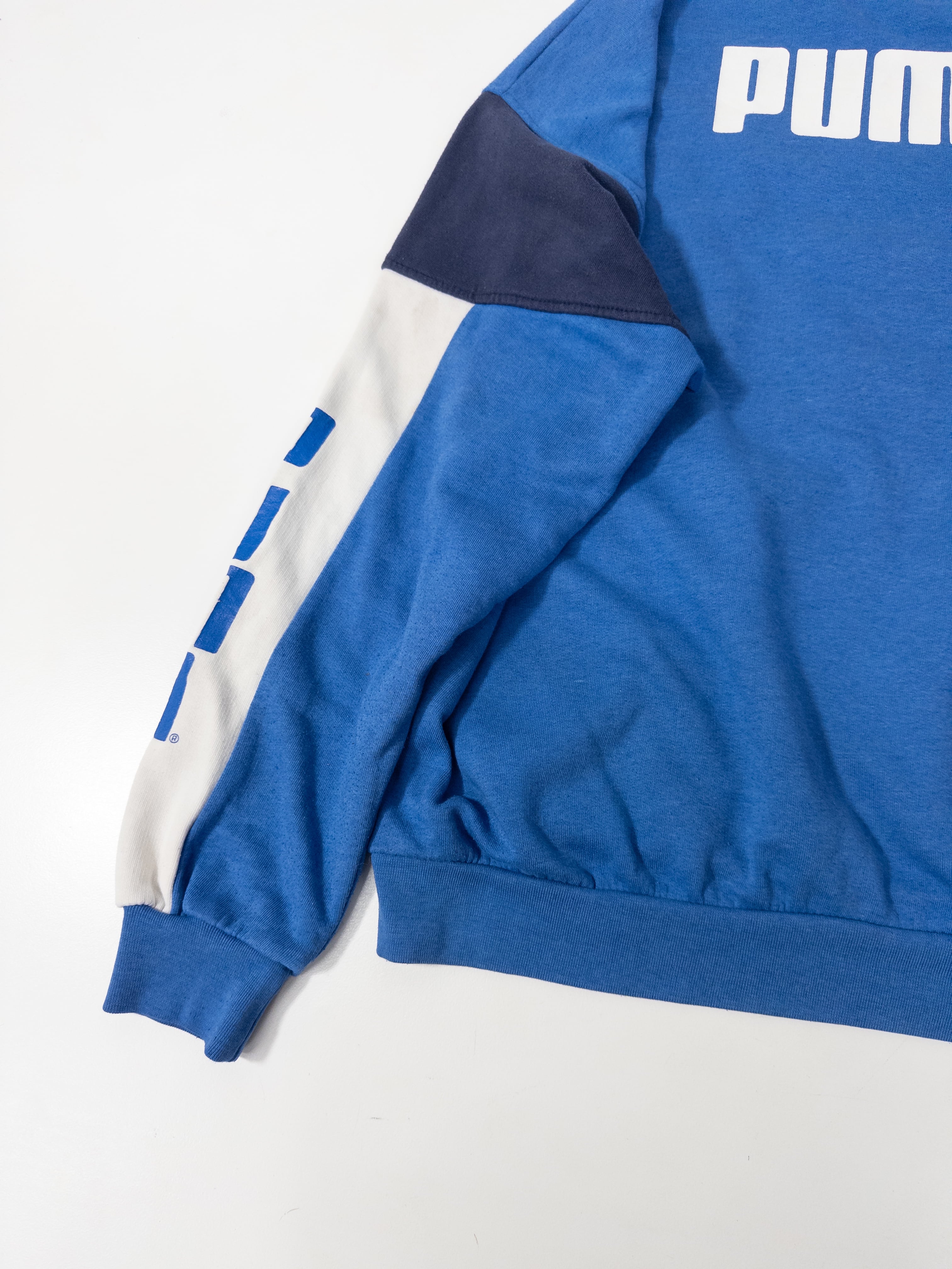 発色のいいブルーに、PUMAのロゴをしっかり効かせたスウェット。