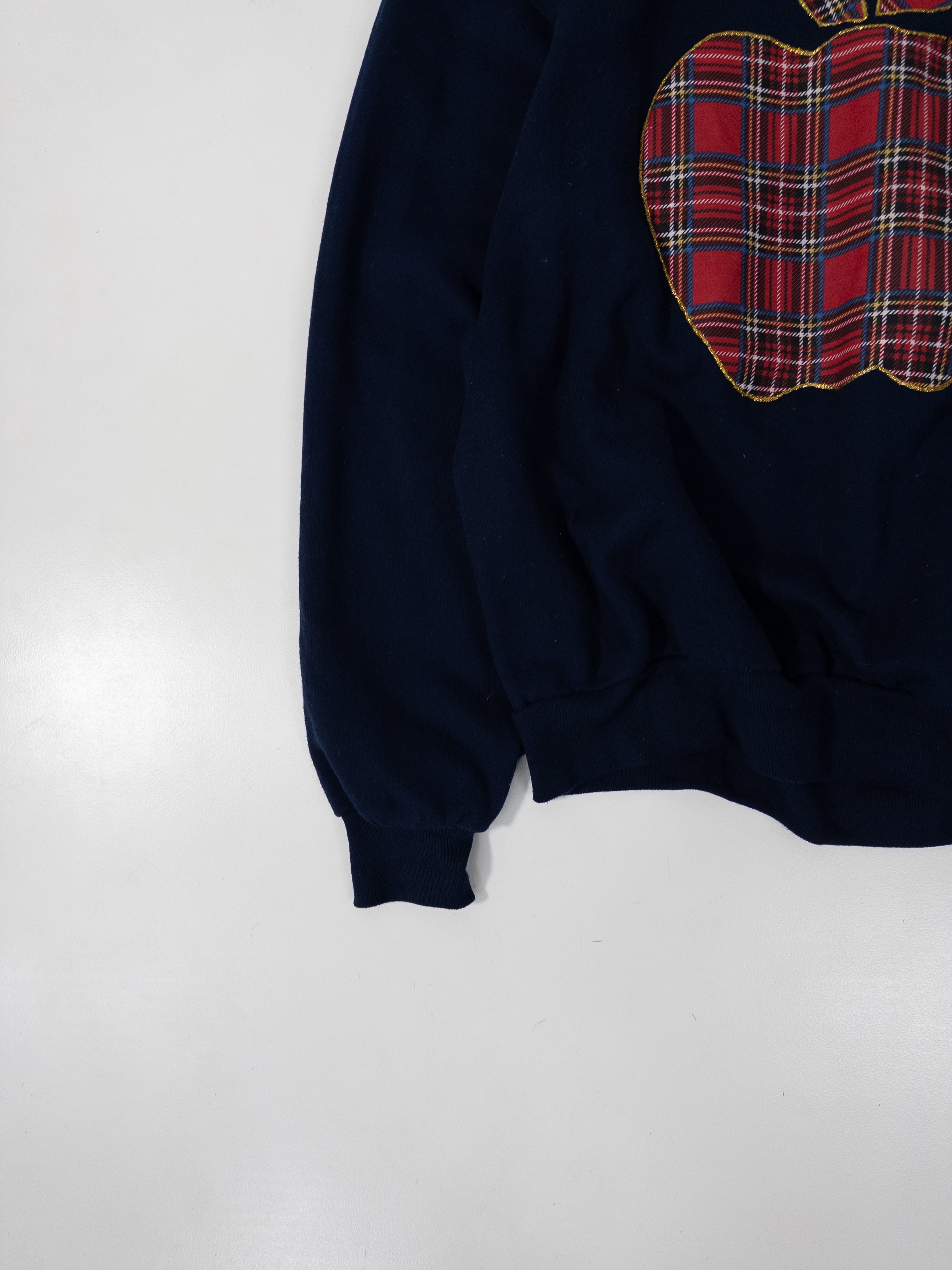 ネイビーボディに、タータンチェックのアップルモチーフ。