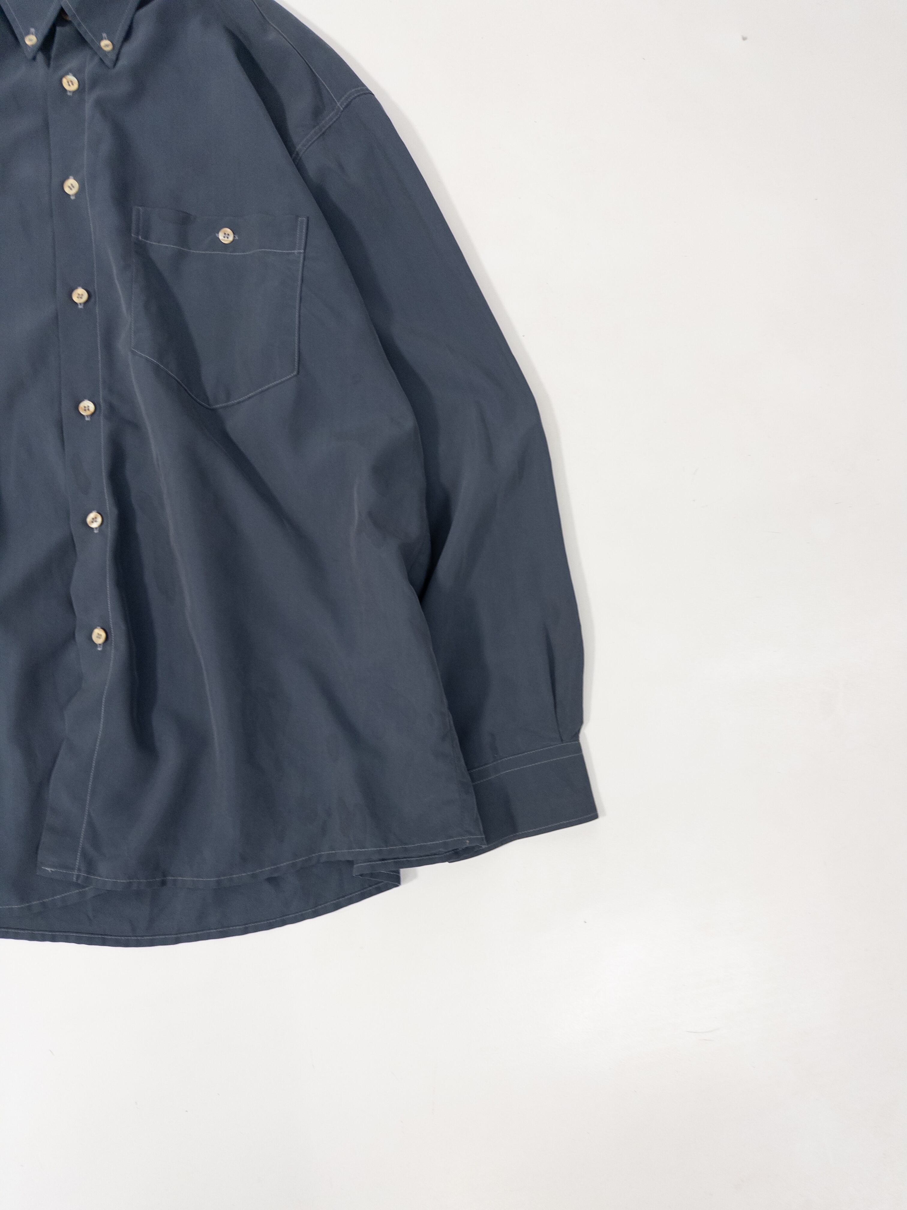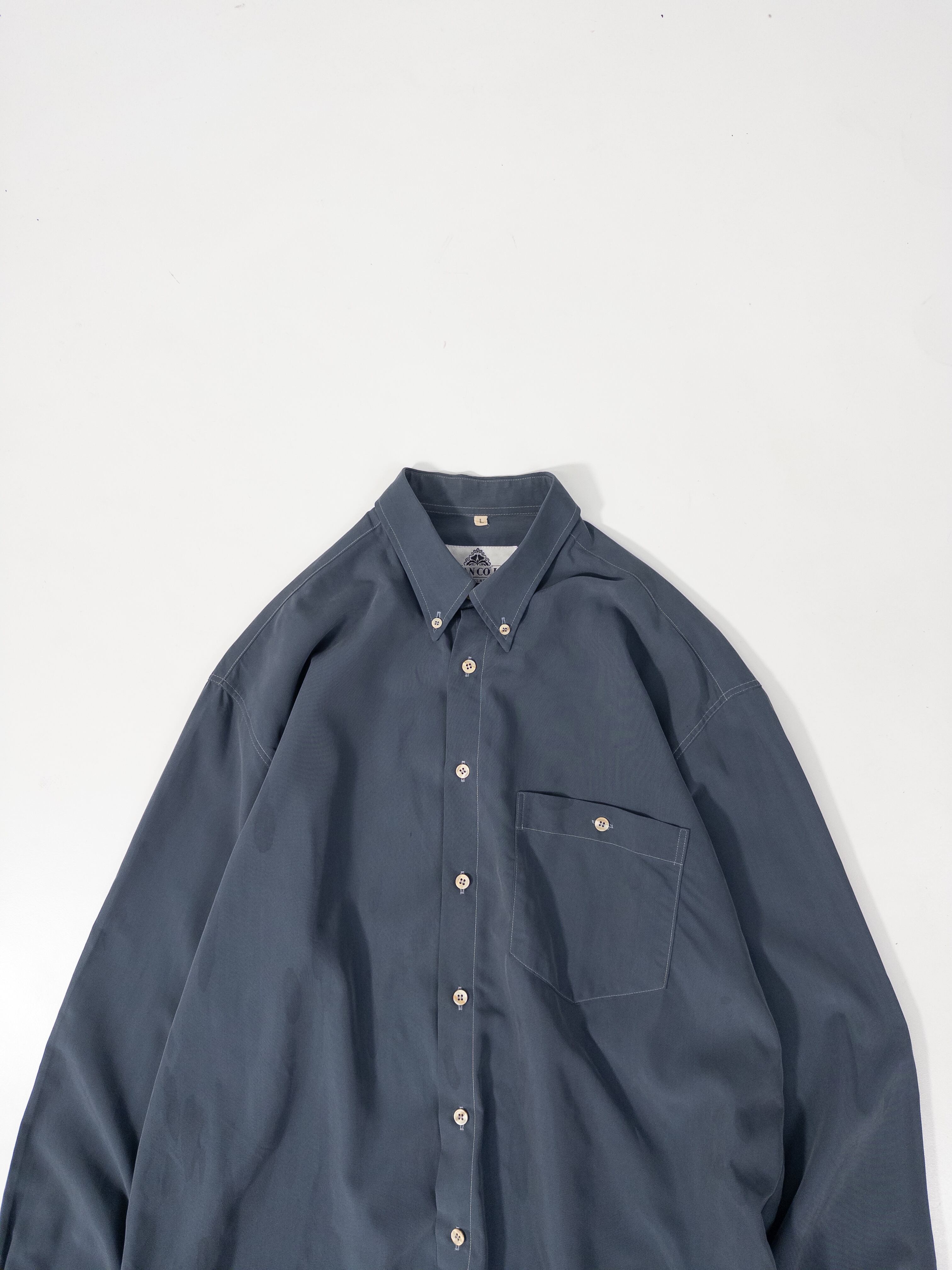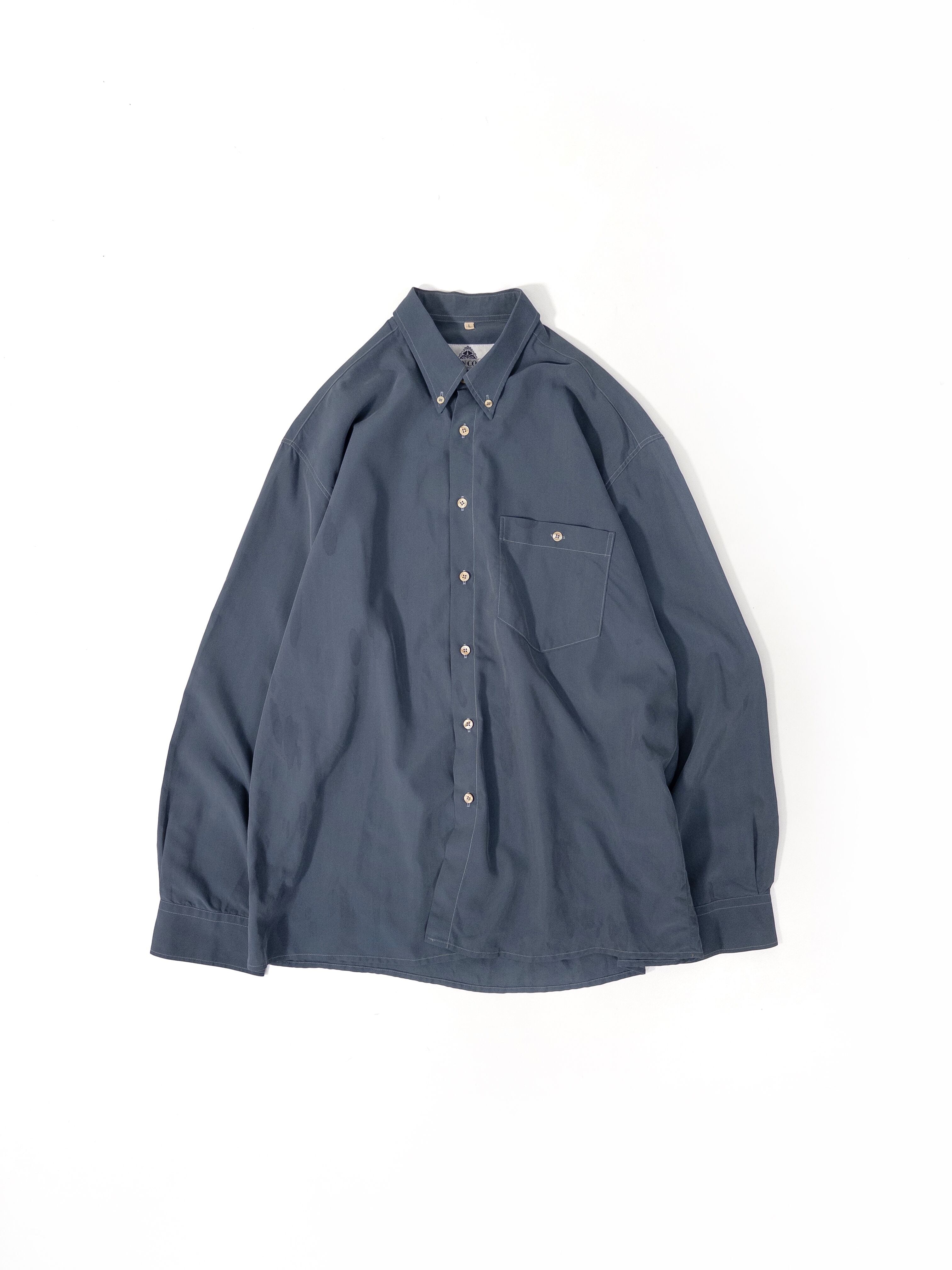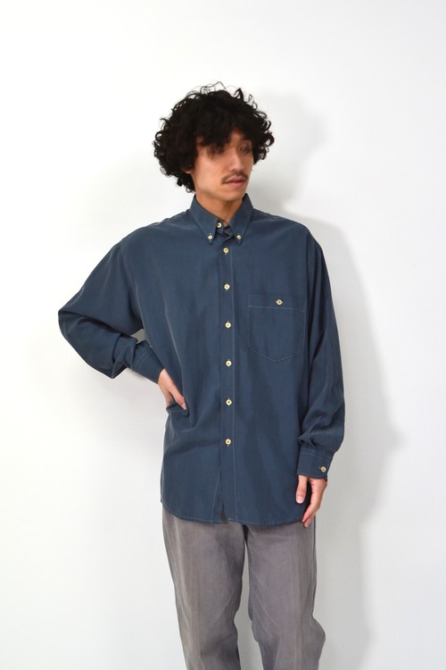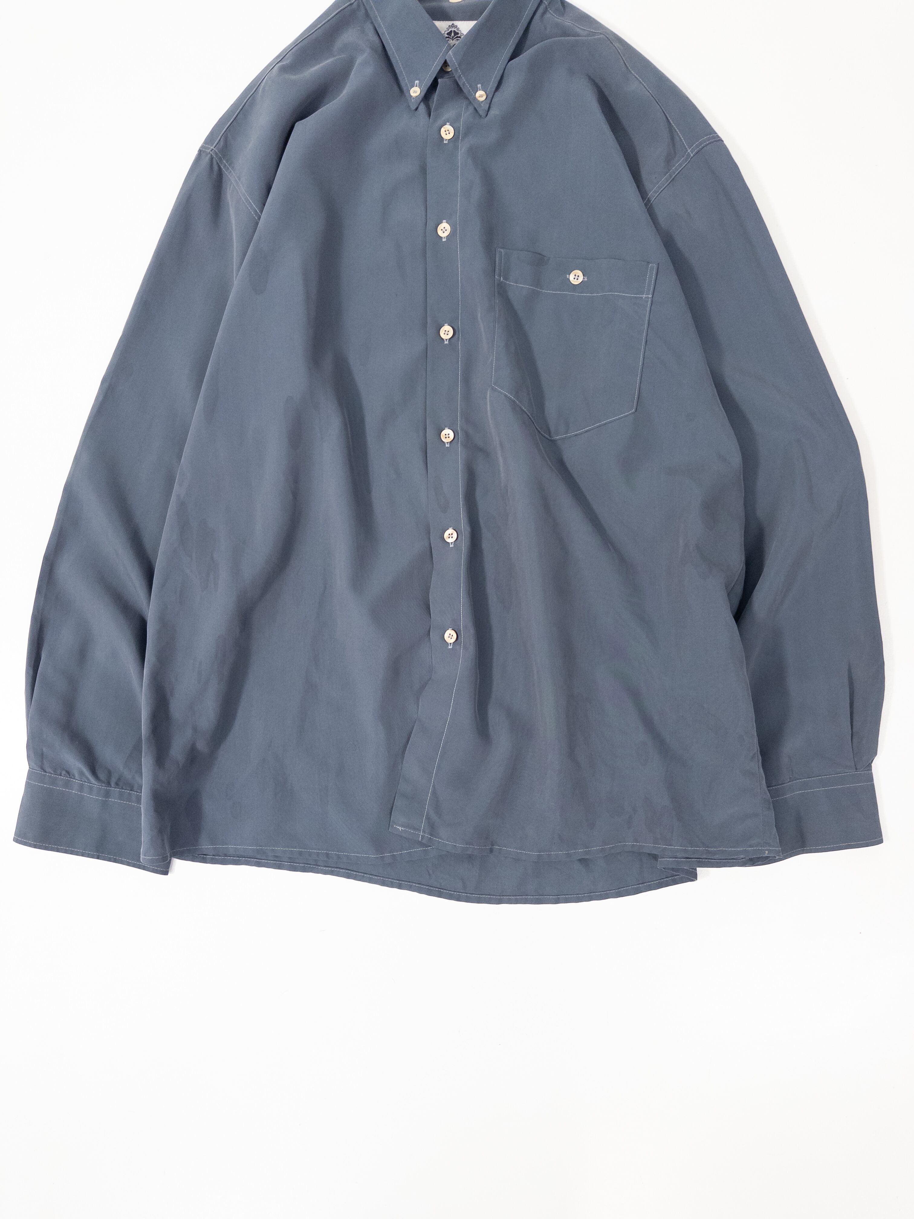 ブルーグレーのボタンダウンシャツ。