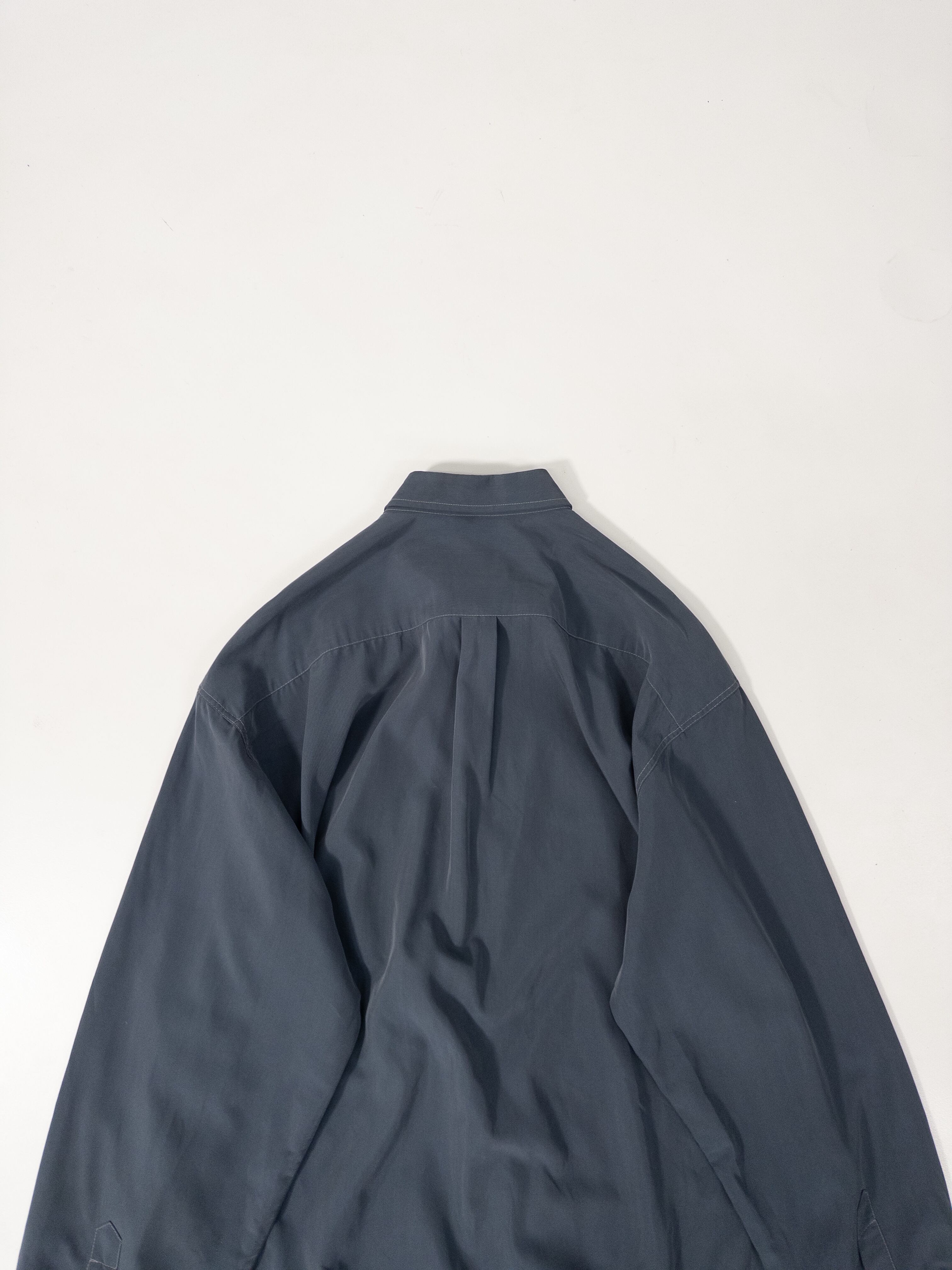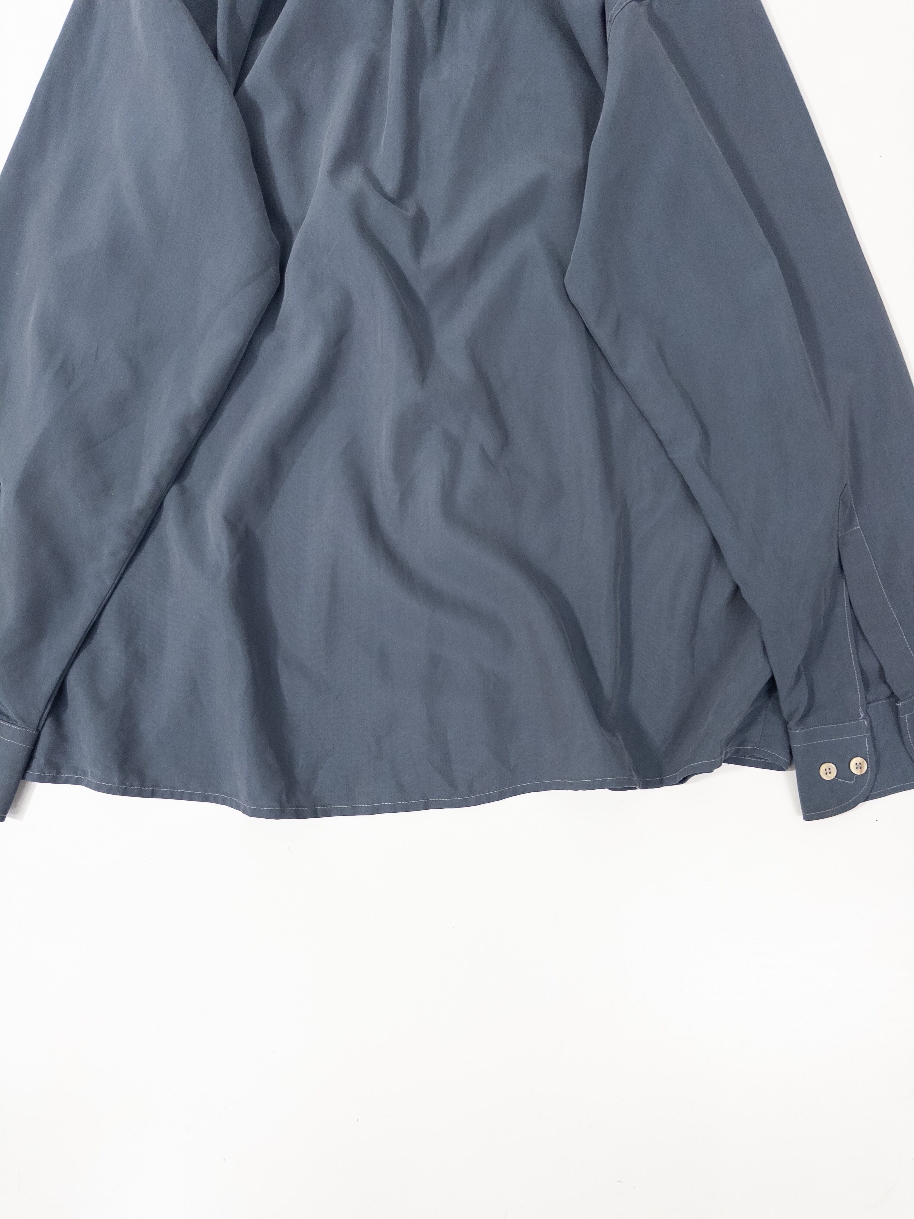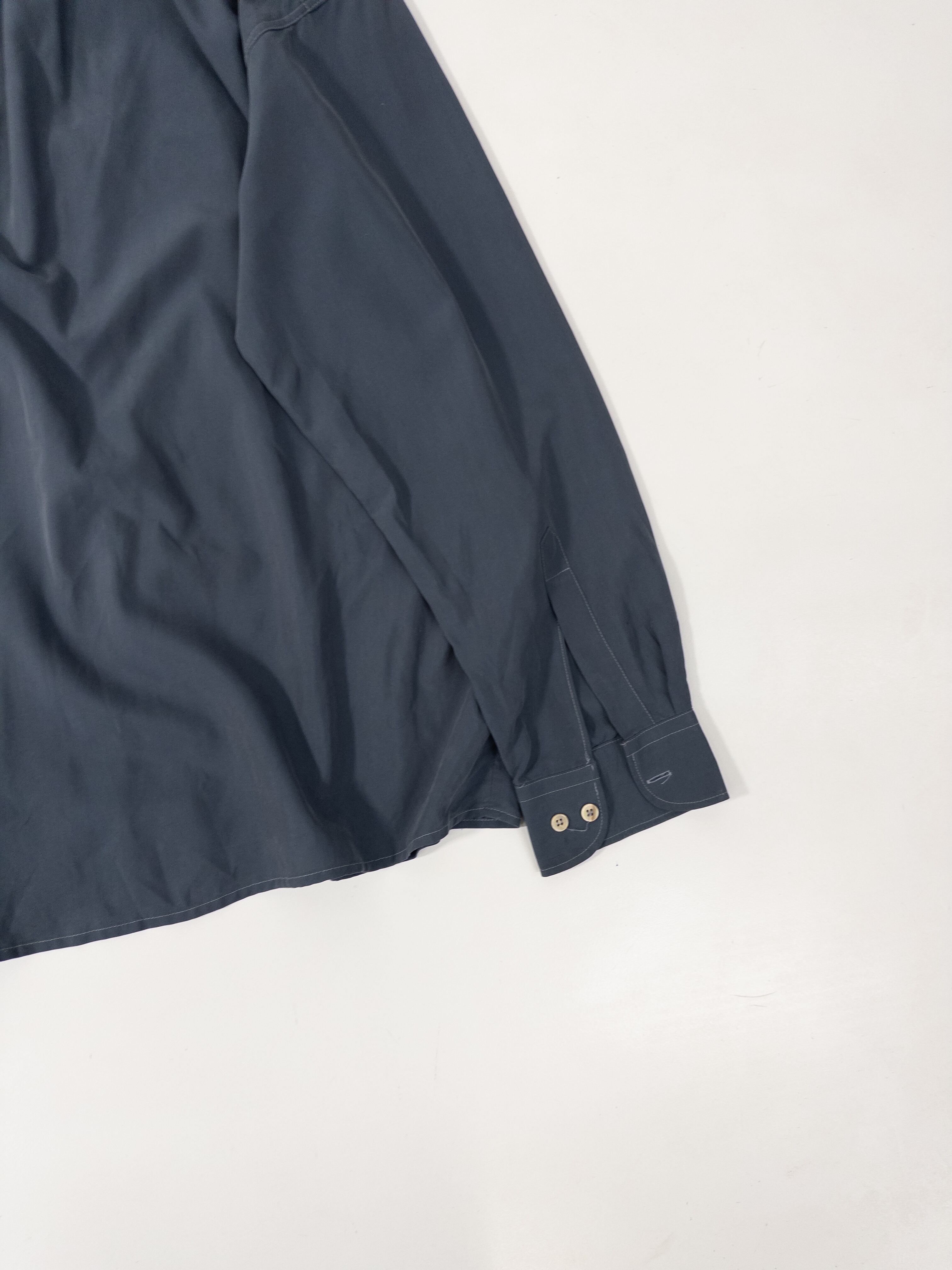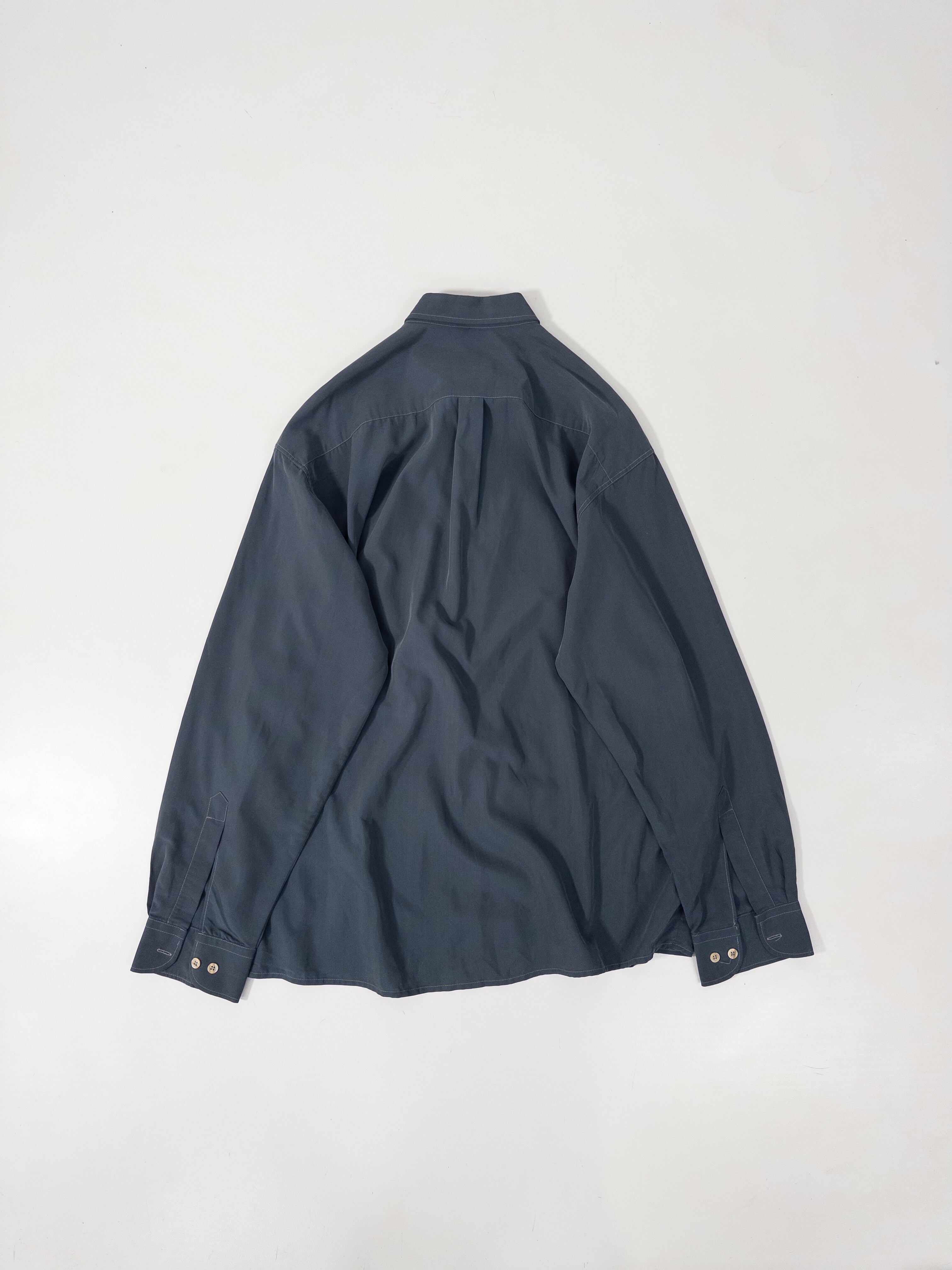 ブルーグレーのボタンダウンシャツ。