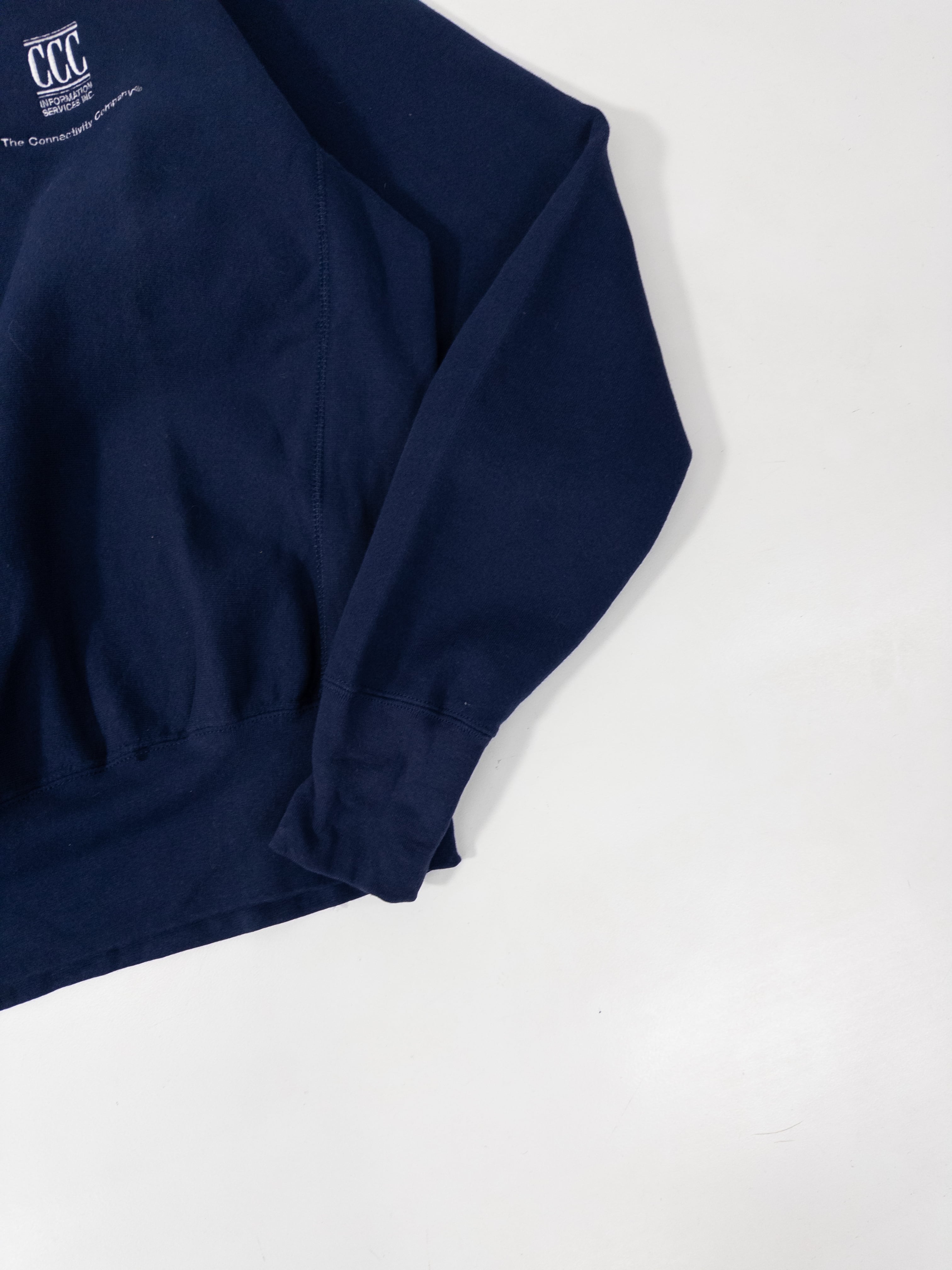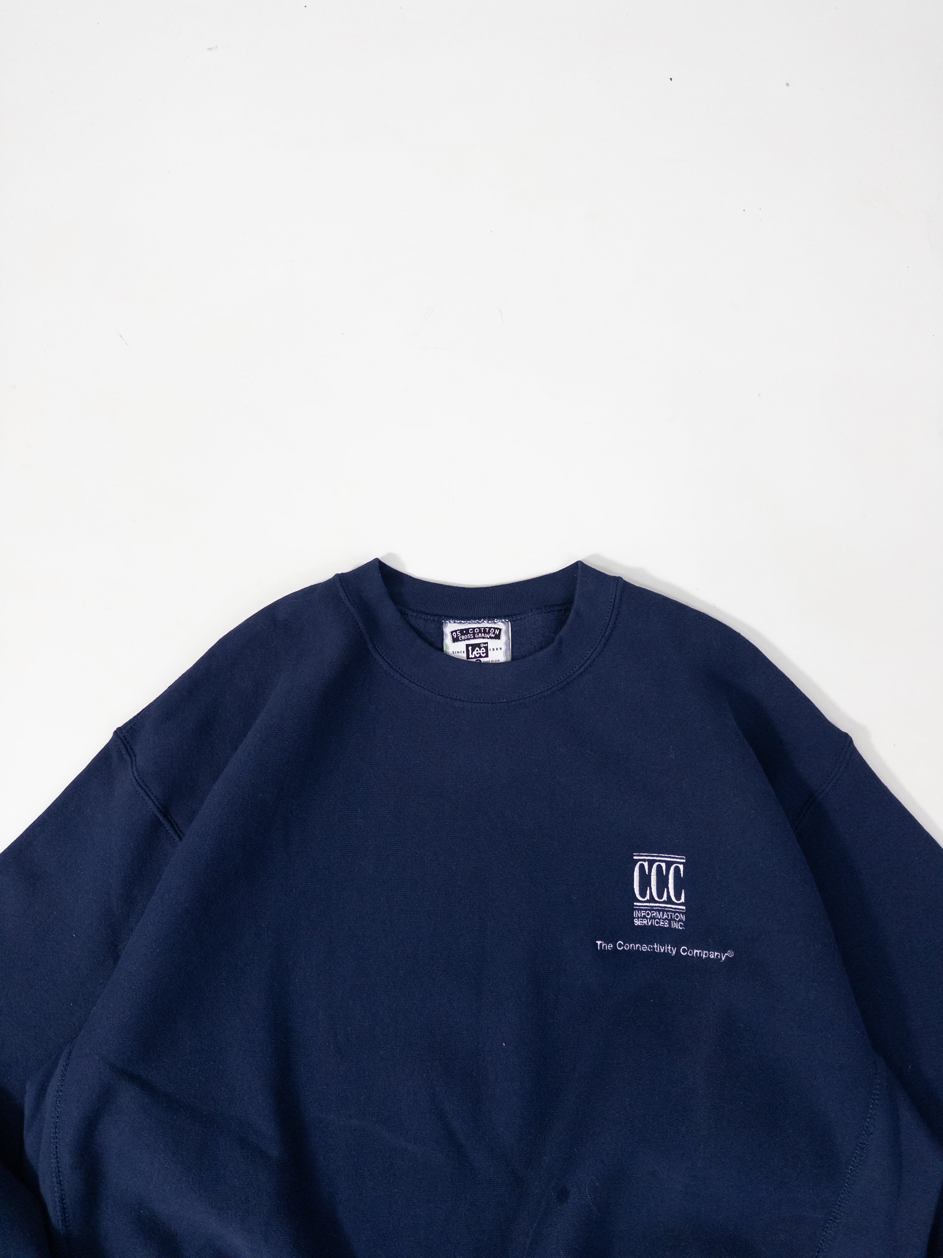 いわゆるCCC(Information Services Inc.)の企業スウェットで、主張は弱いのにしっかり空気を作るタイプの一着です。