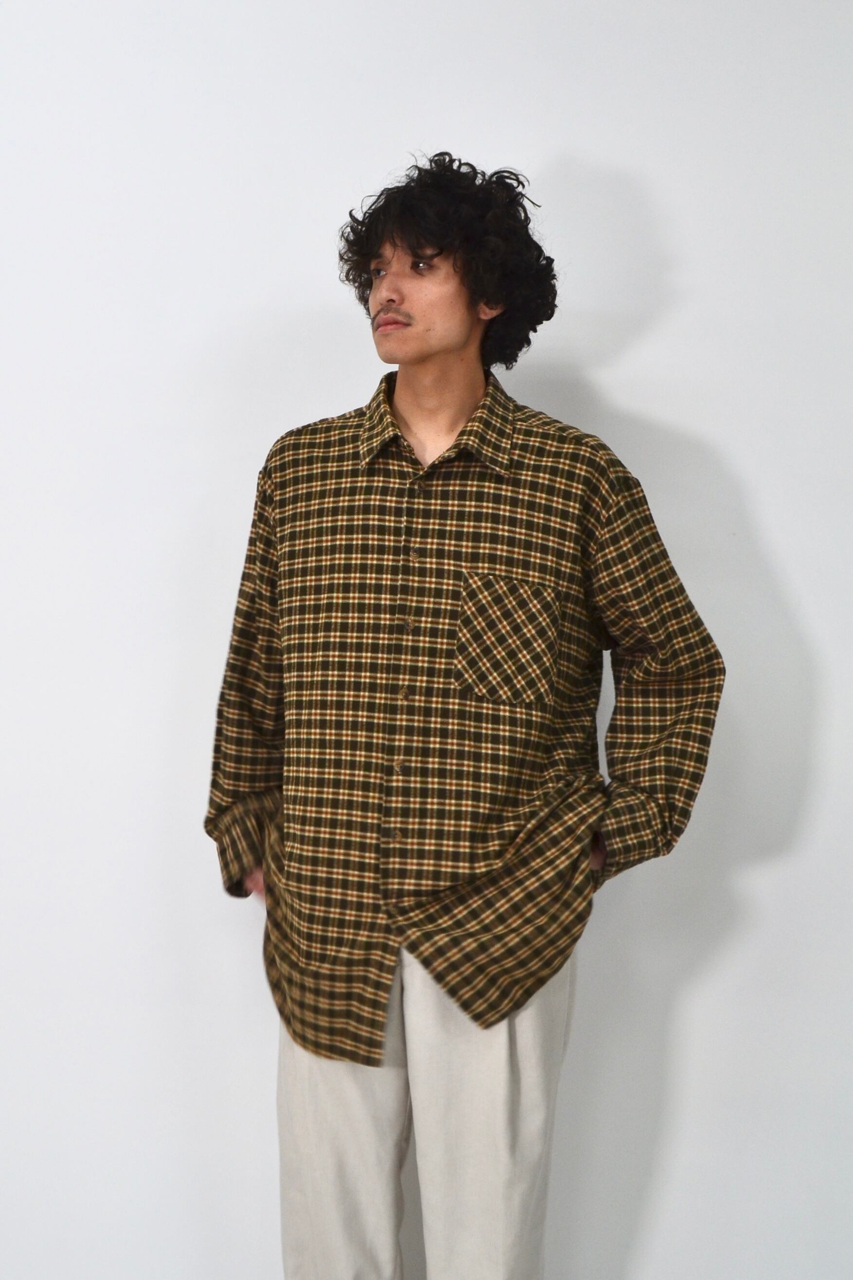 古着のネルシャツらしい雰囲気が出ます。