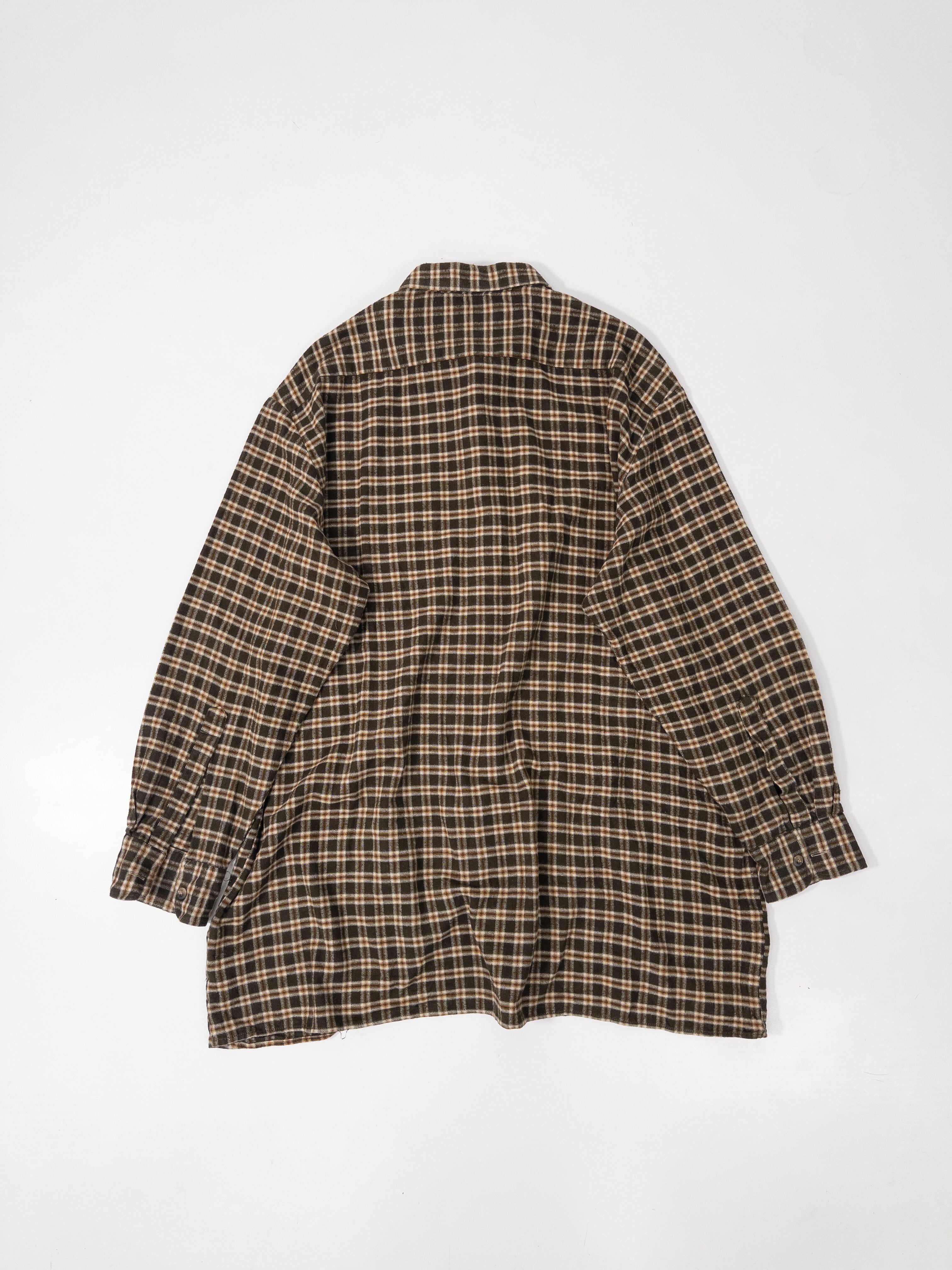 ブラウンベースのチェックシャツ。