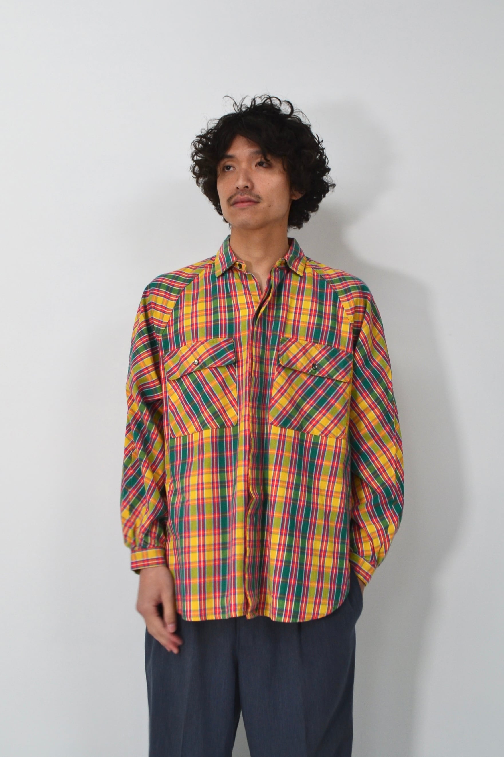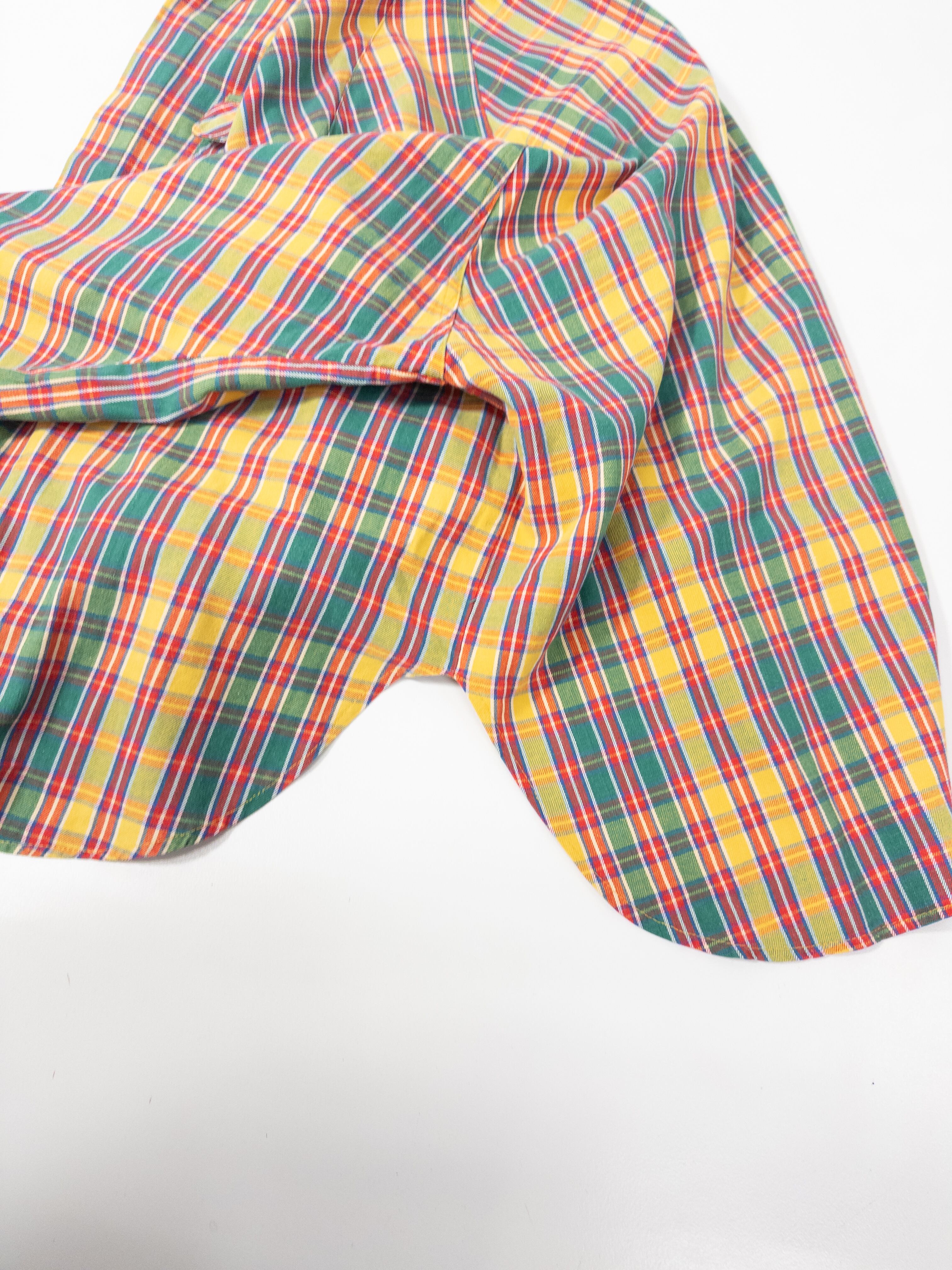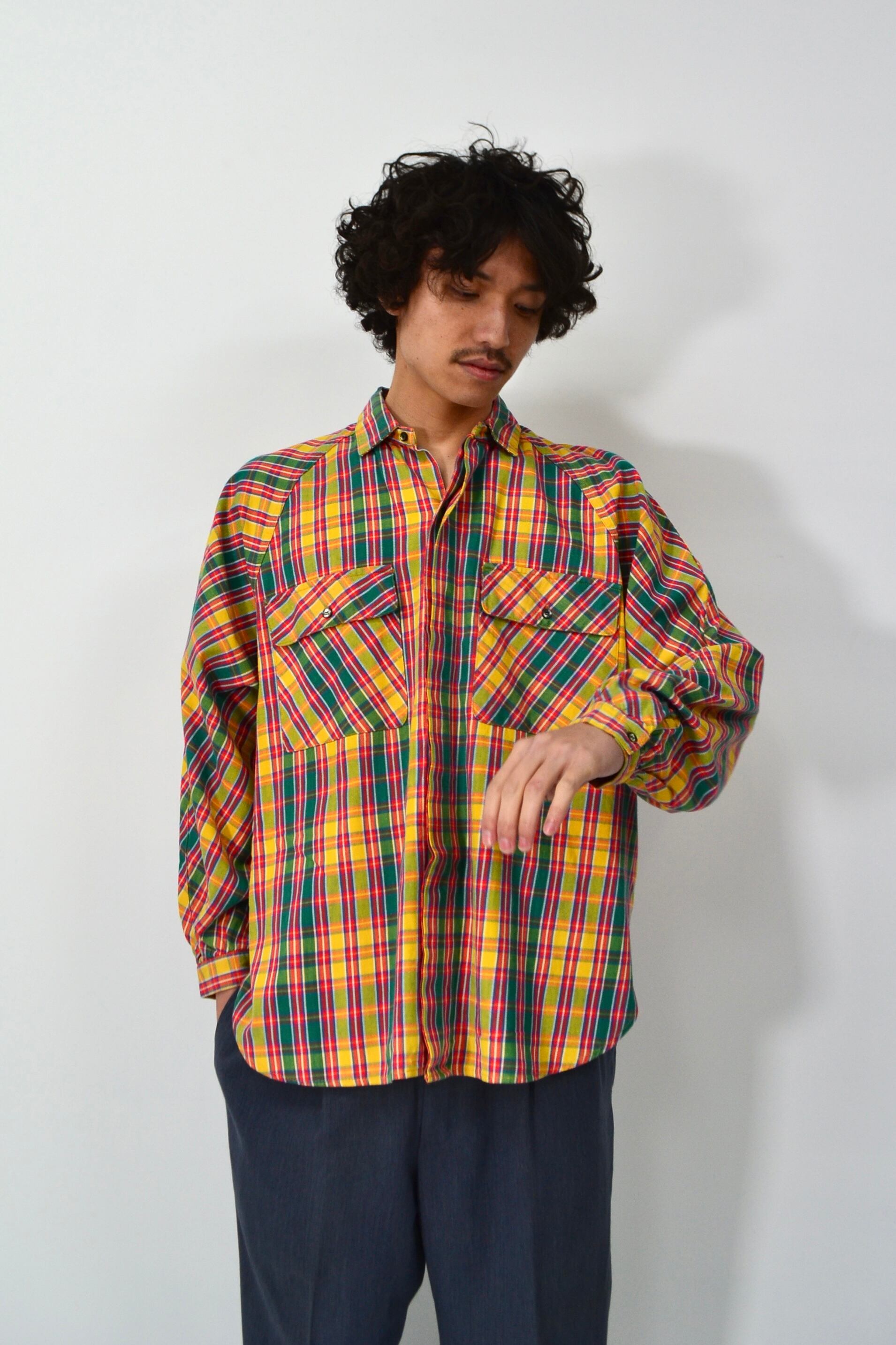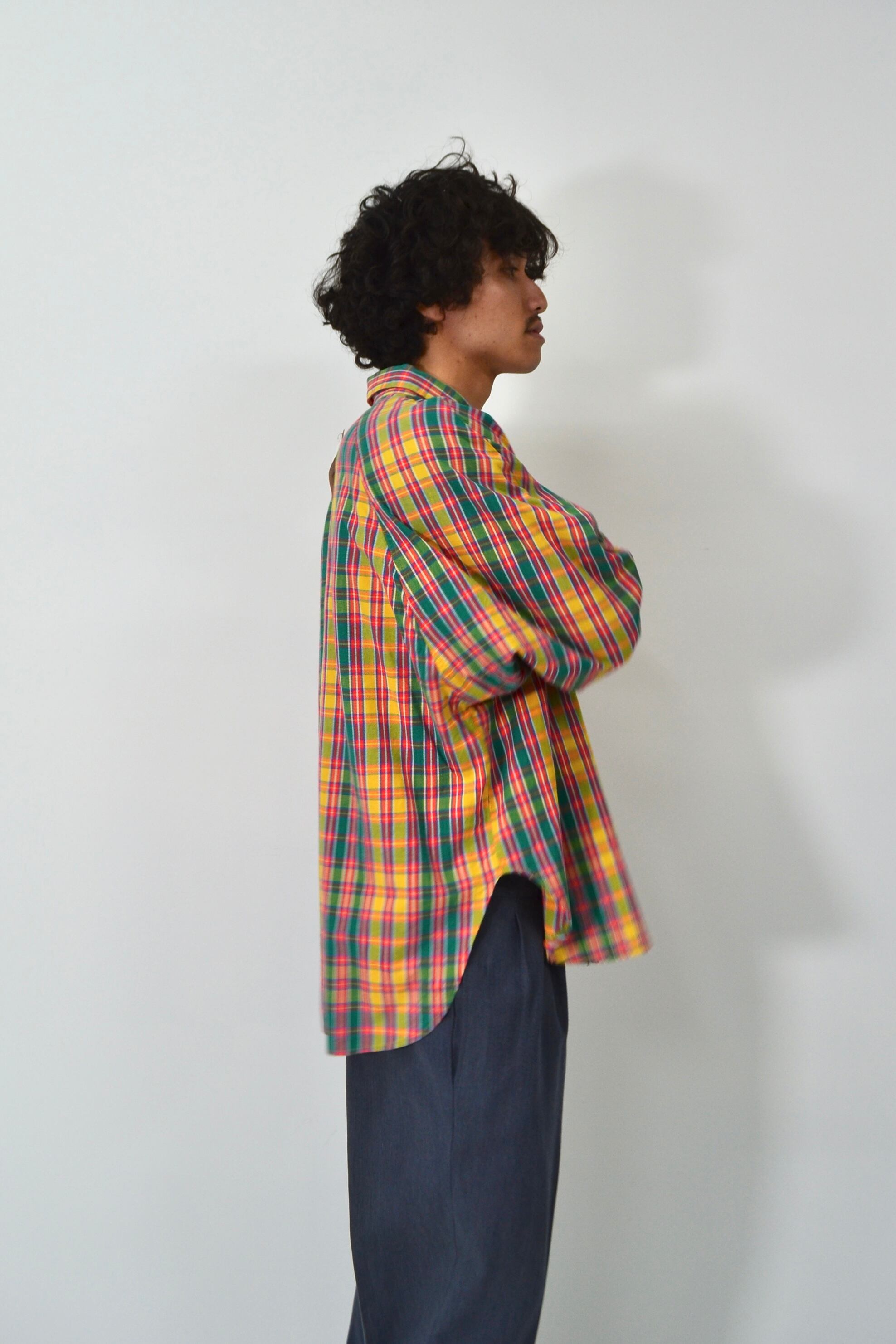 鮮やかなマドラスチェックのシャツ。