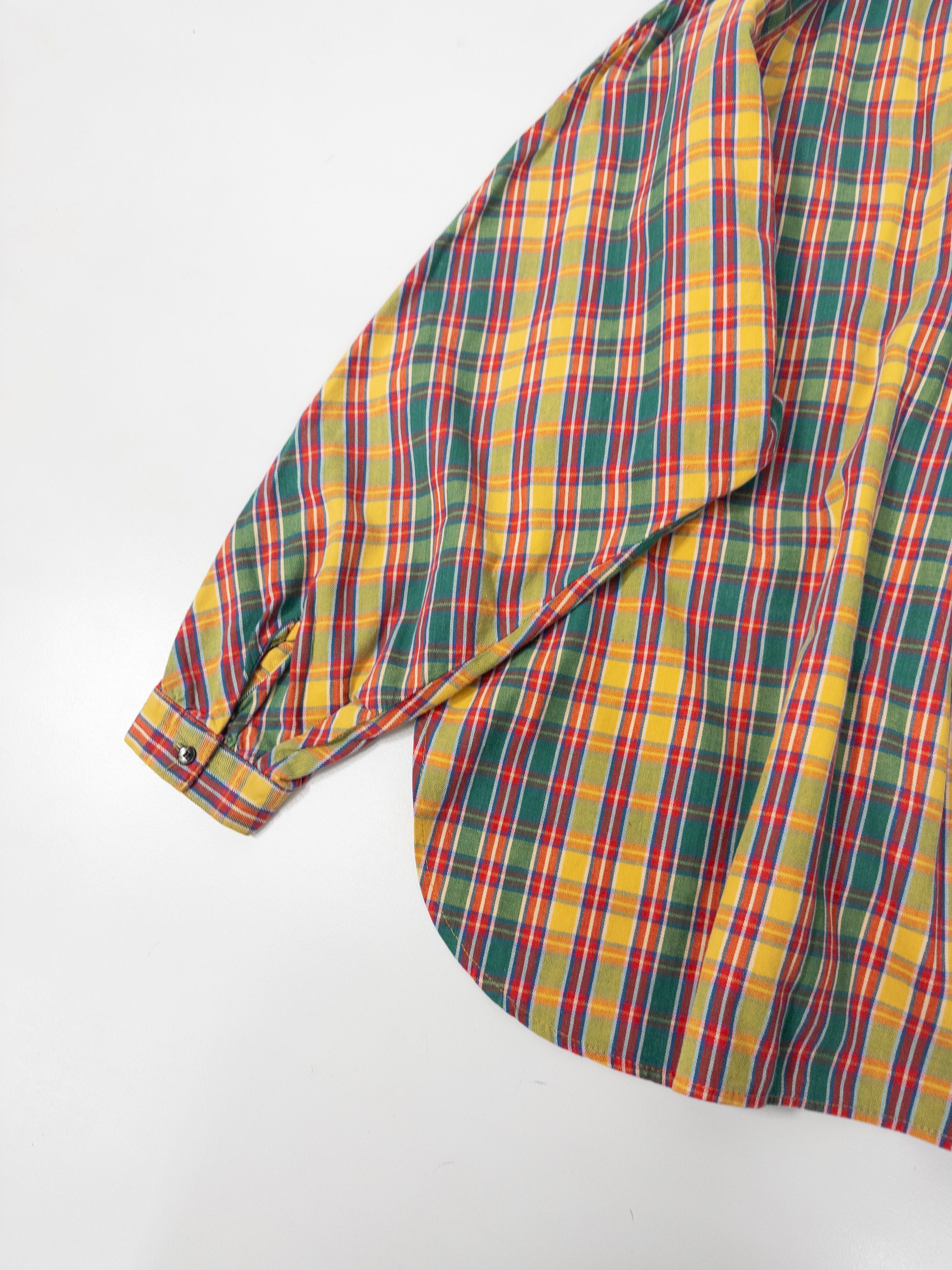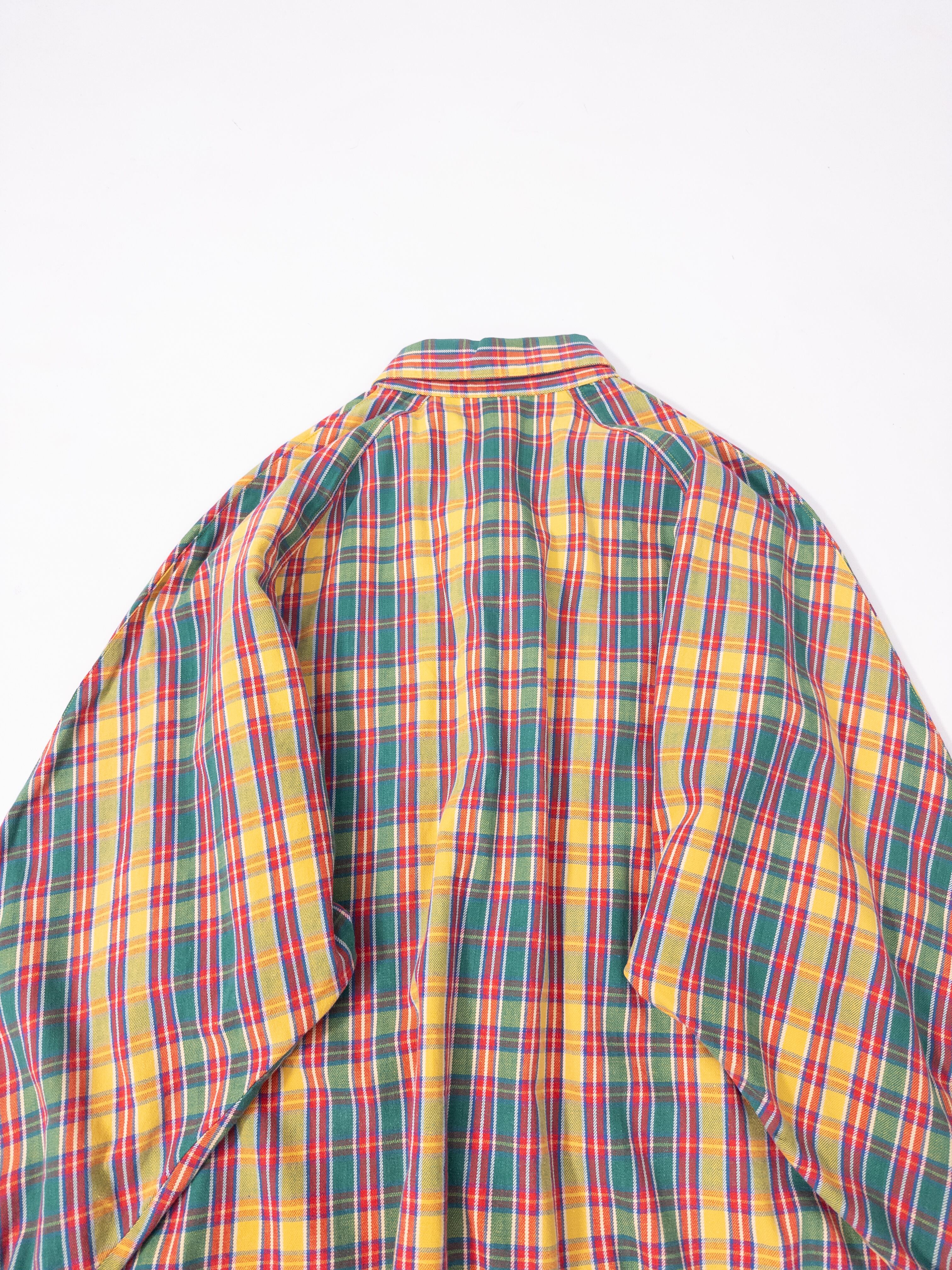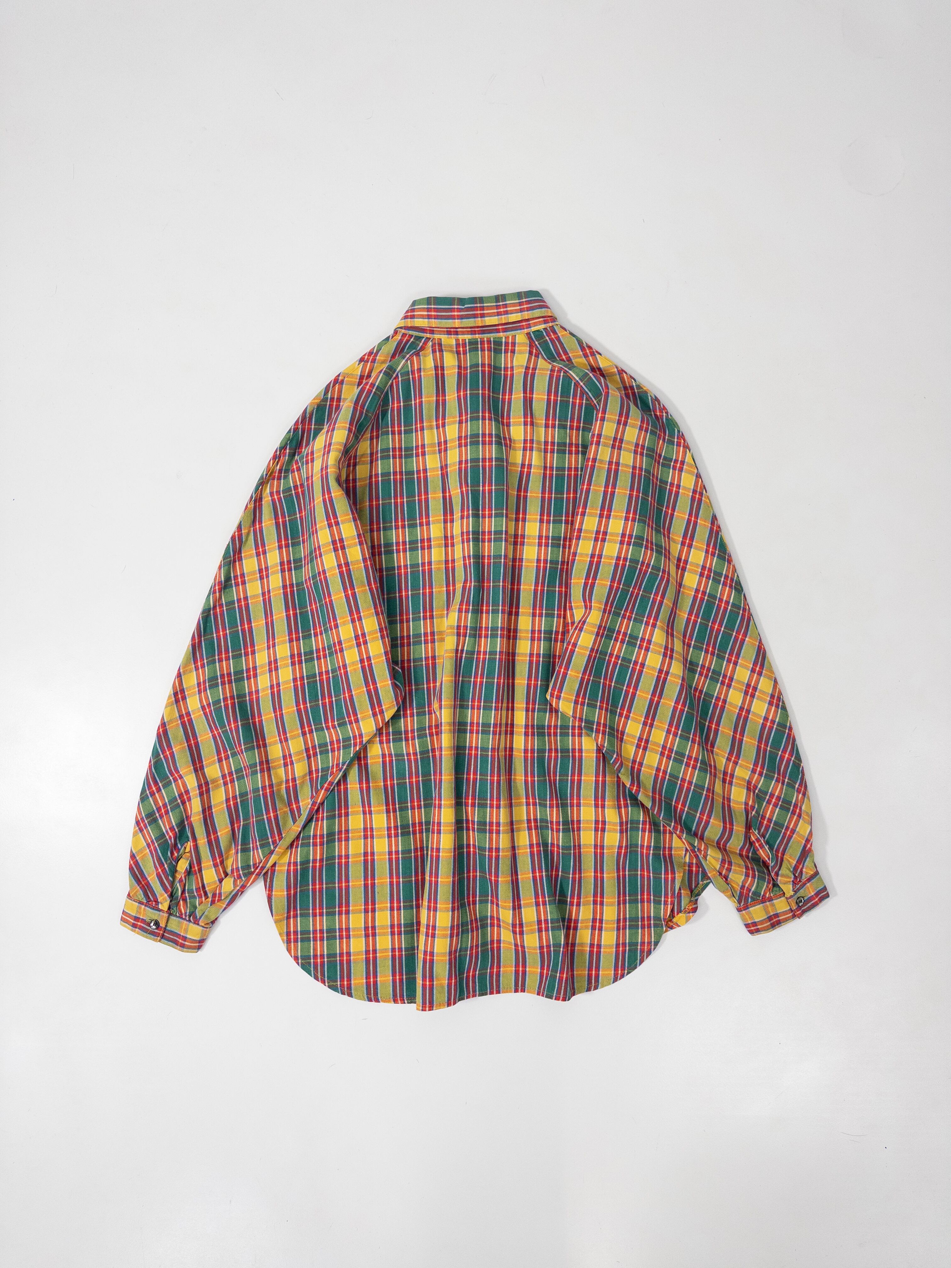 鮮やかなマドラスチェックのシャツ。