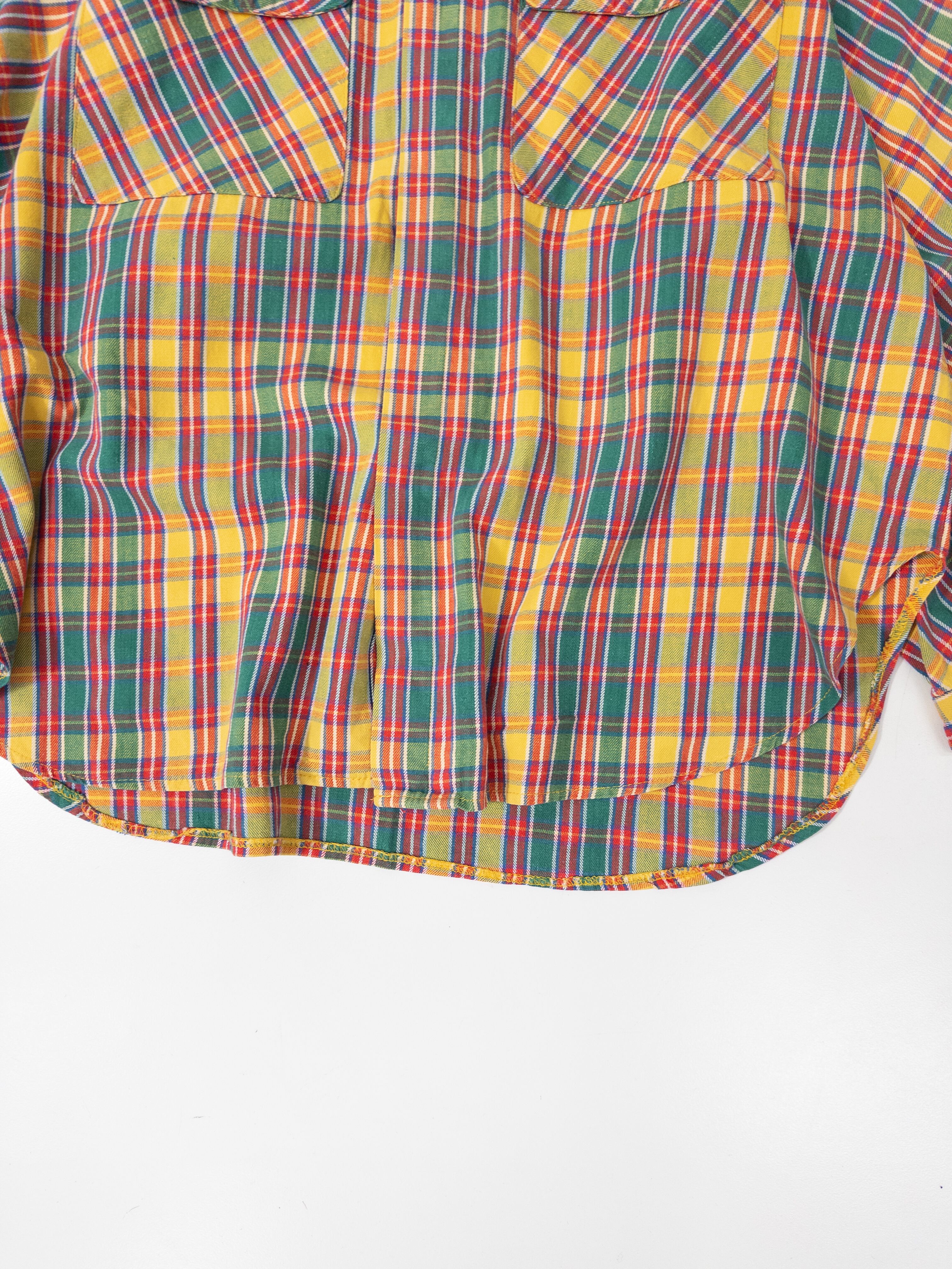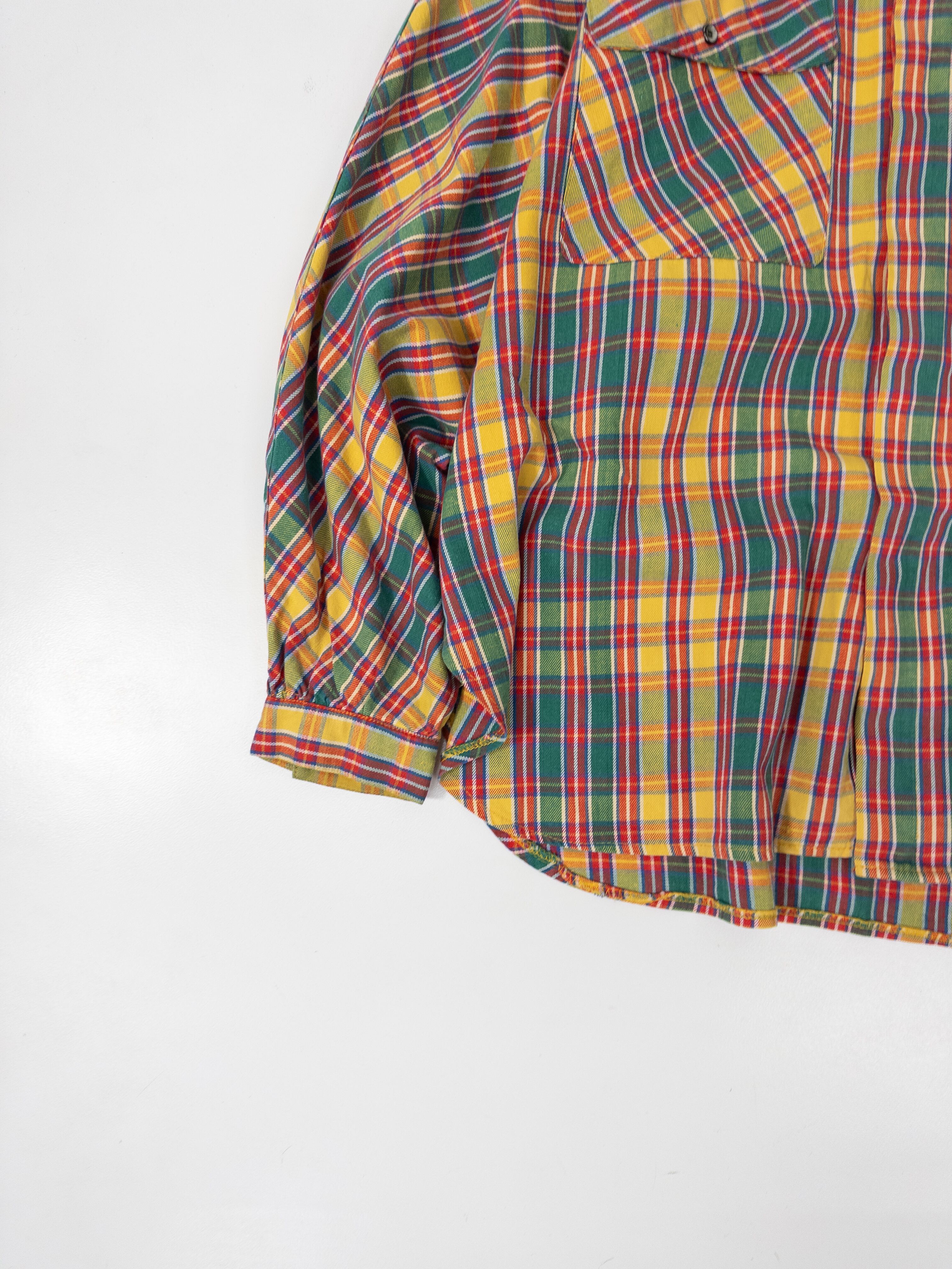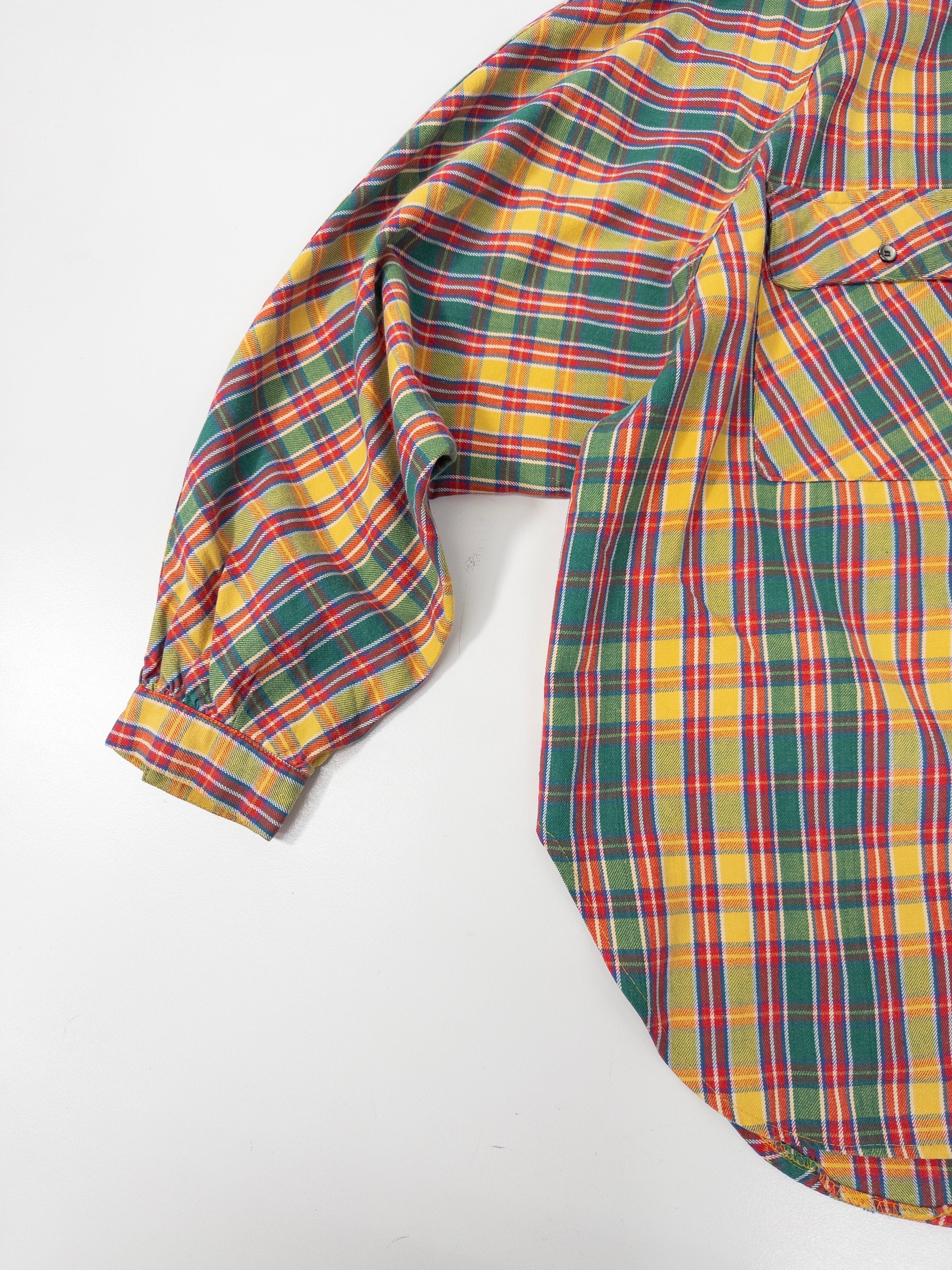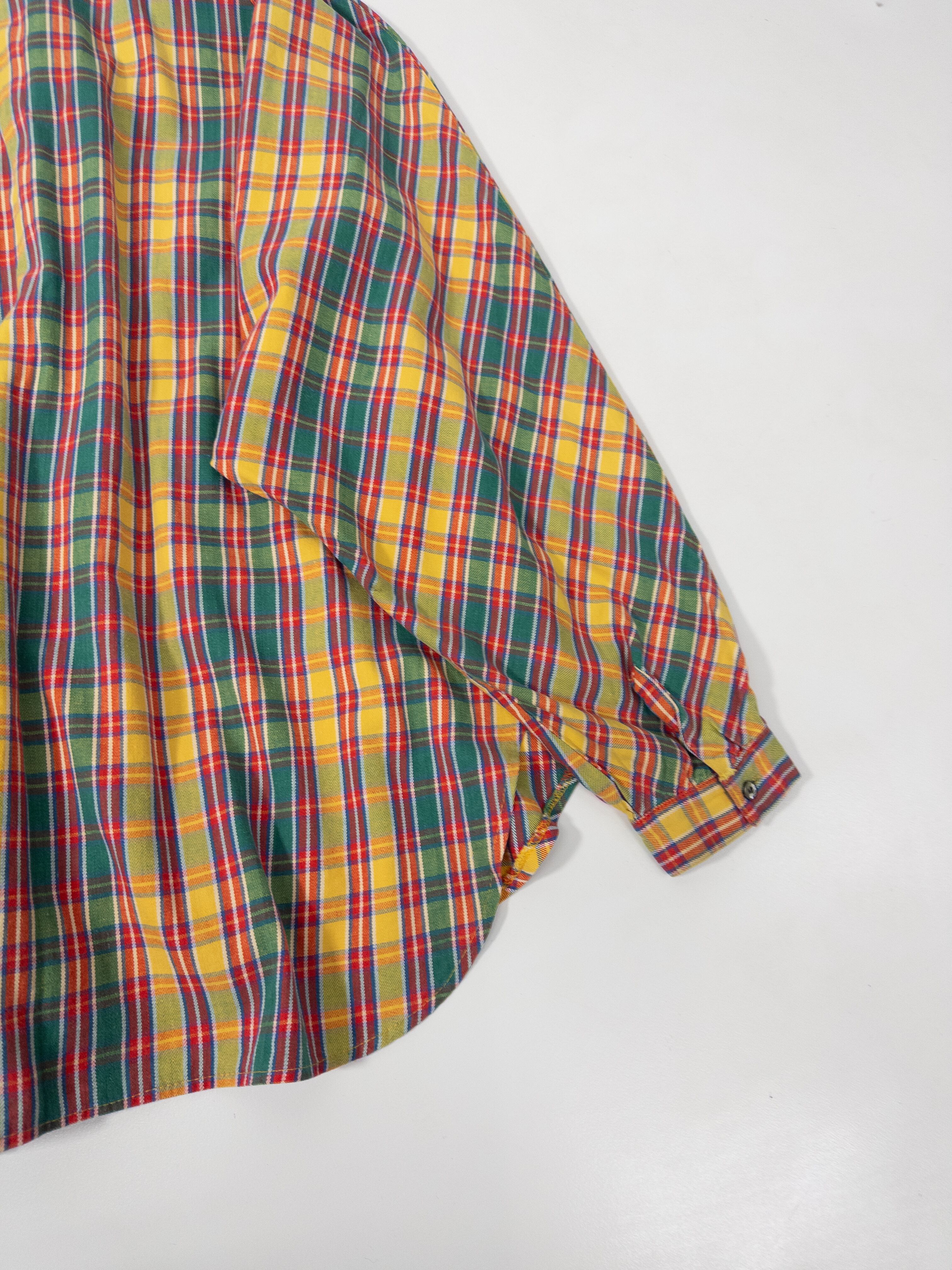 鮮やかなマドラスチェックのシャツ。