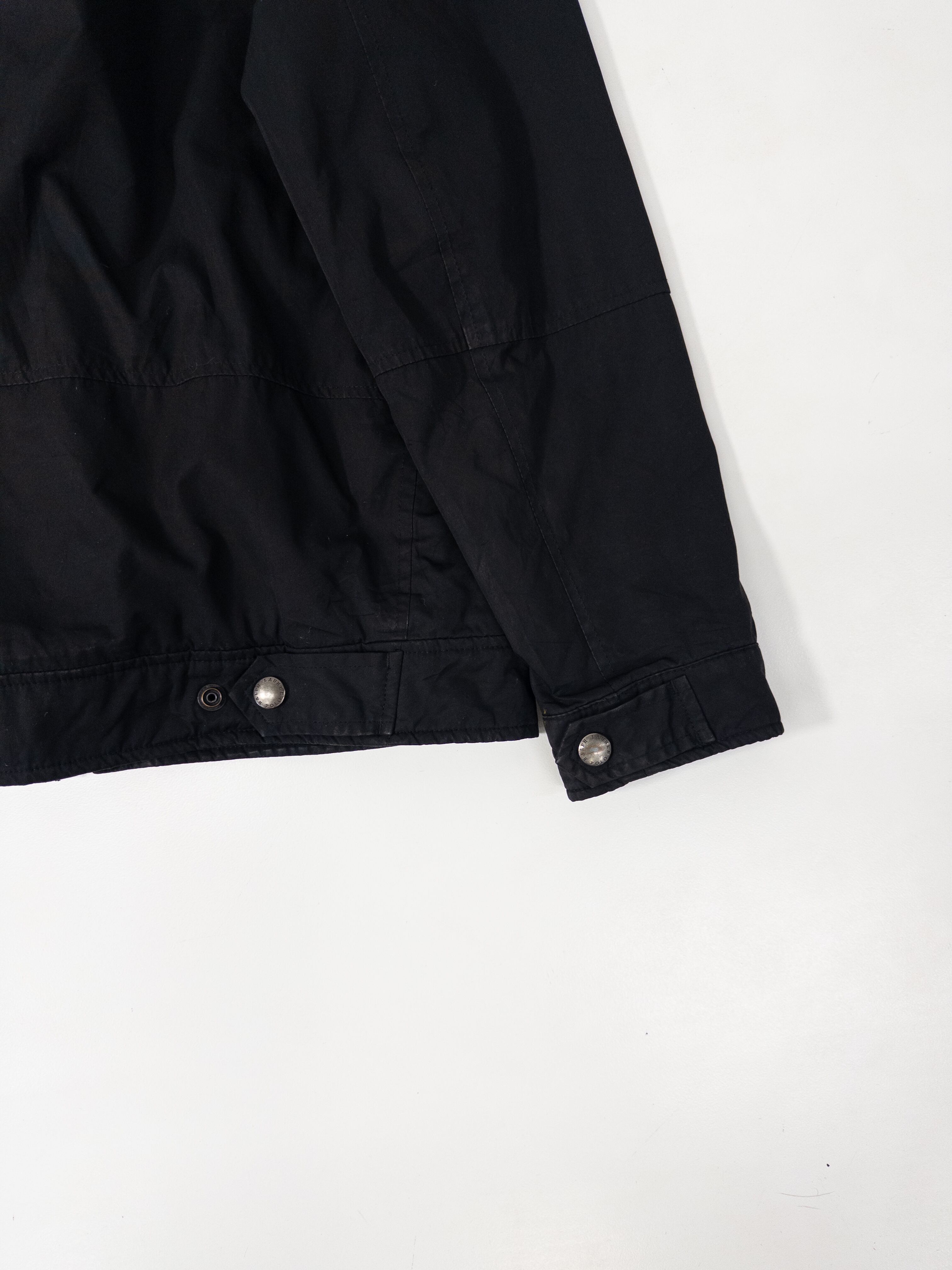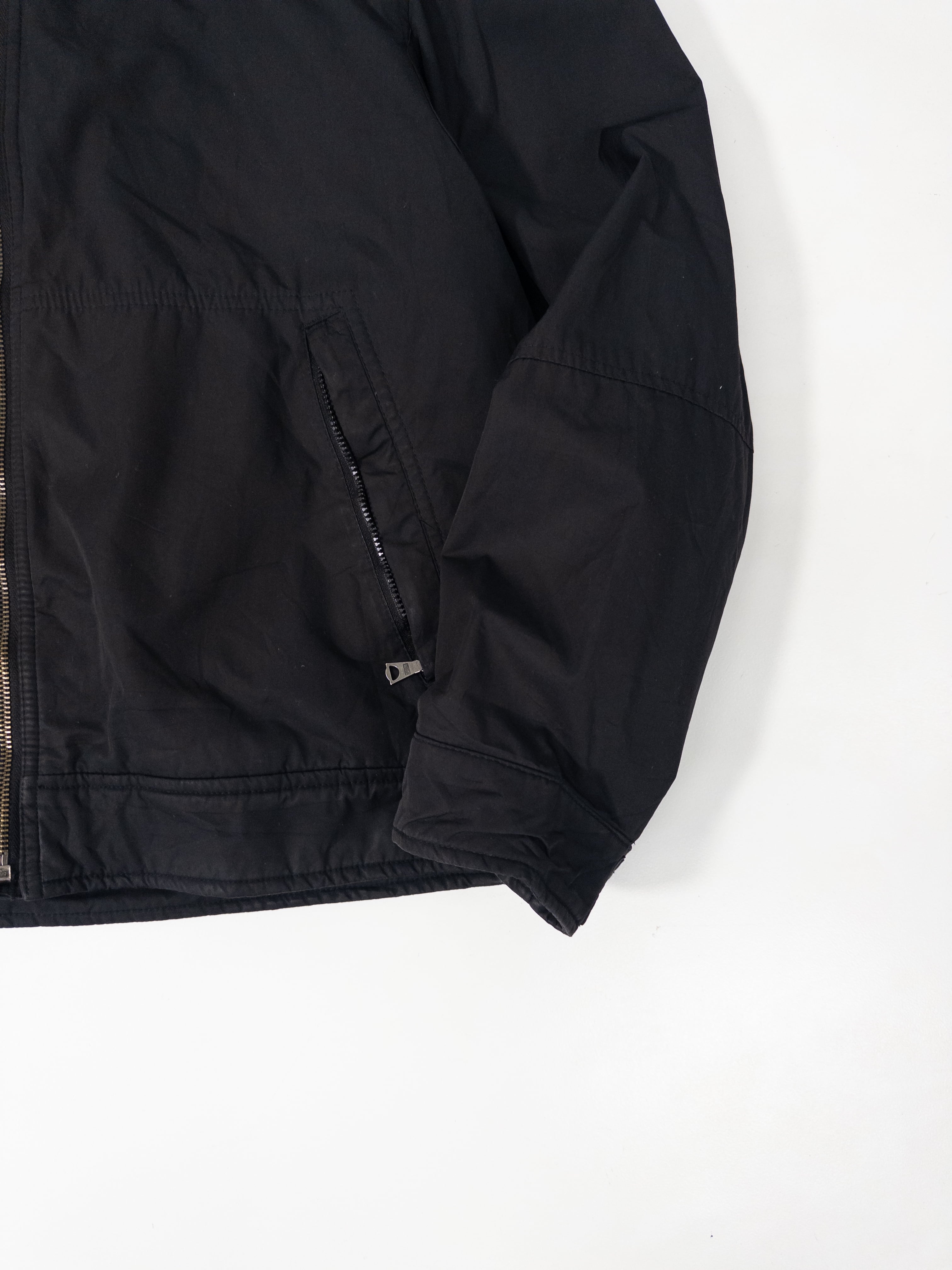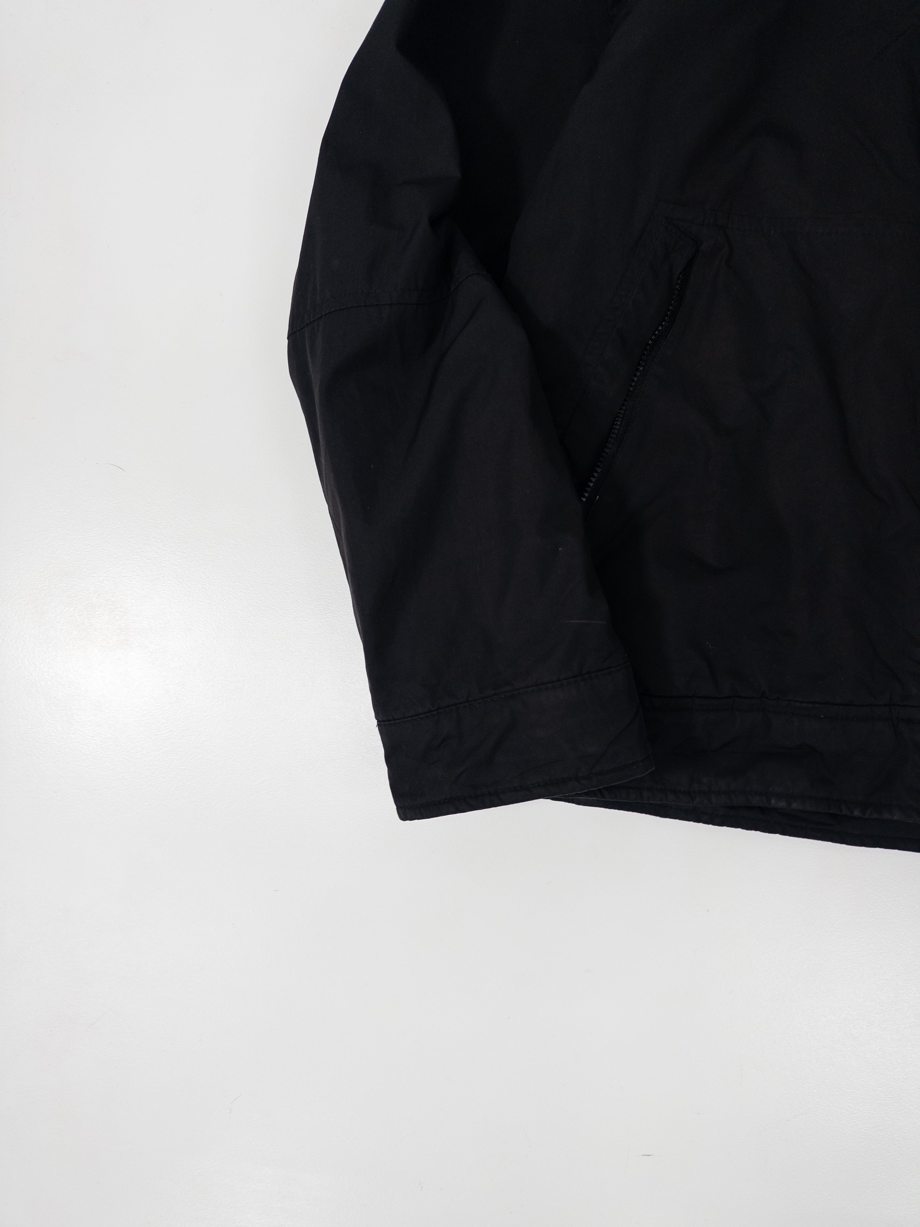 ポリエステルシェルに軽く中綿が入る仕様で、ウォームアップジャケットよりもすっきりとしたシルエット。