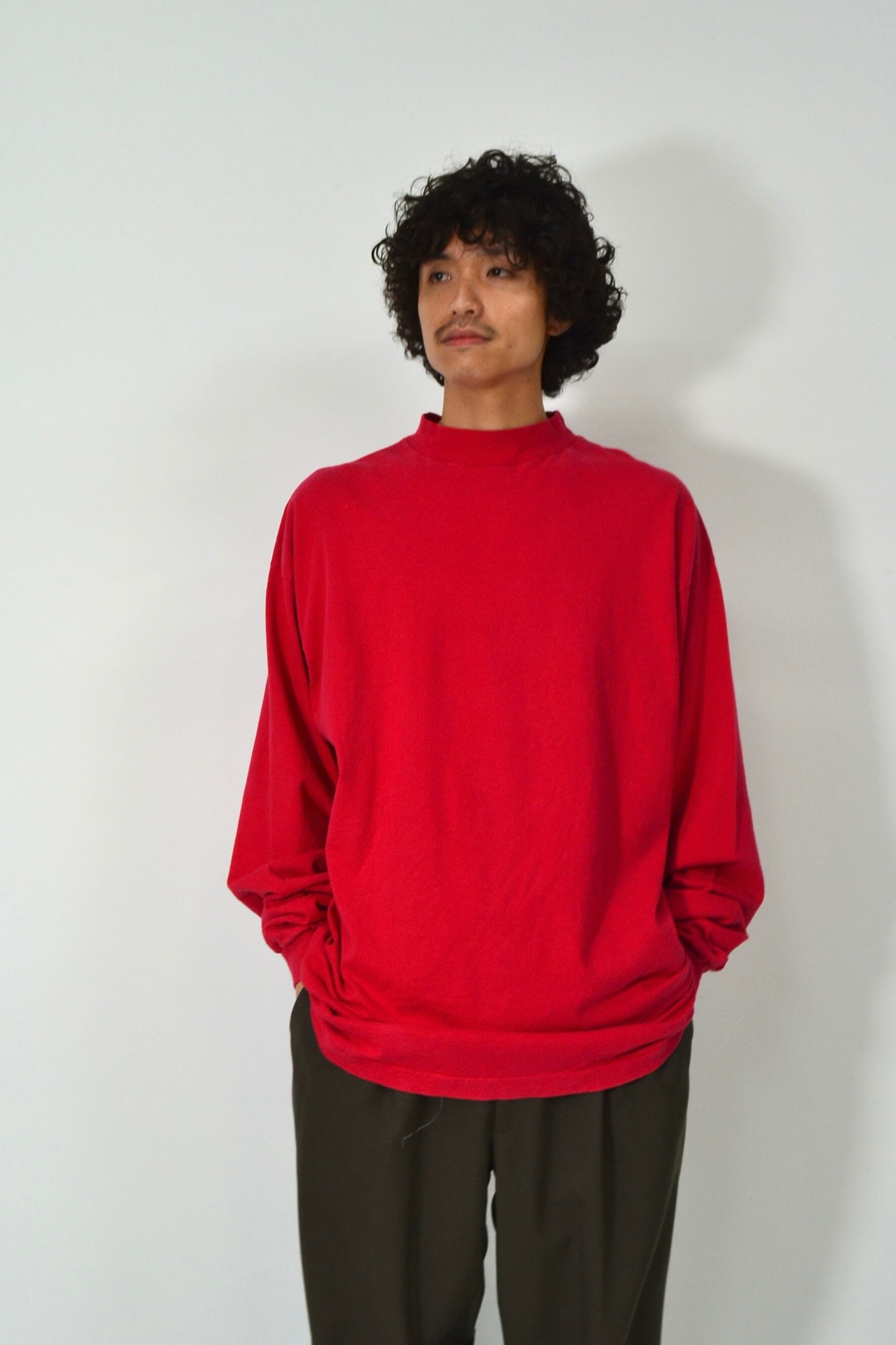 ただの無地ロンTで終わらない、首元のバランスが効いた1枚です。