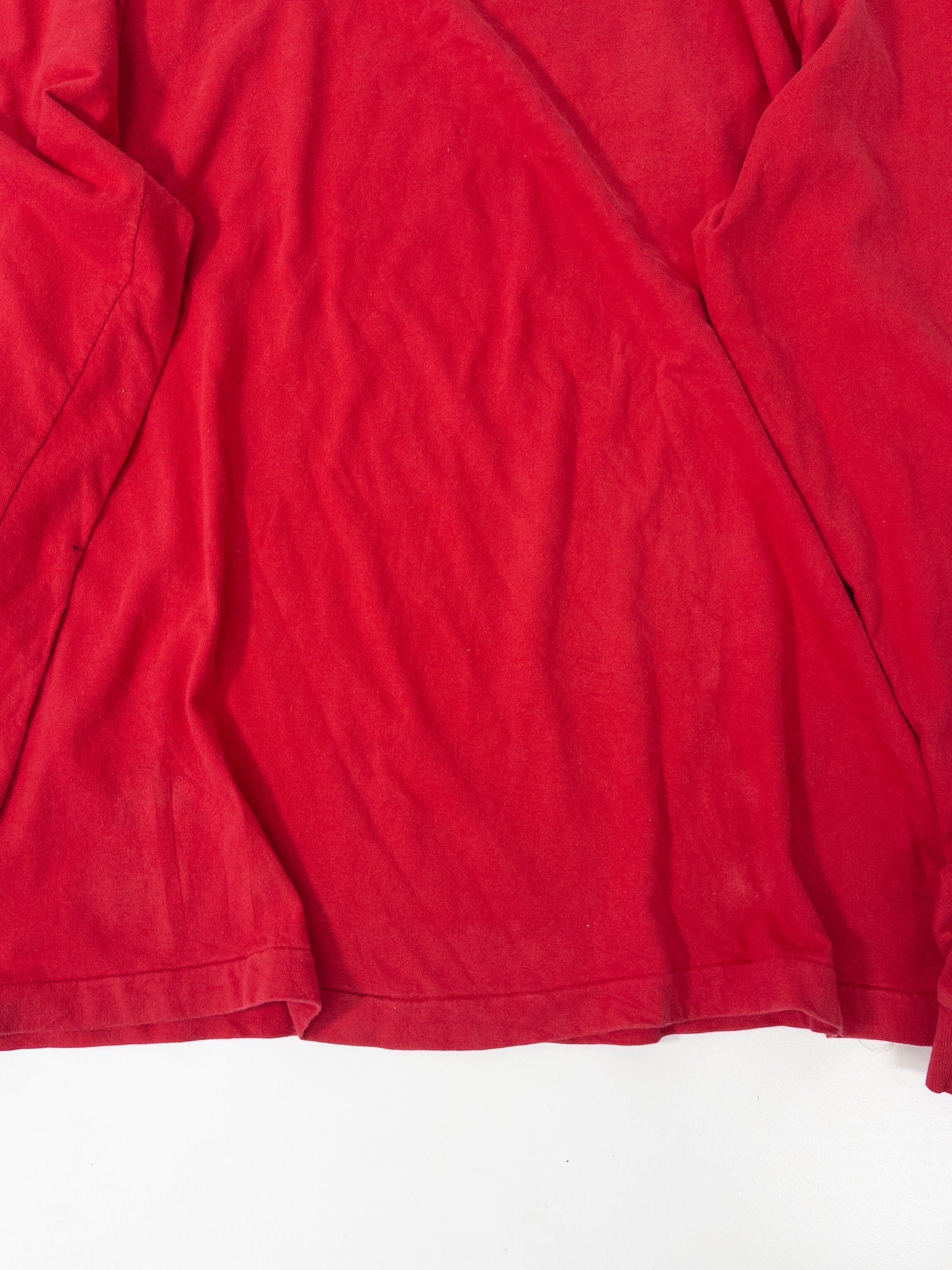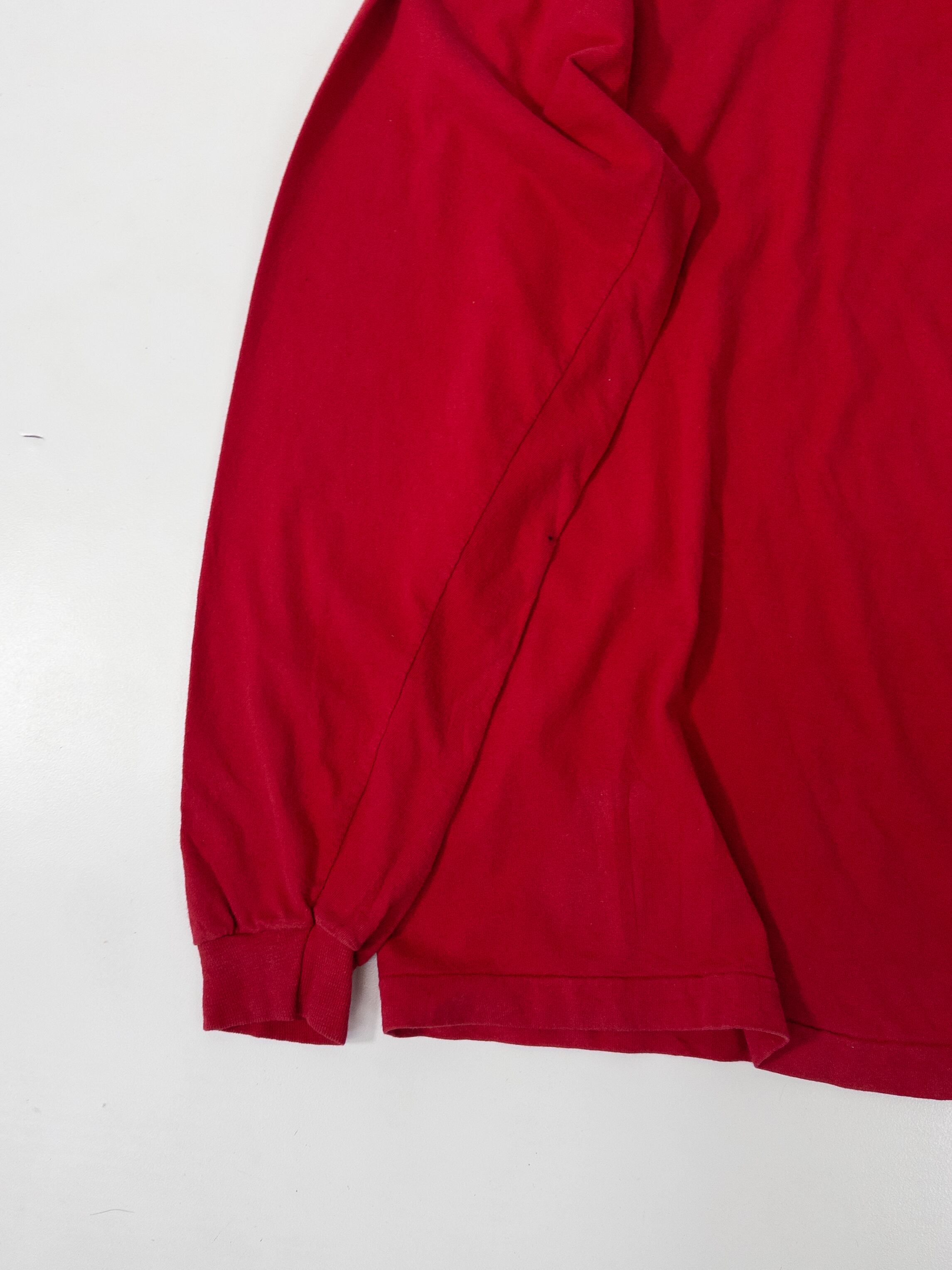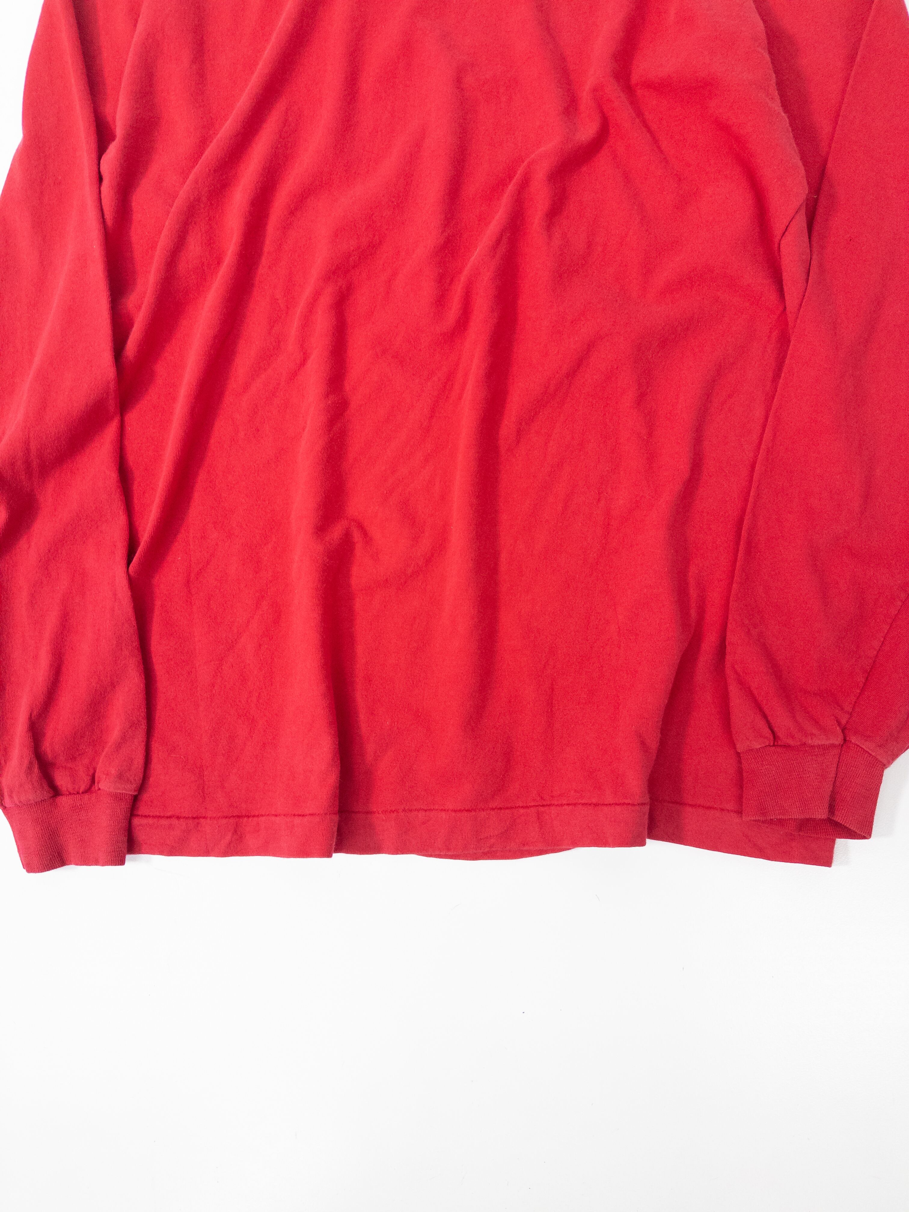 Fruit of the LoomのUSA製ボディらしい、気負わず着られるデイリーさがありつつ、発色の強い赤が入ることで一気にスタイリングの芯になるタイプ。