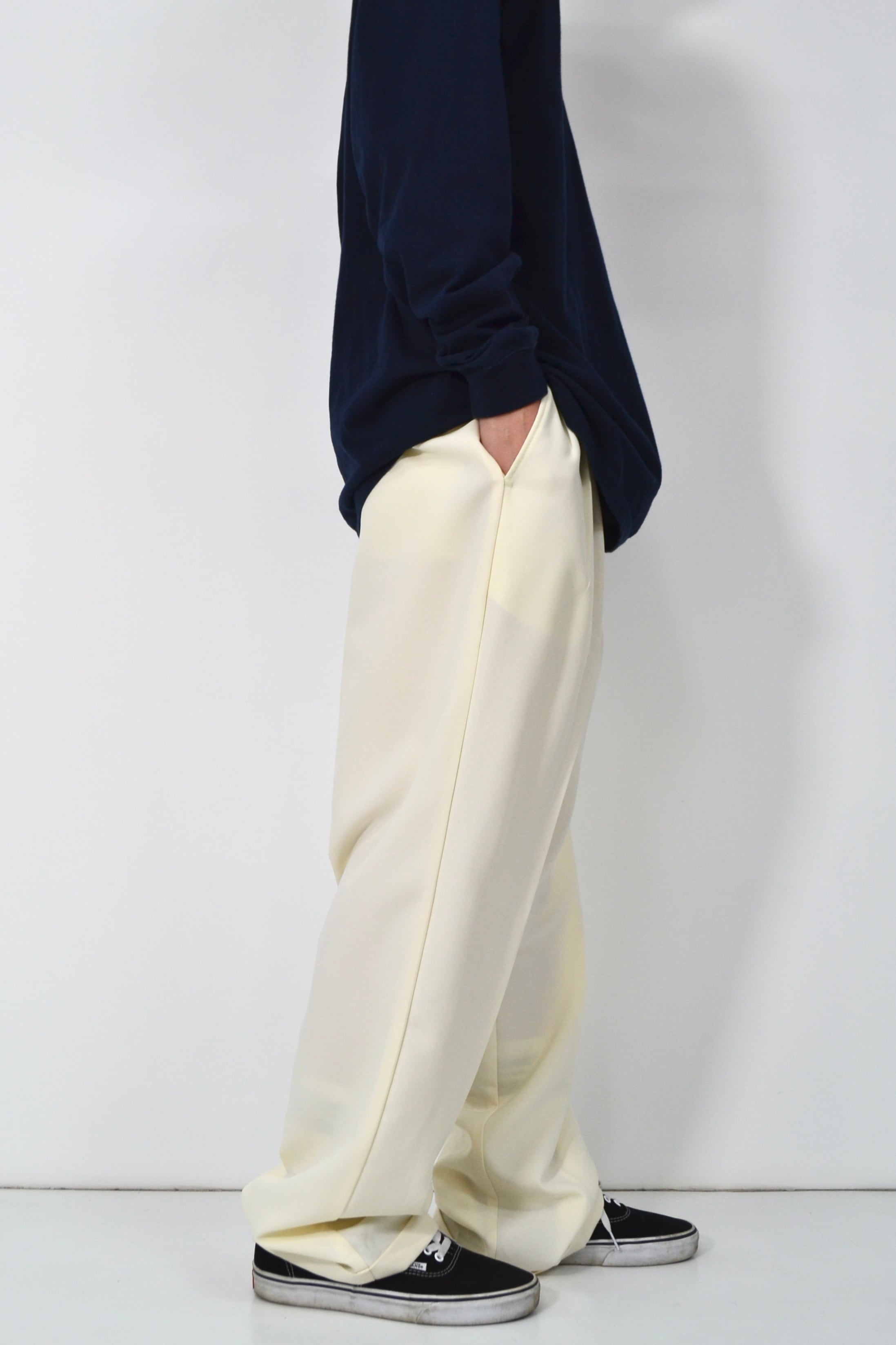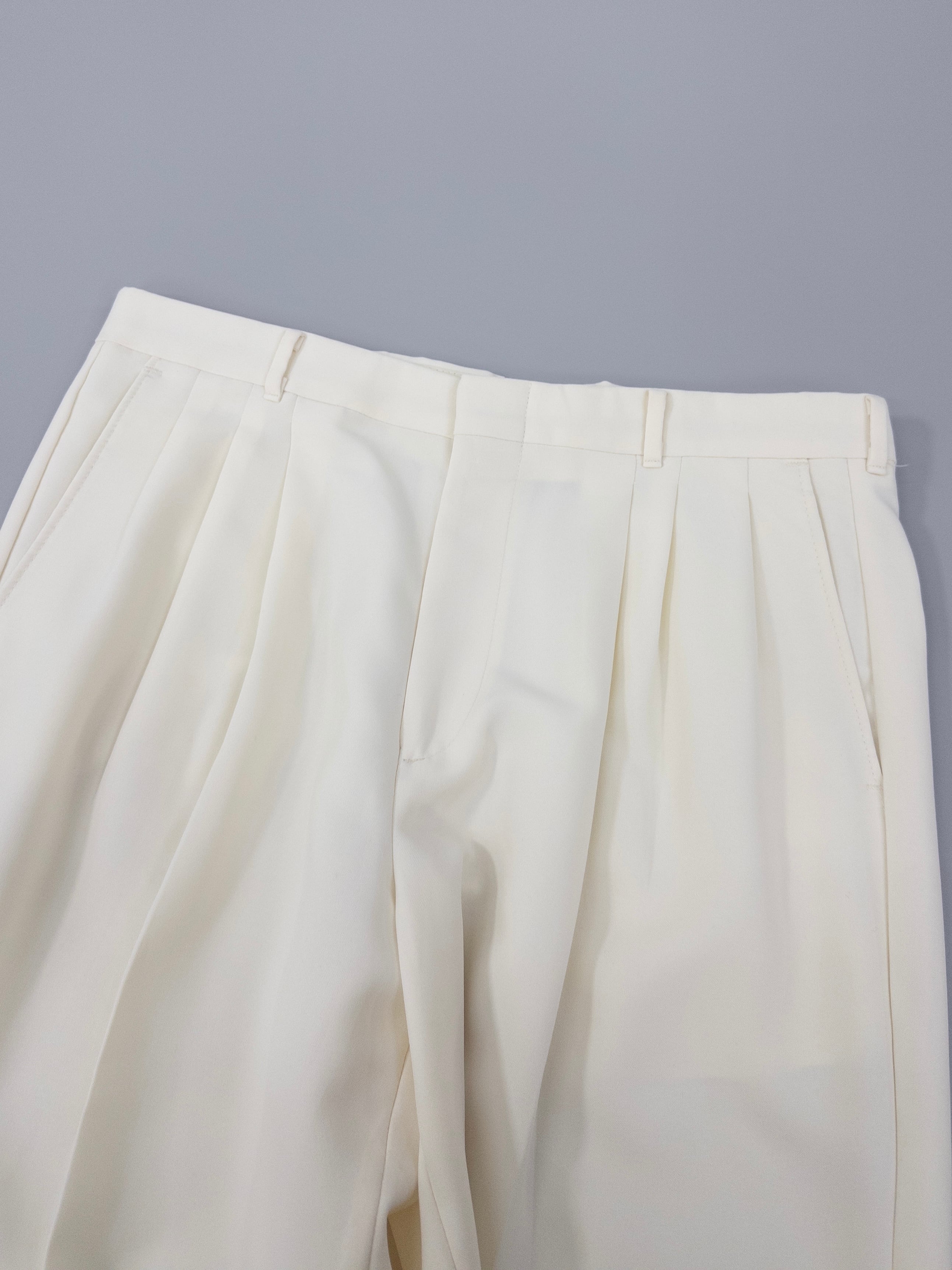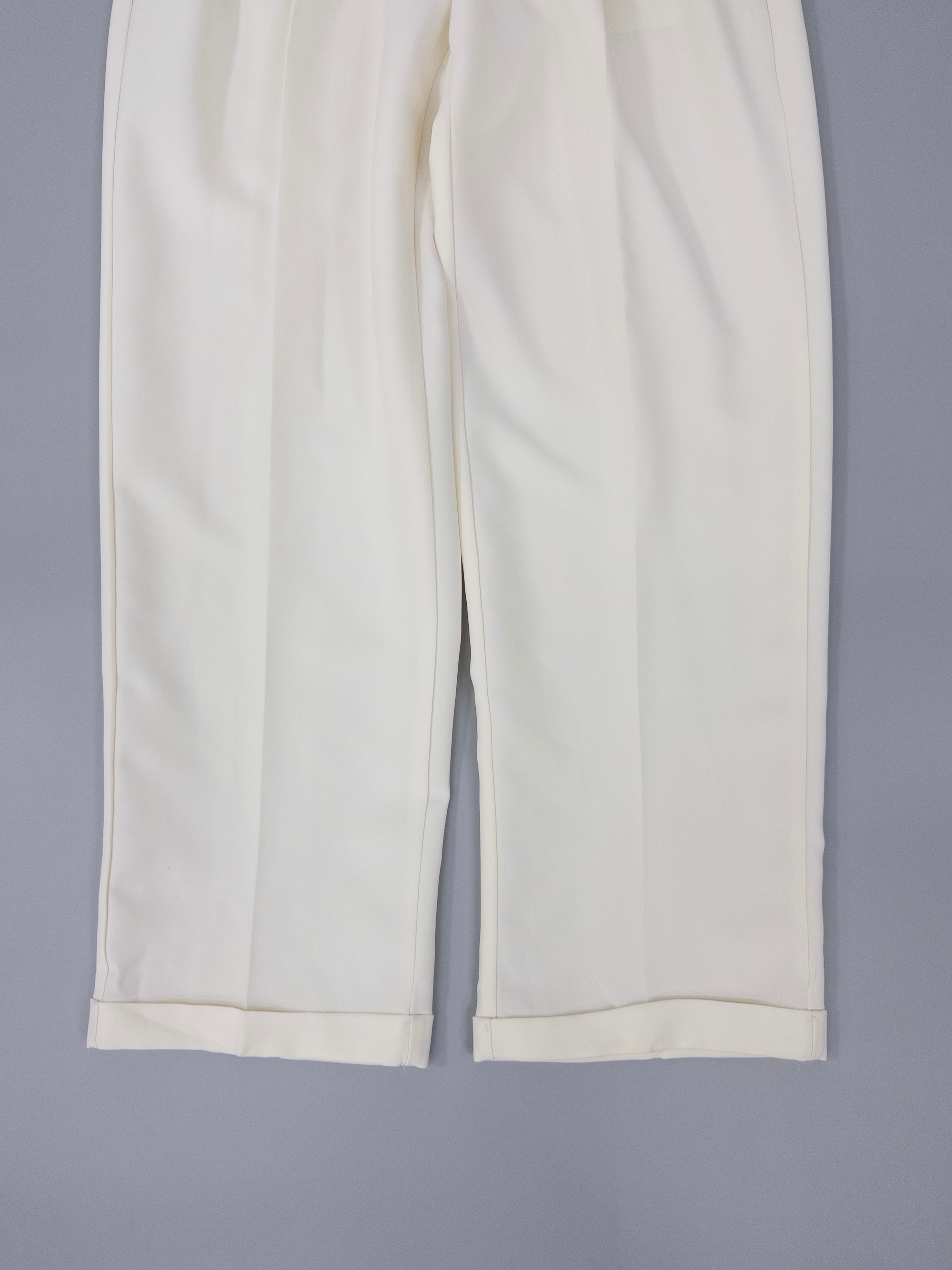 生成りに近い、やわらかい白の3タックスラックス。