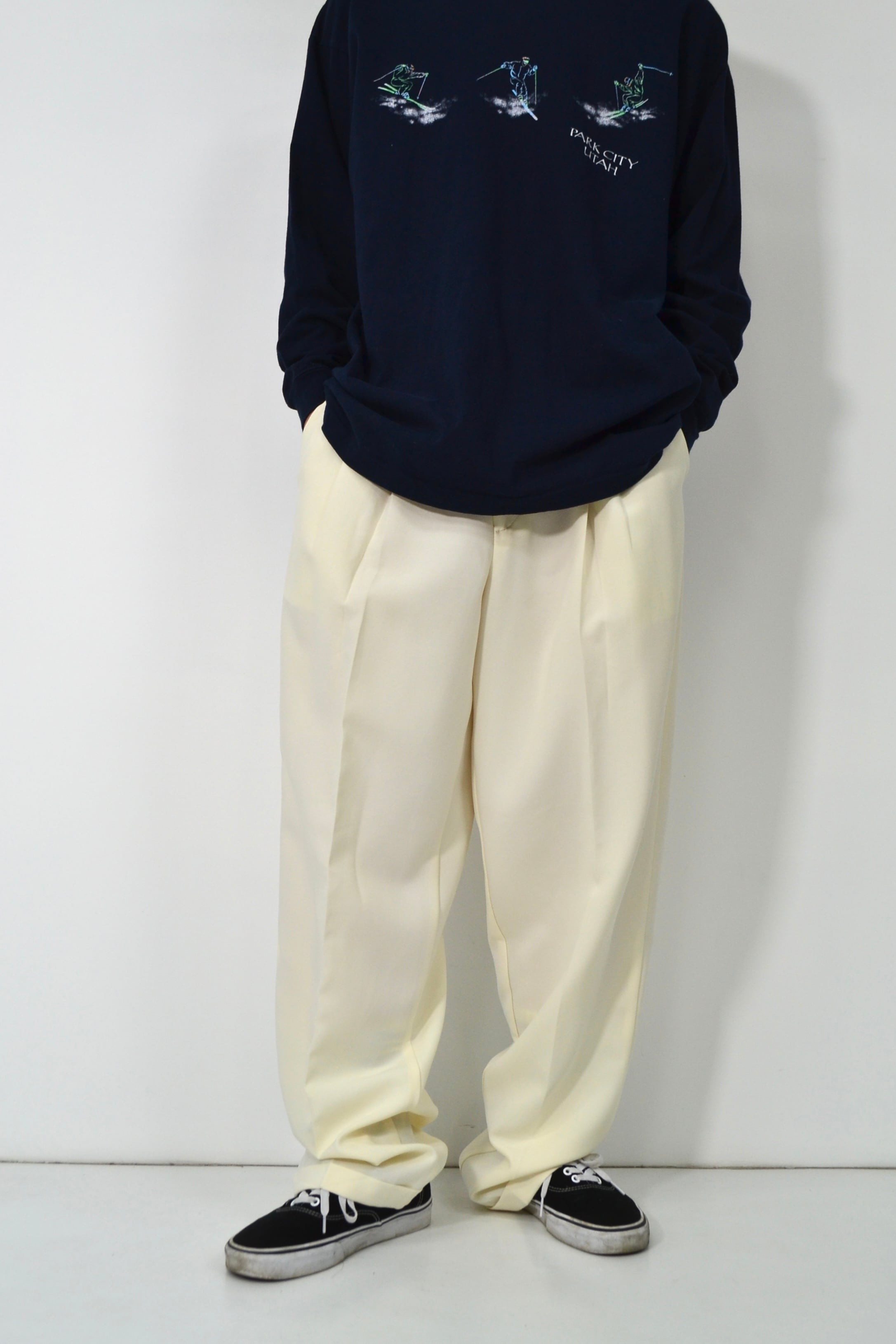 90s USA製 3tuck white color slacks