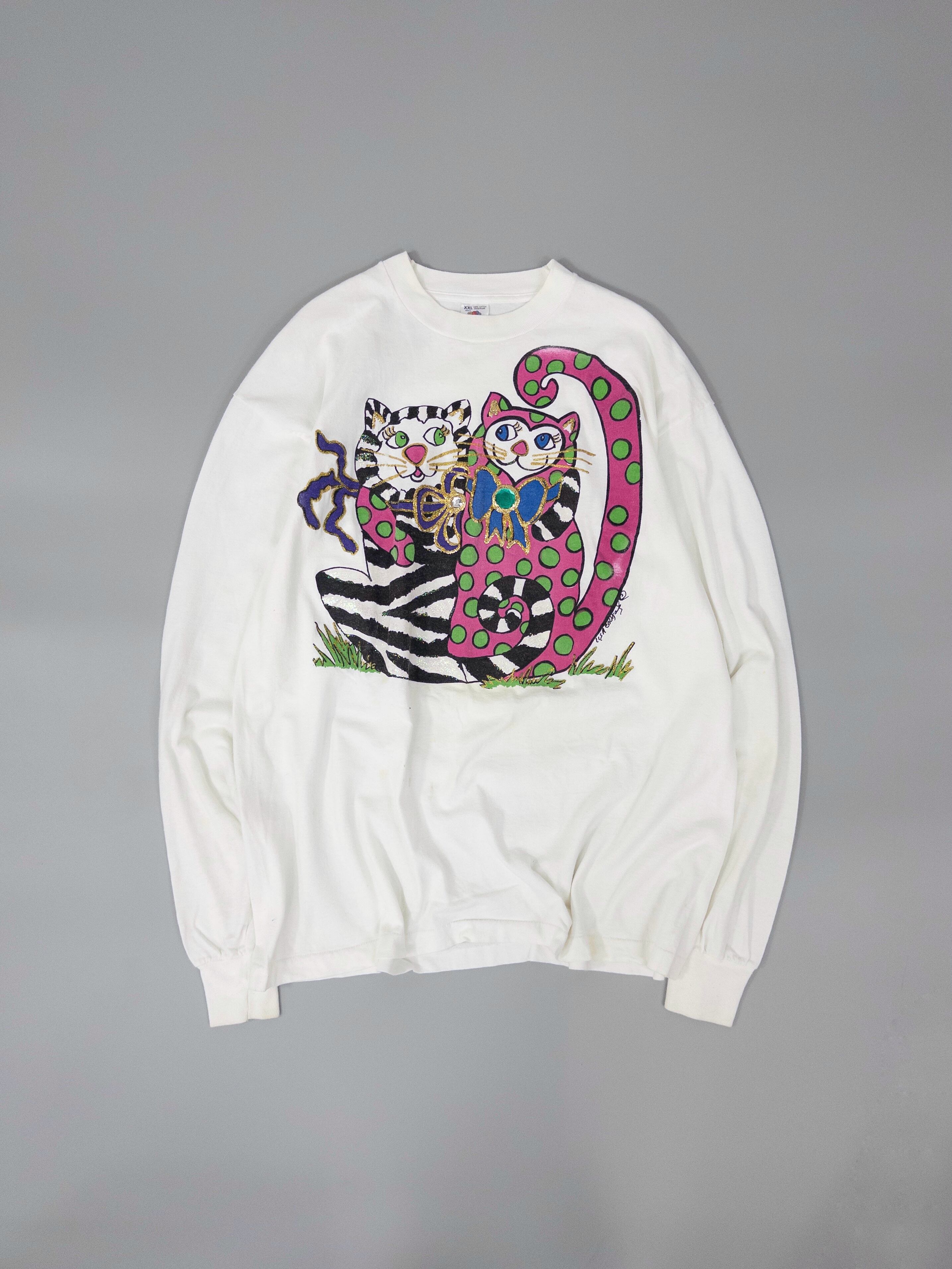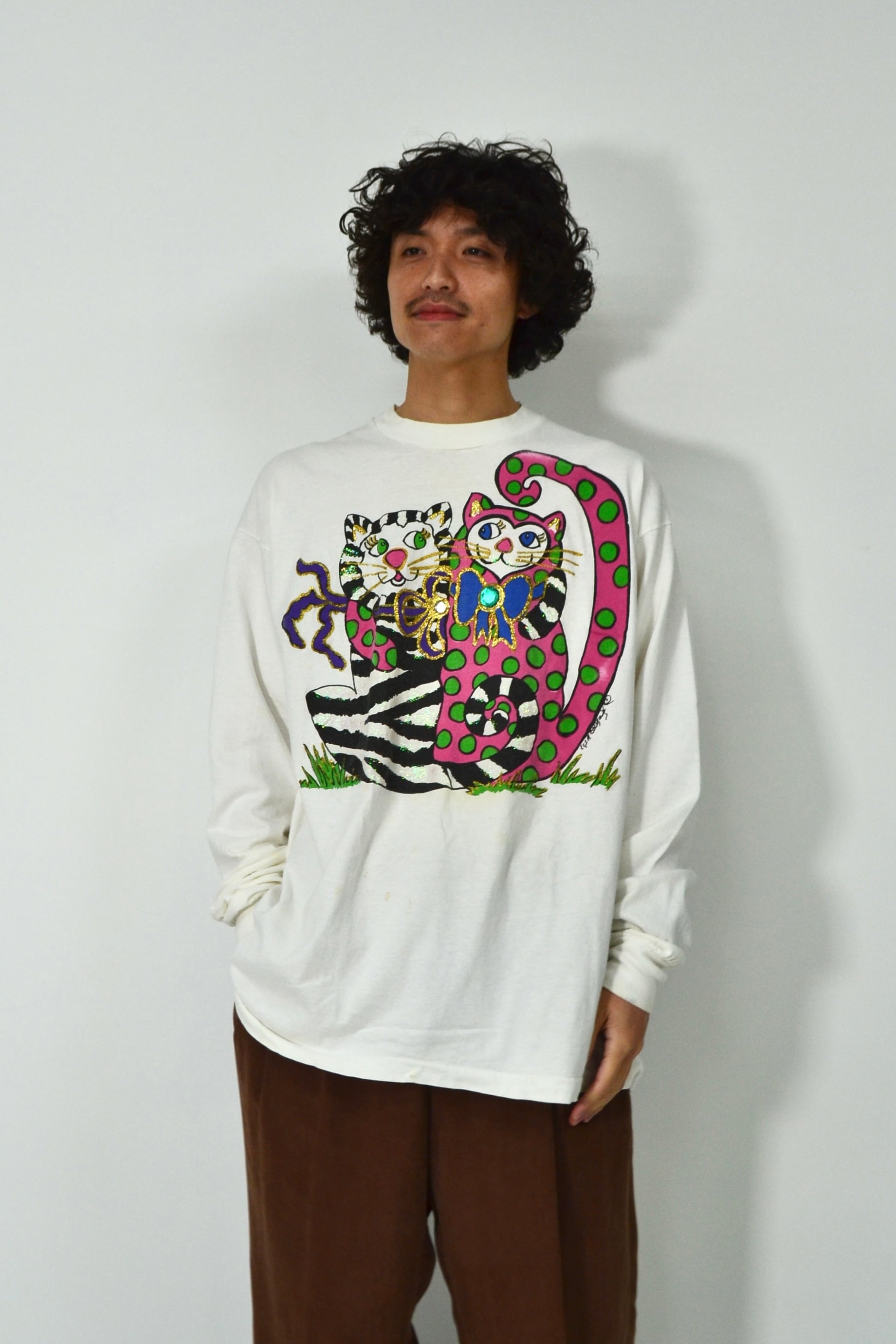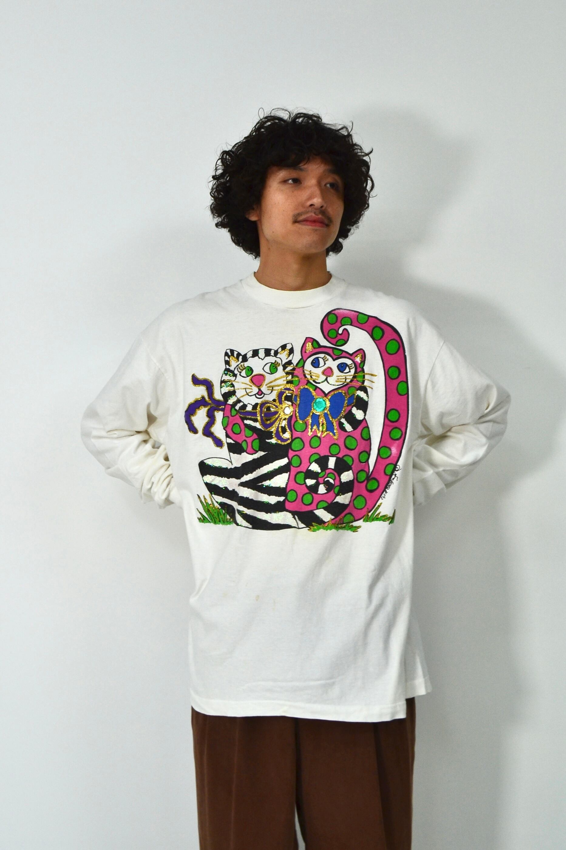 90s USA製 Fruit of the room Art cap print long sleeve T-shirt