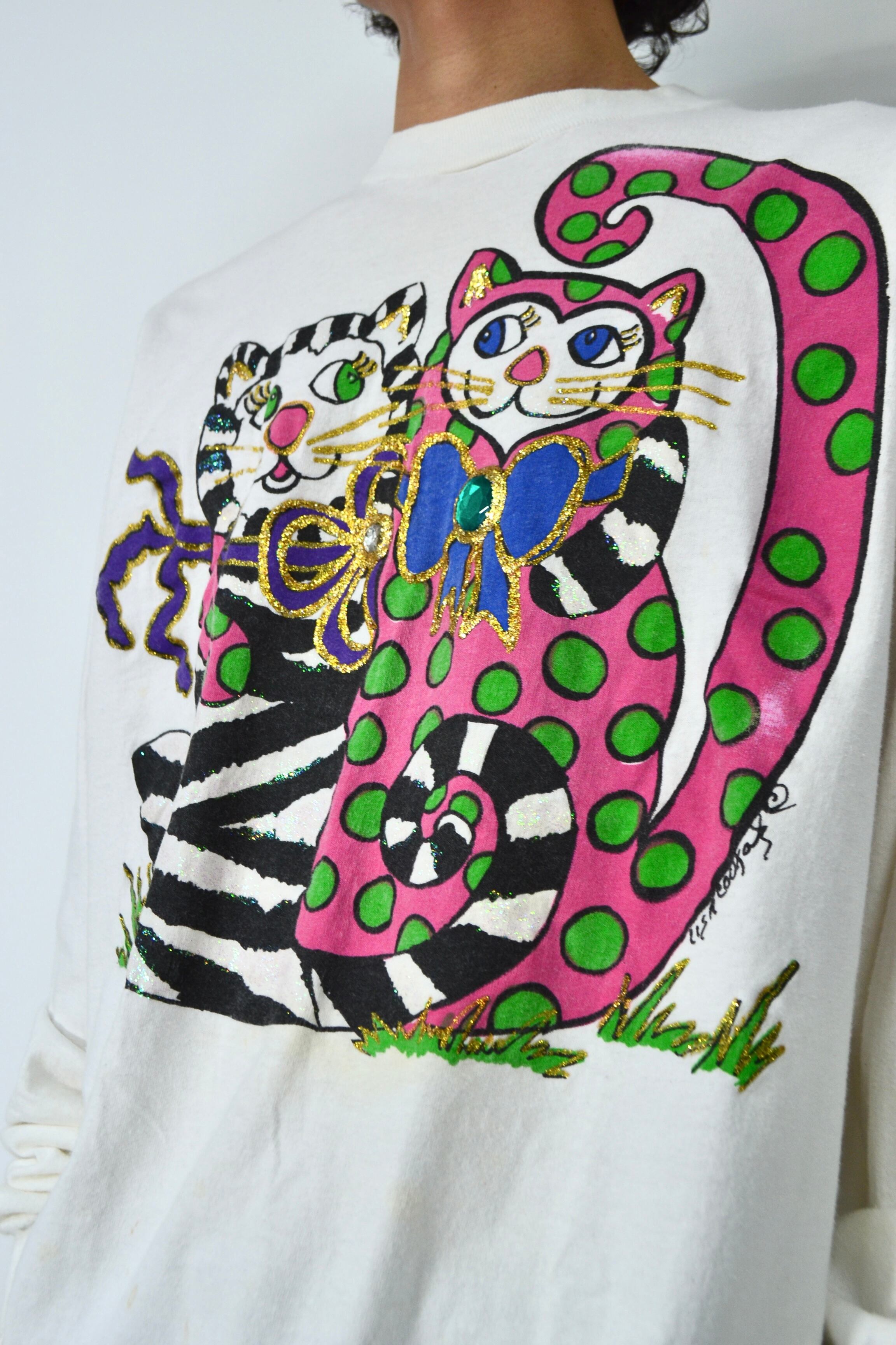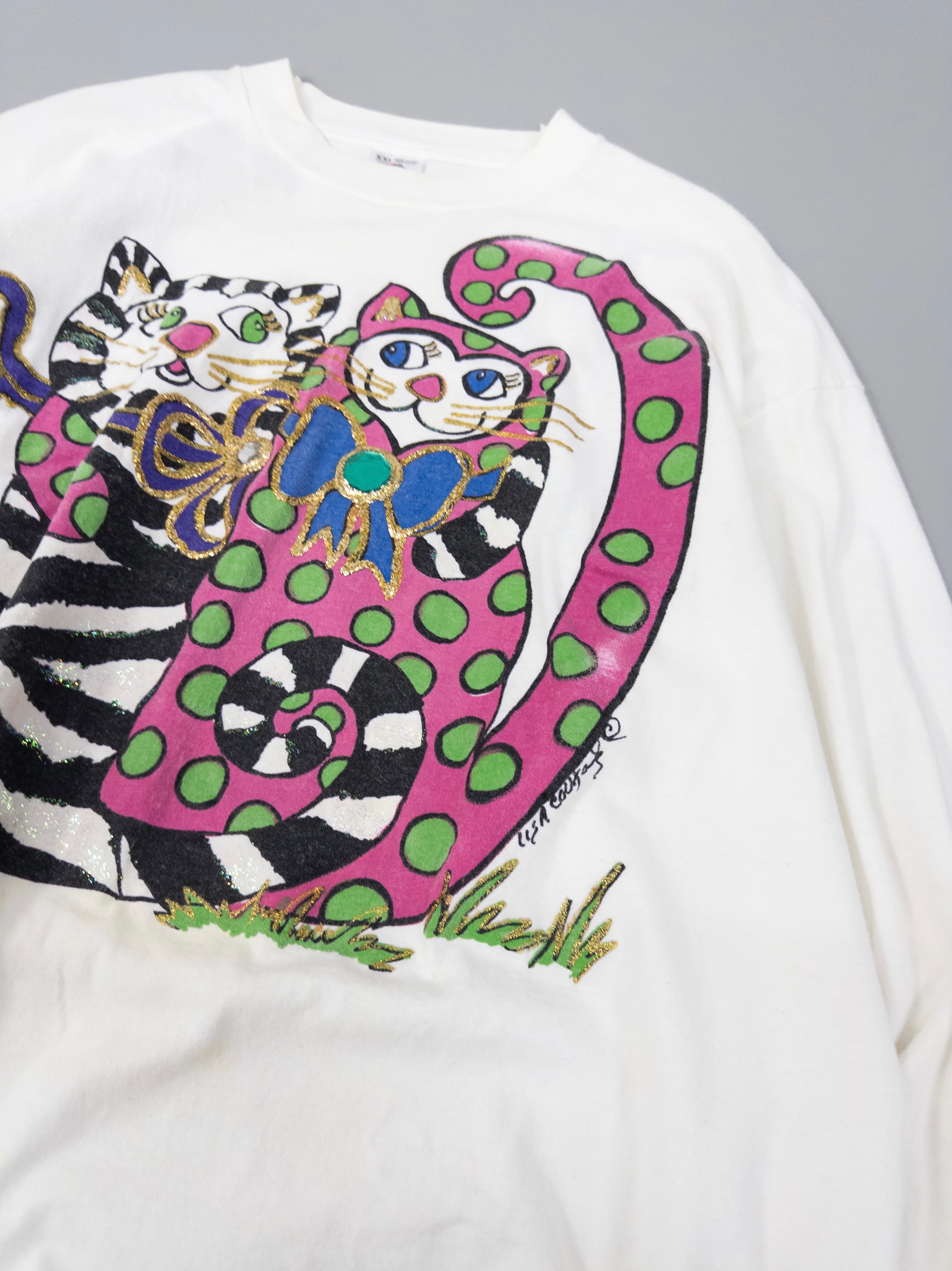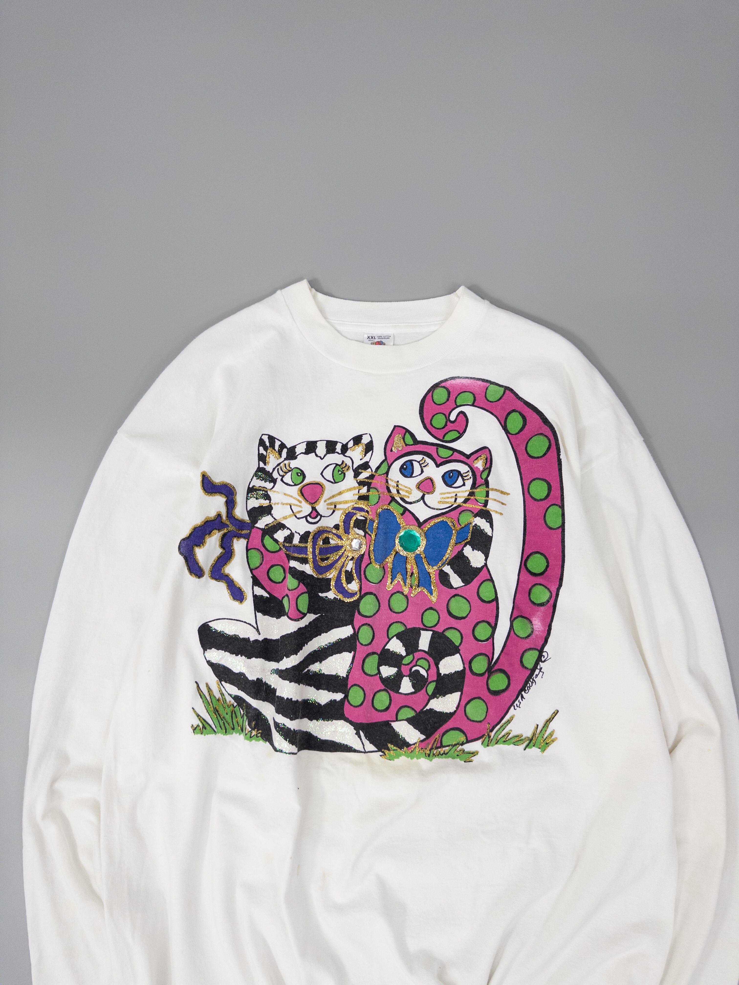 90s USA製 Fruit of the room Art cap print long sleeve T-shirt
