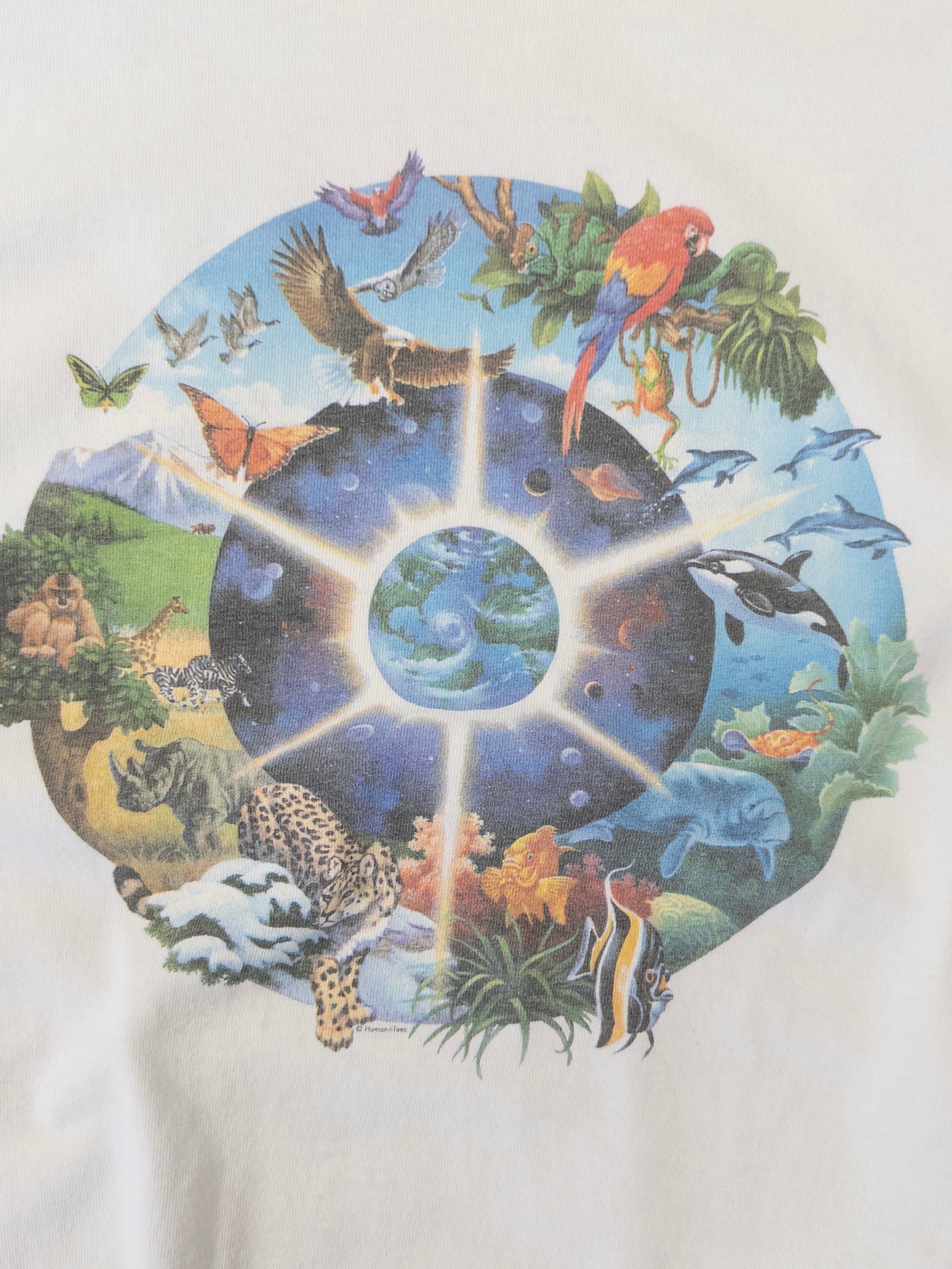 90s USA製 "地球と動物たち" print T-shirt