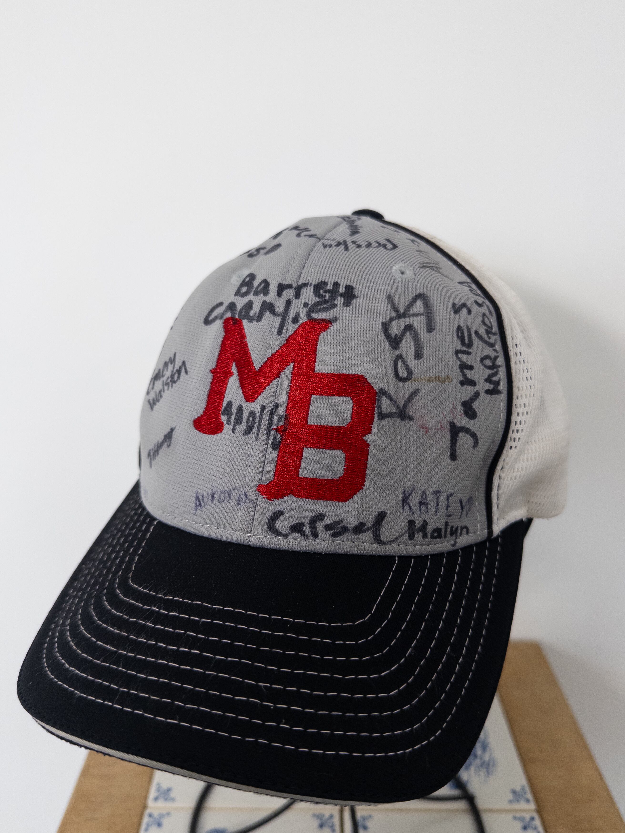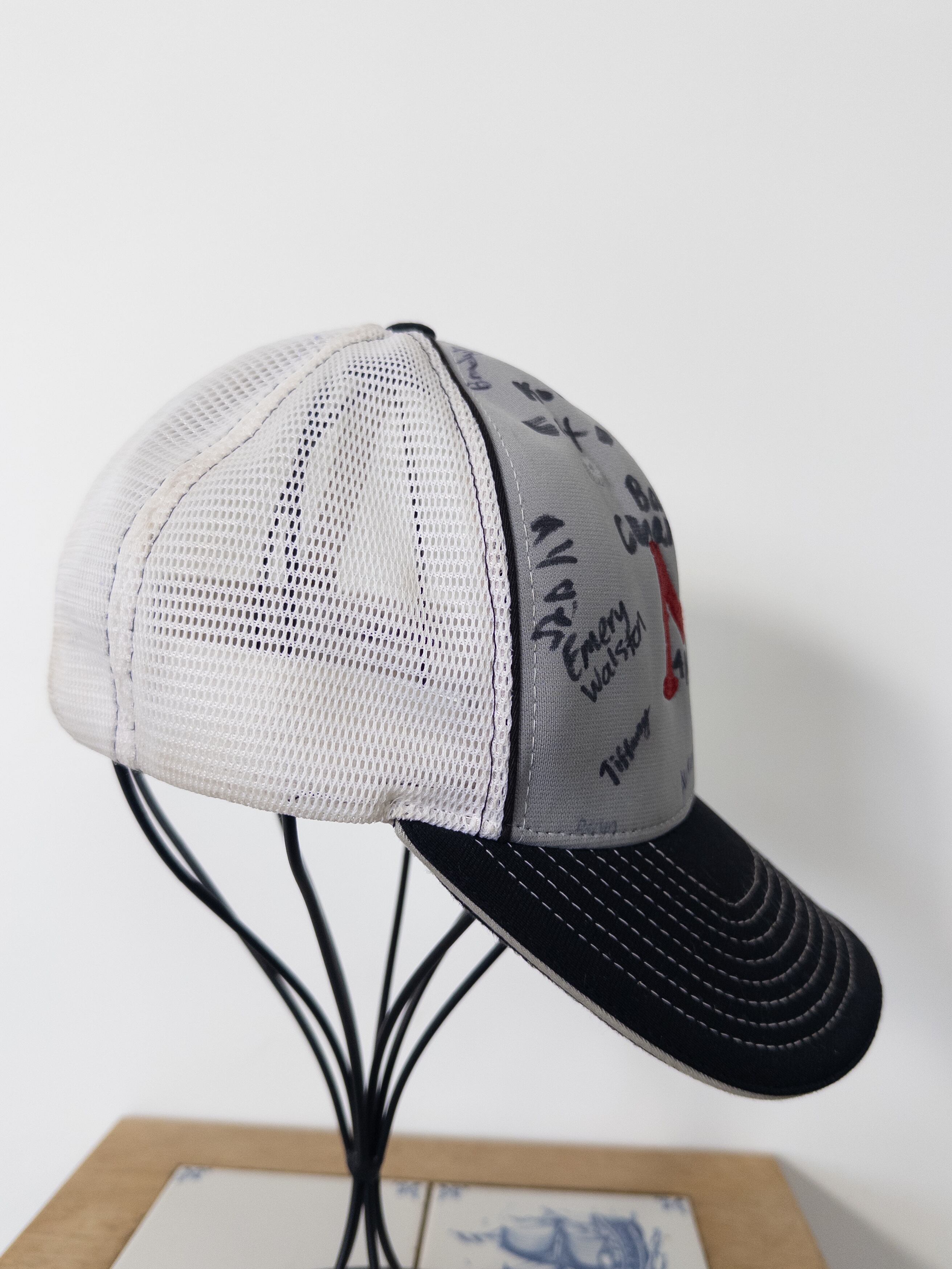 黒ツバ×グレーフロント×白メッシュの配色も、ちょっと野暮ったくていいバランス。