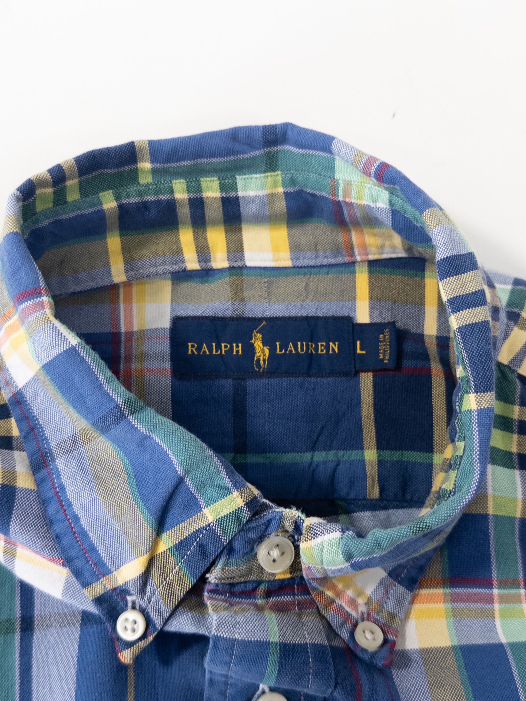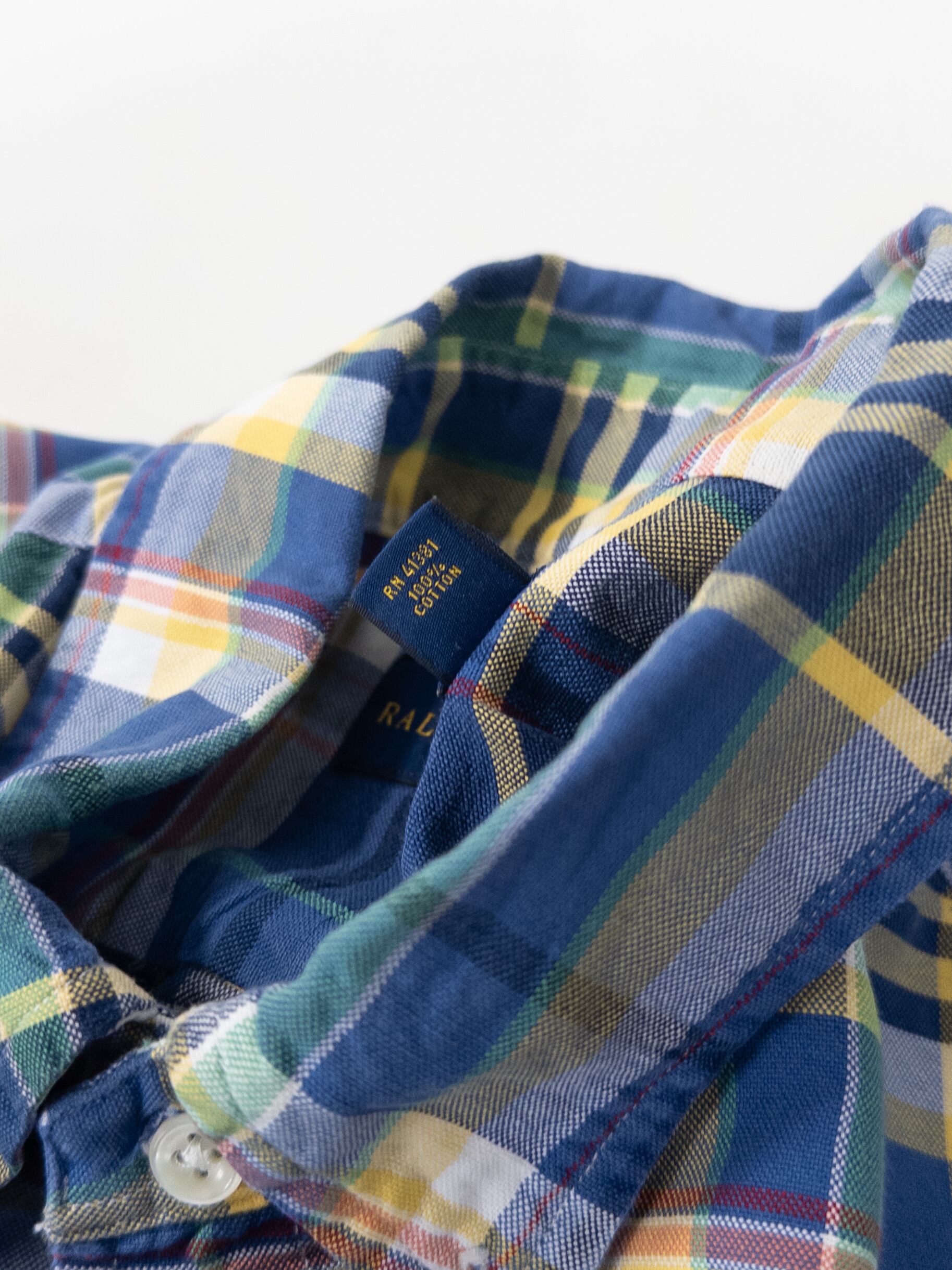 いわゆるラルフらしいマドラス調のチェックですが、ここまで発色が綺麗に残っている個体はやはり良いなと思います。