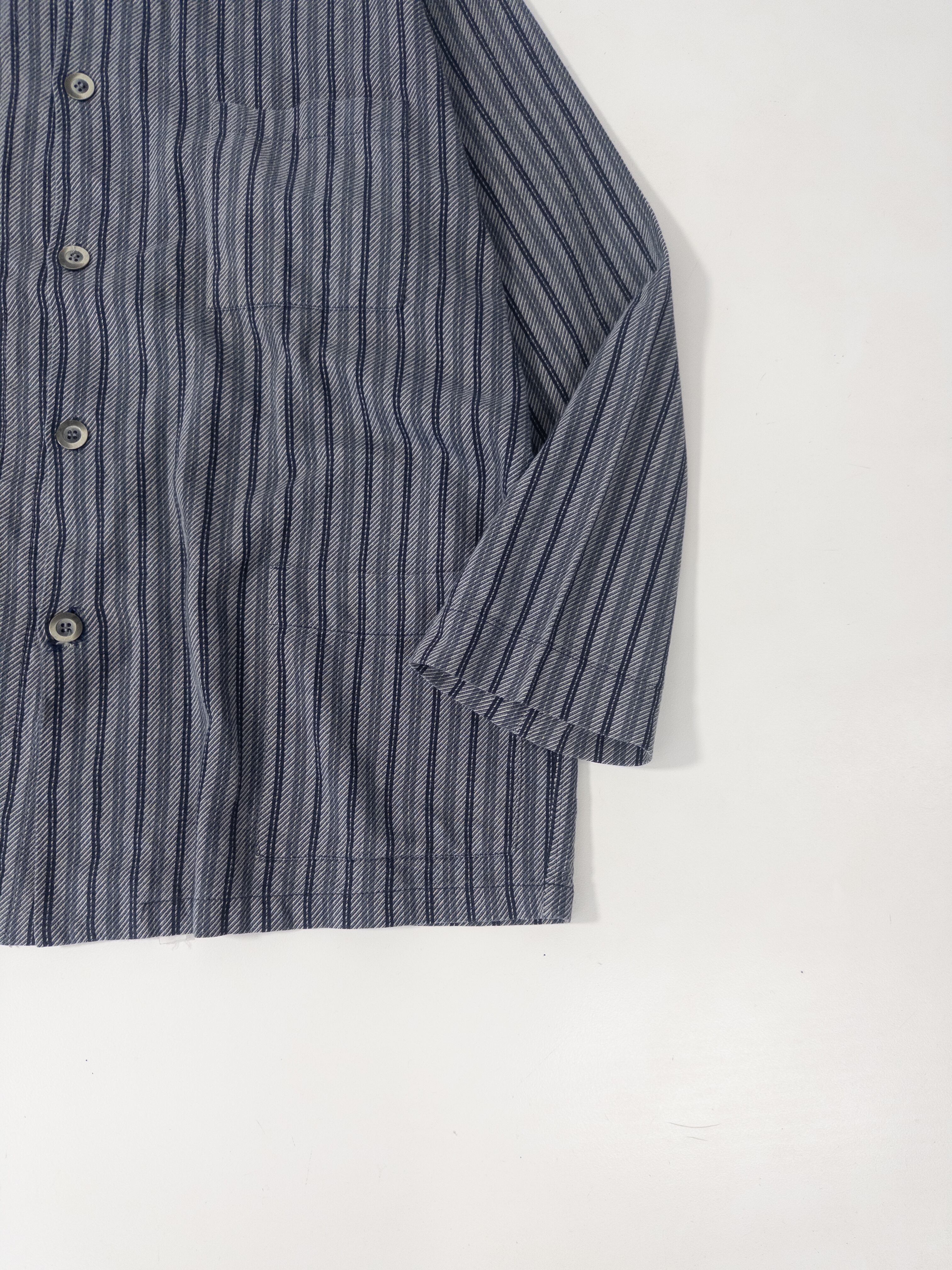 ストライプのピッチも細かく、遠目には無地に近い印象。