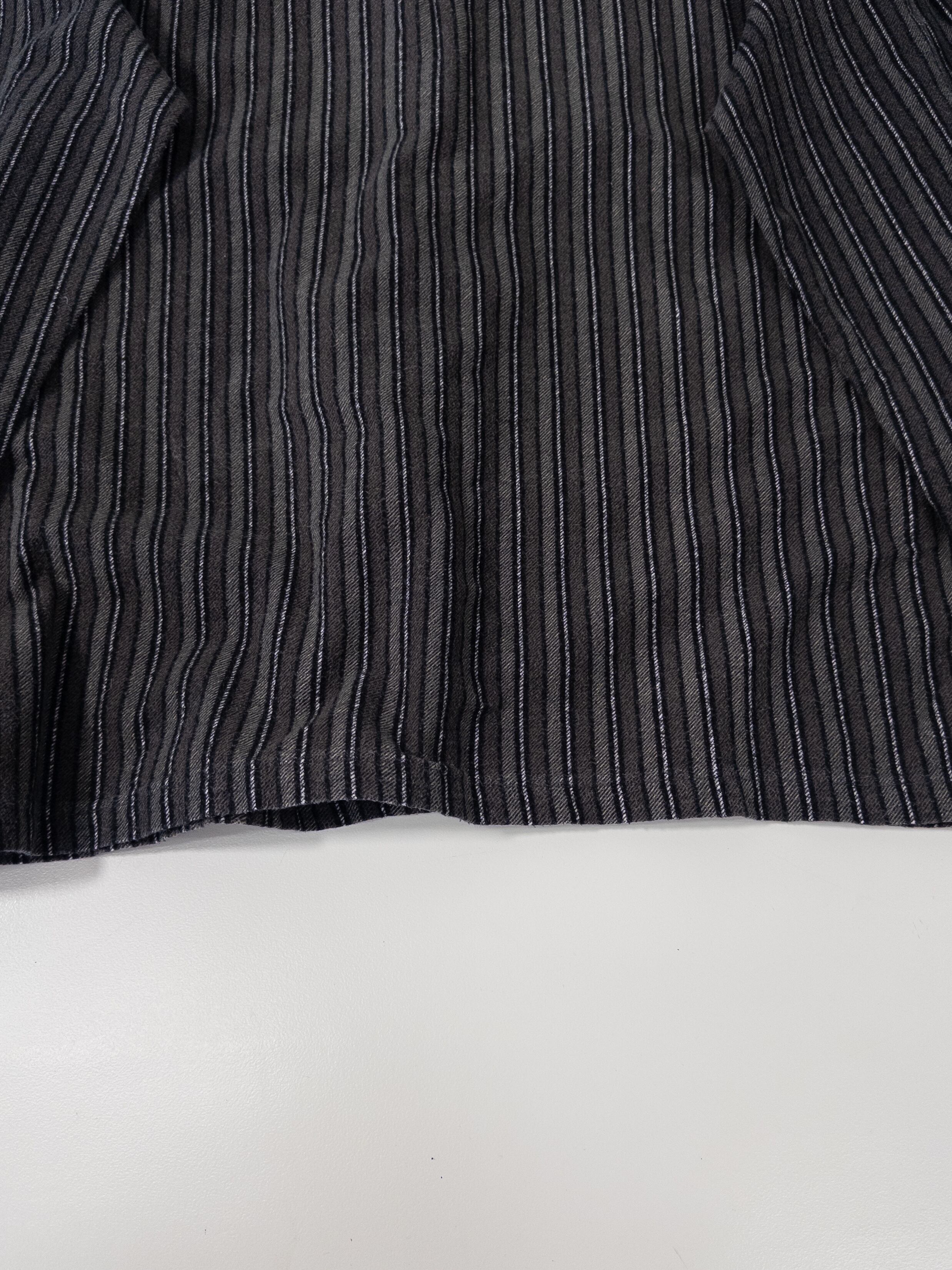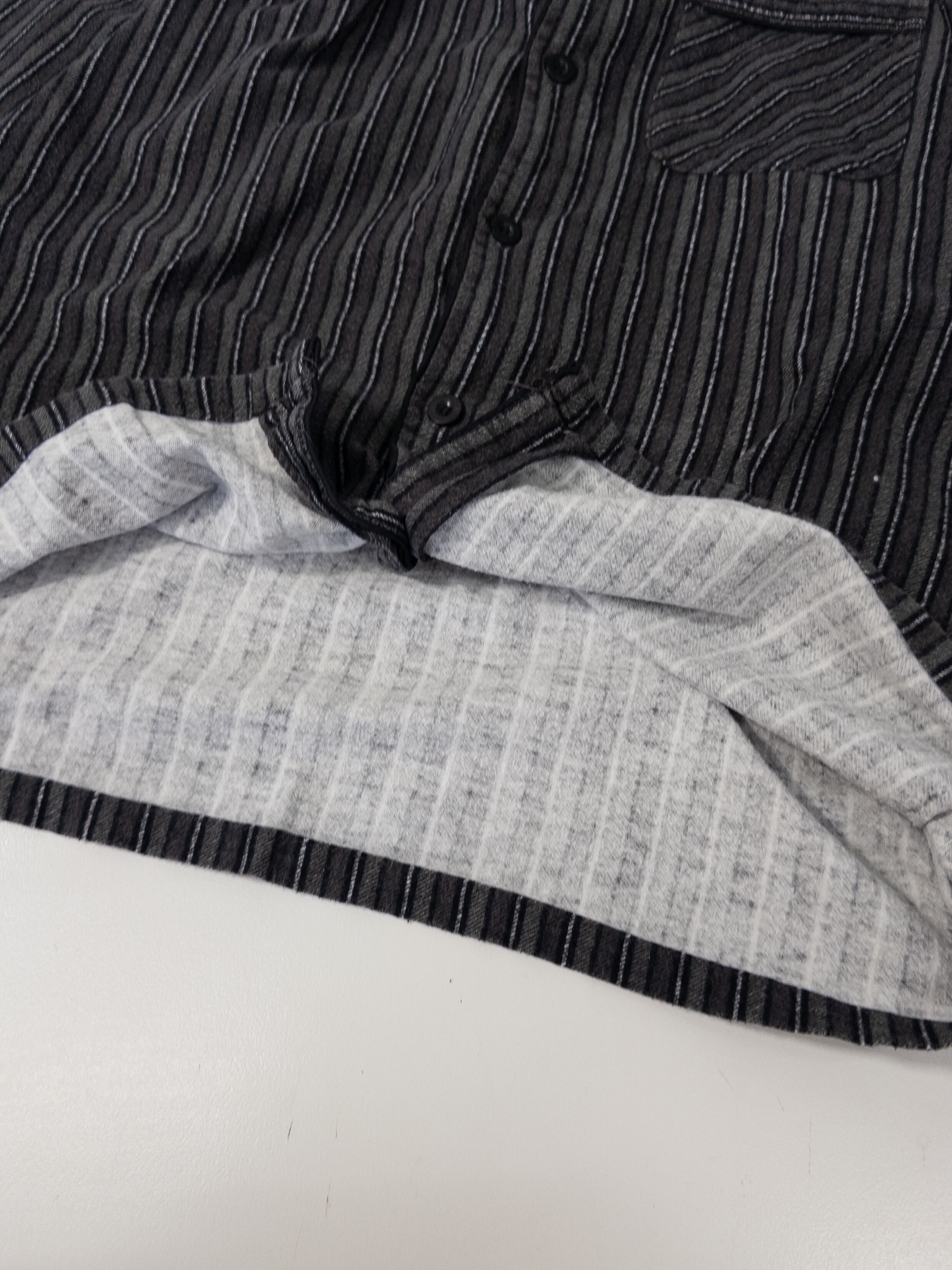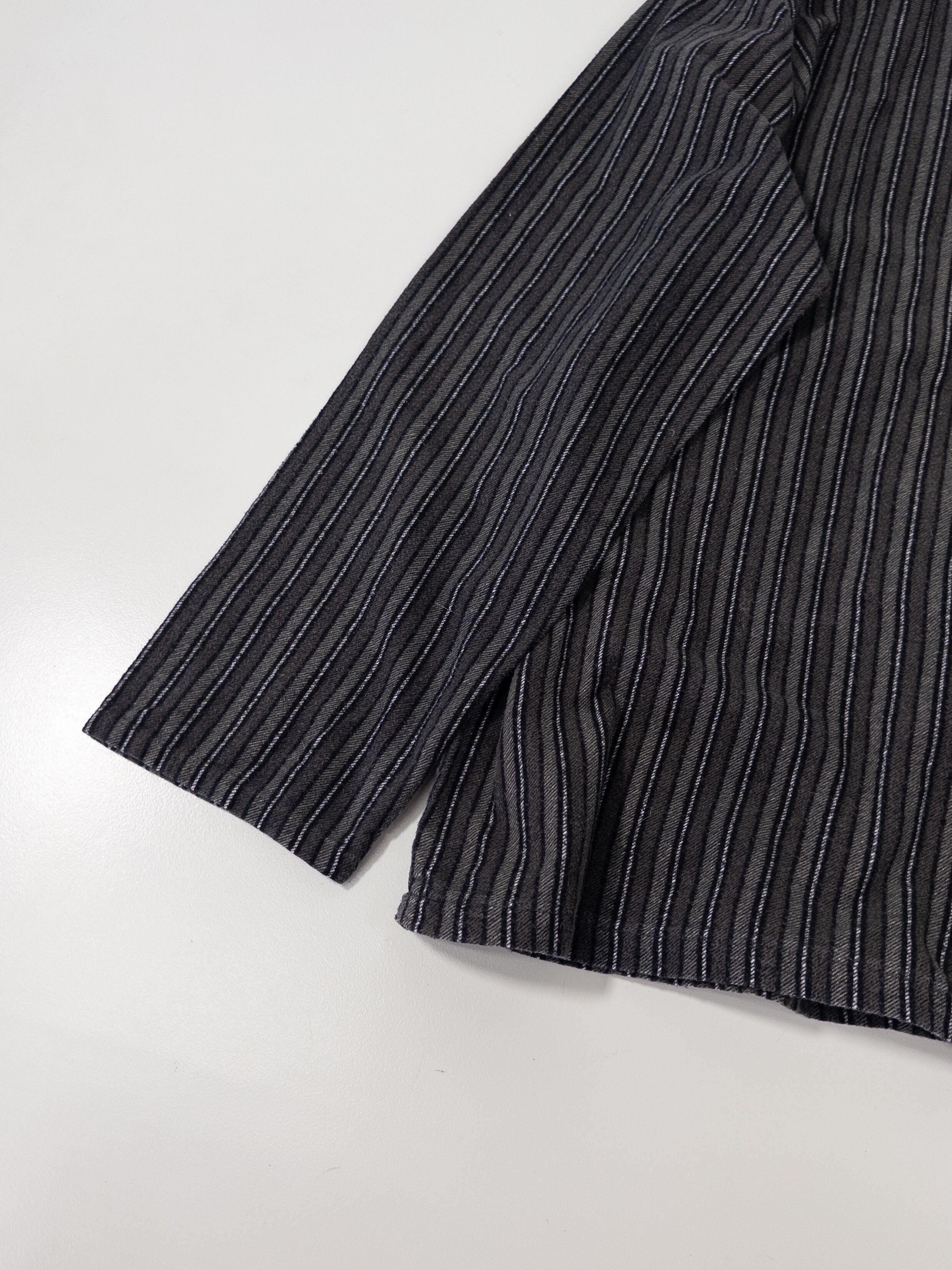 黒ベースにグレー〜チャコールの細いラインで、かなり落ち着いた印象。